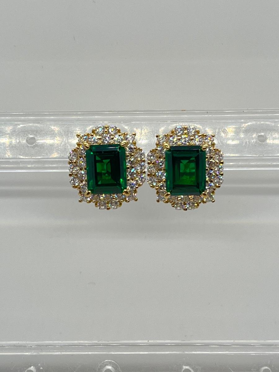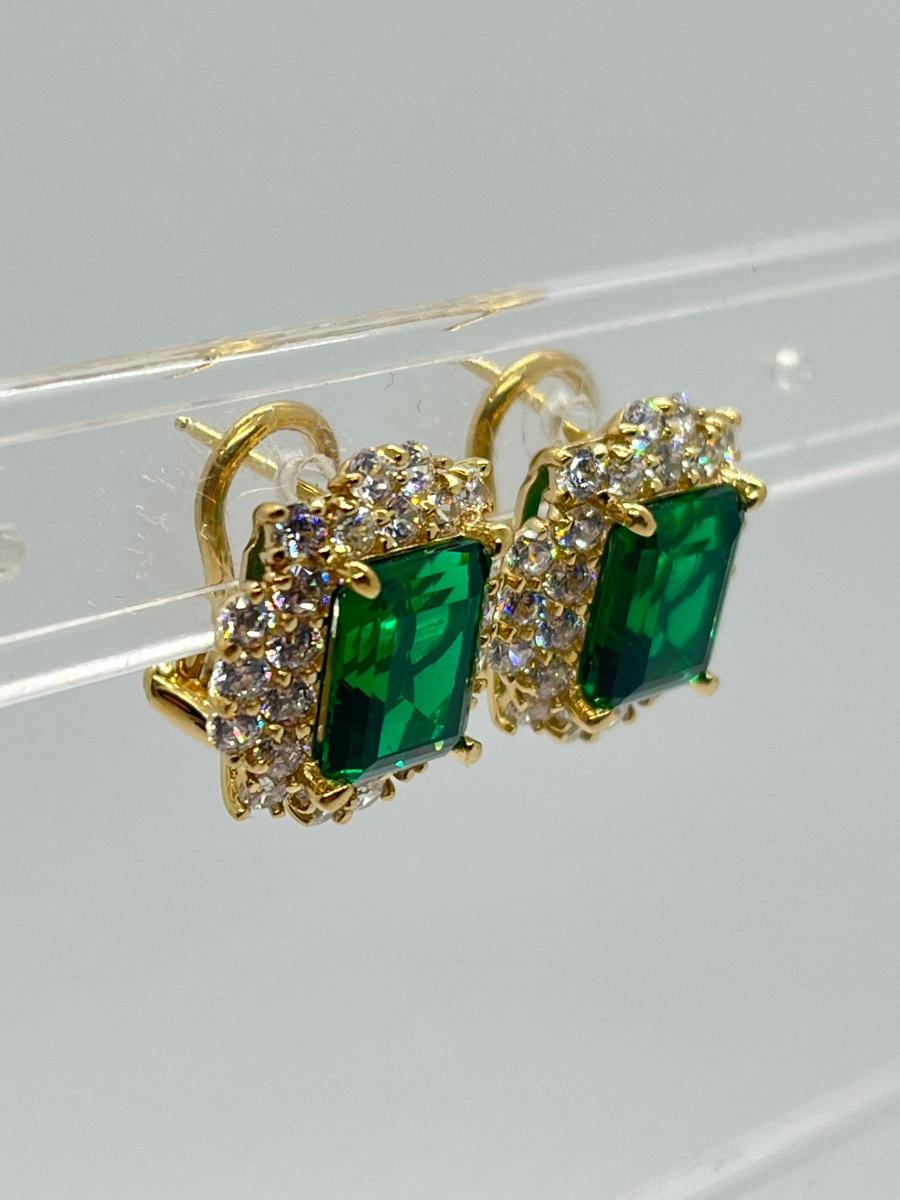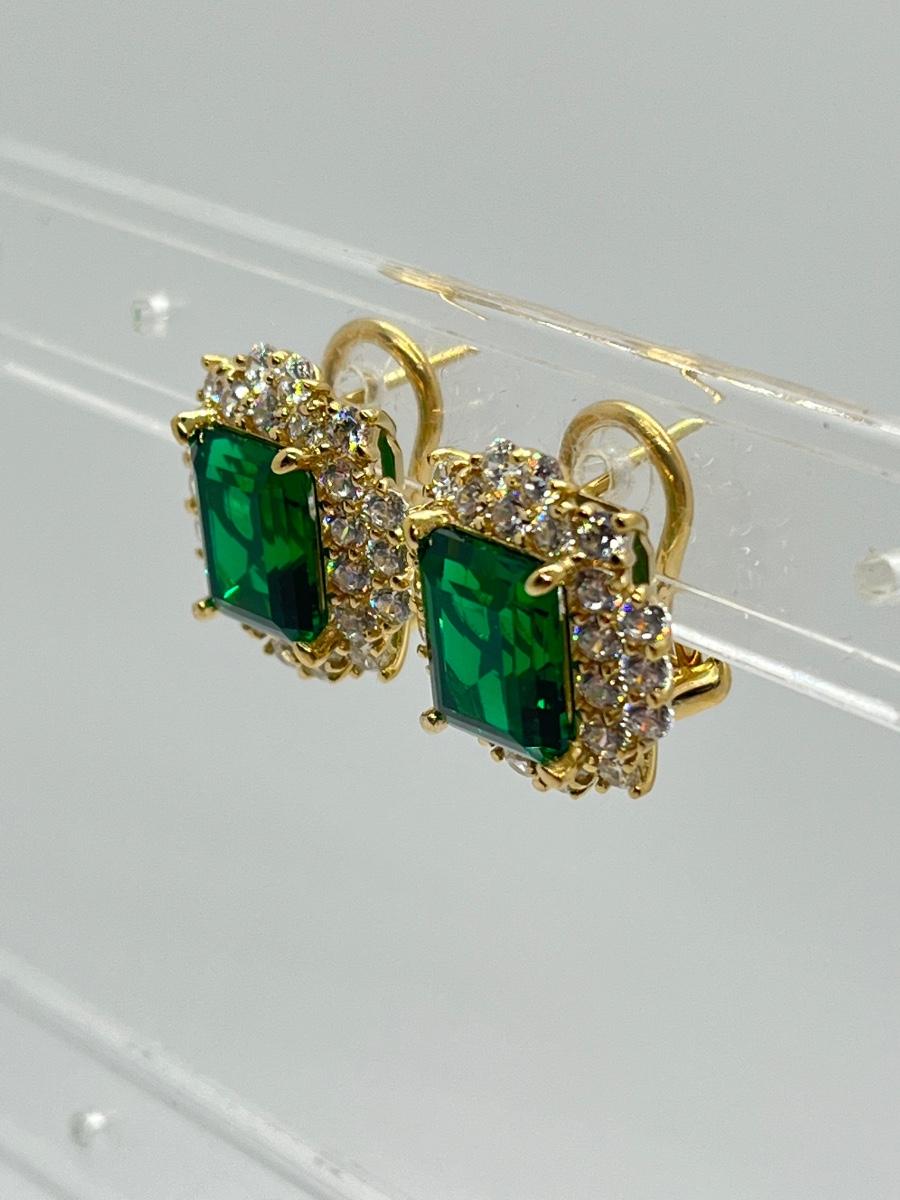 LOTJ88: TOVA Diamonique Simulated Emerald, Earrings, 14K Clad