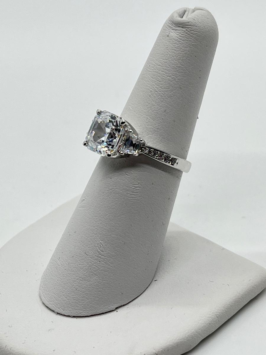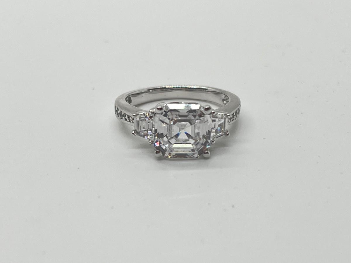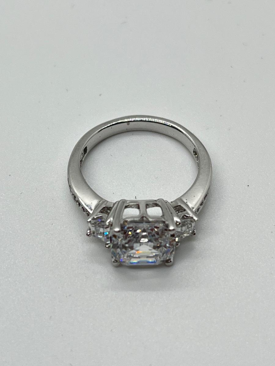 LOT 93: Epiphany Platinum Clad Sterling Silver Diamonique Ring Size 6