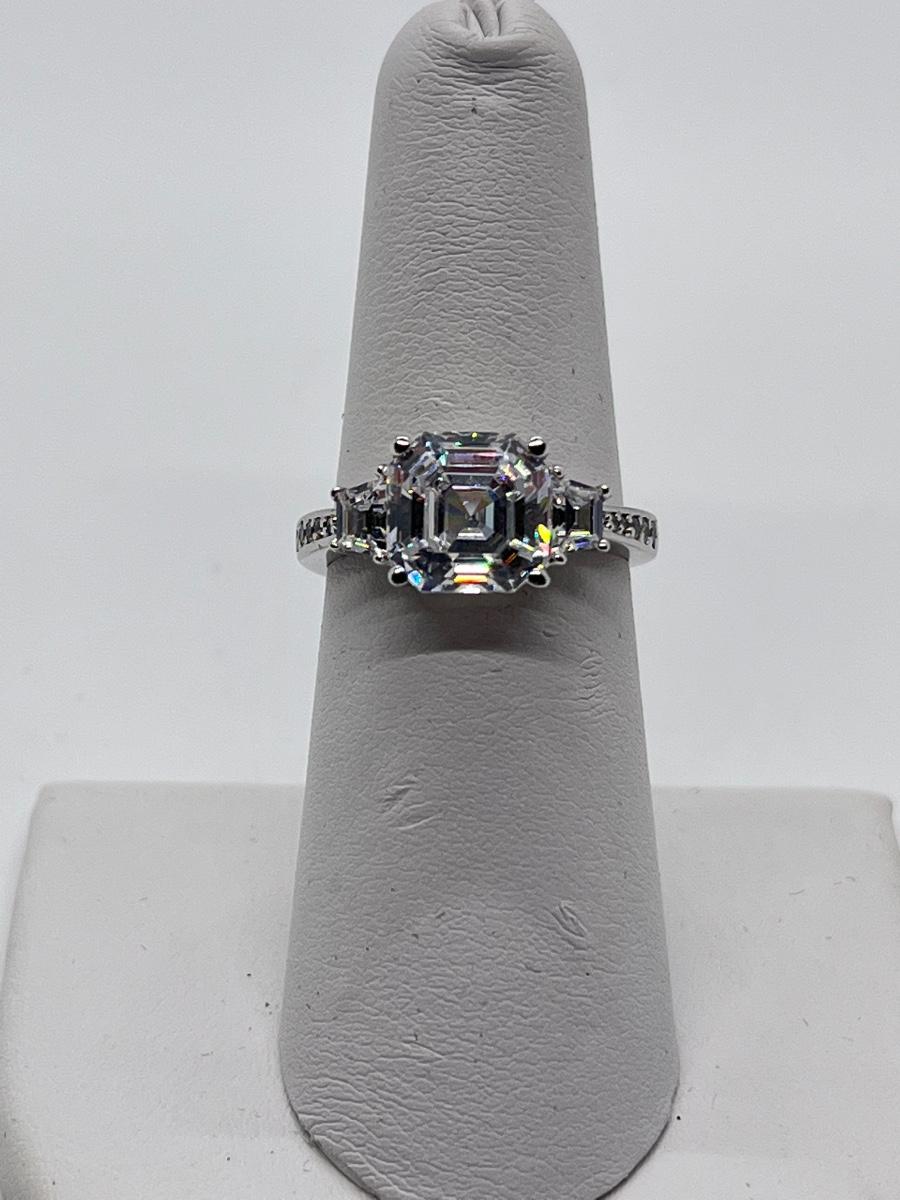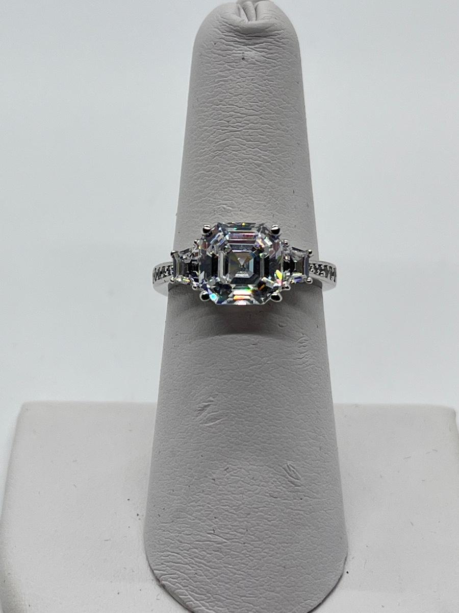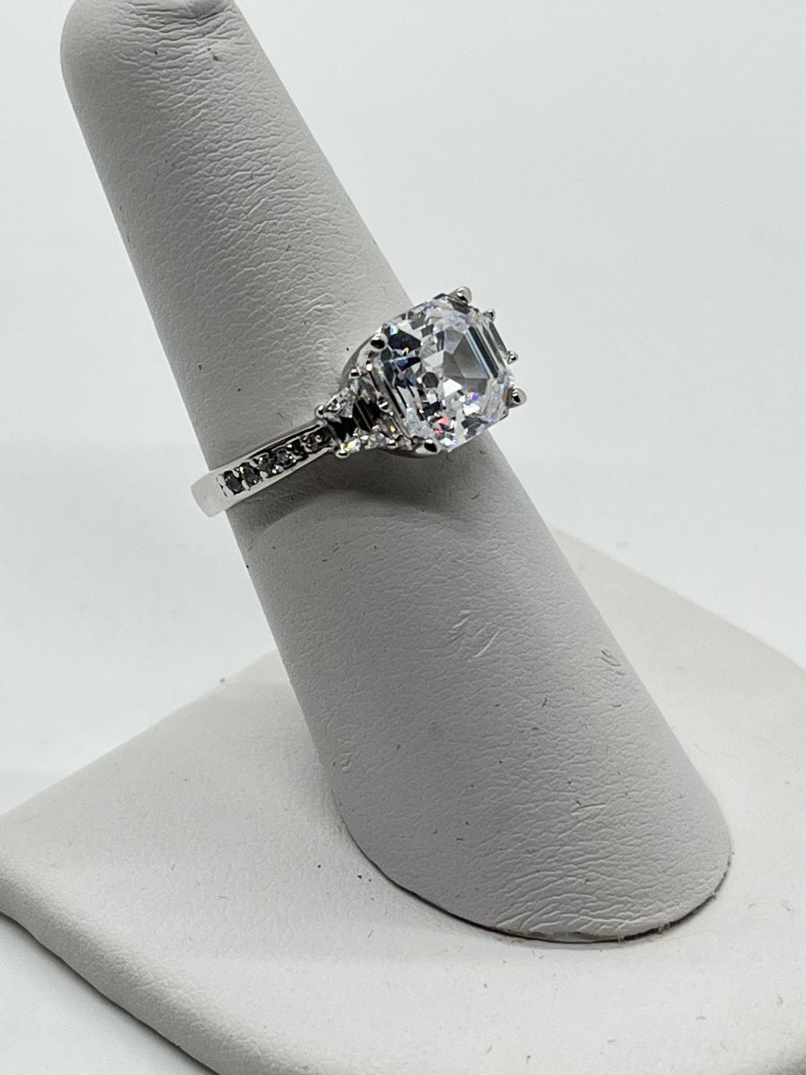 LOT 93: Epiphany Platinum Clad Sterling Silver Diamonique Ring Size 6