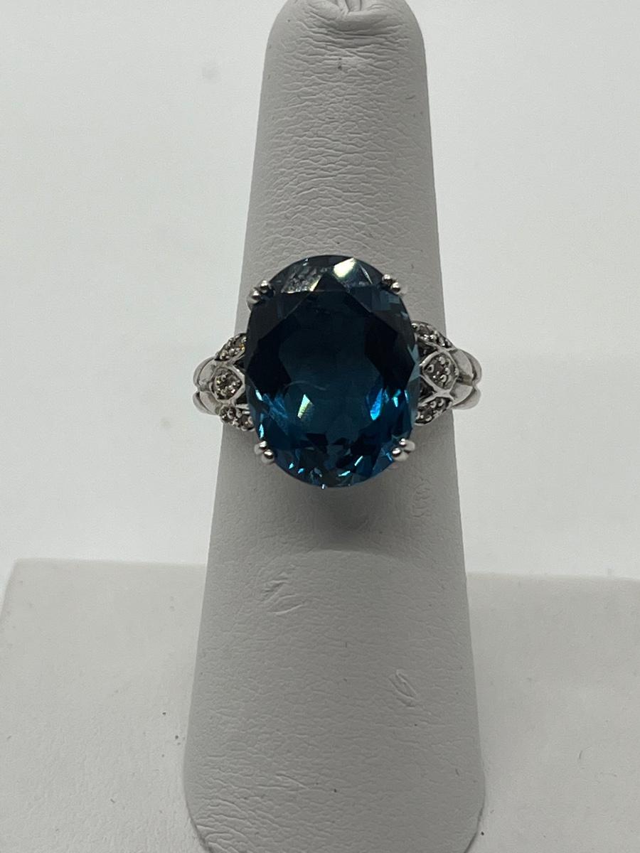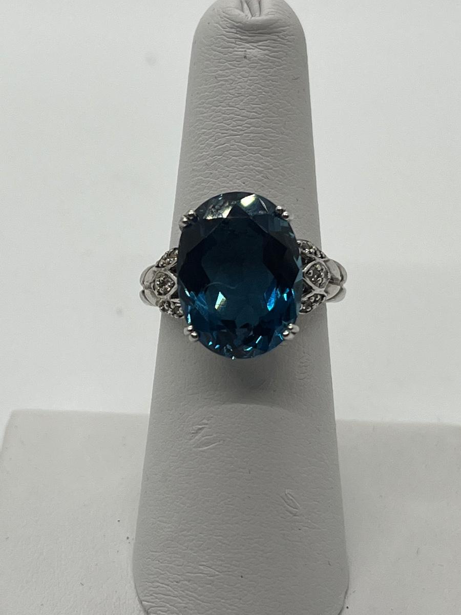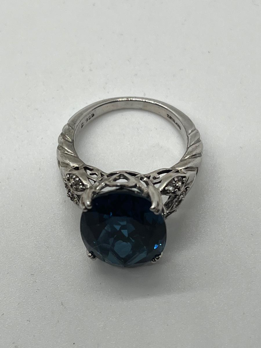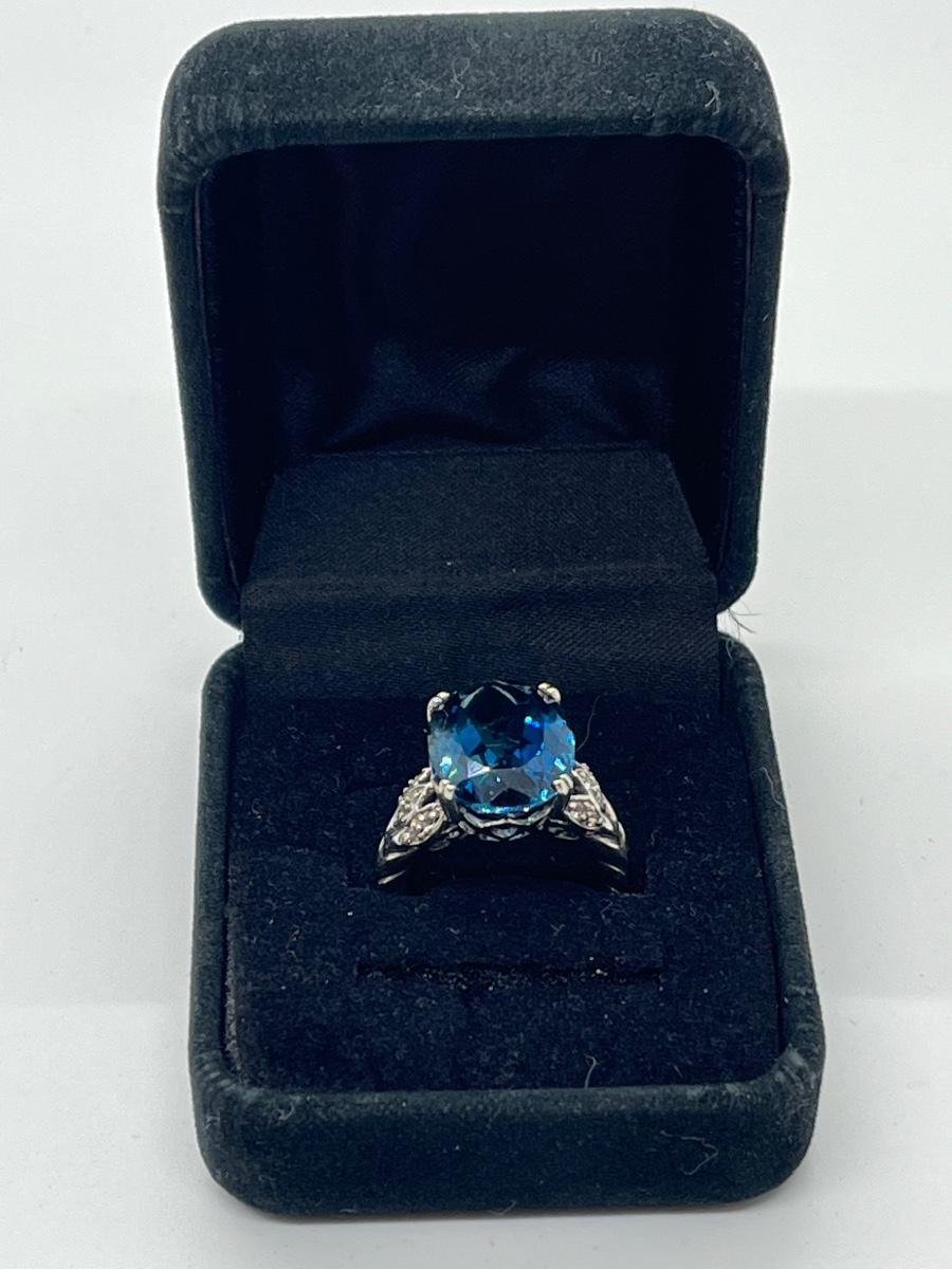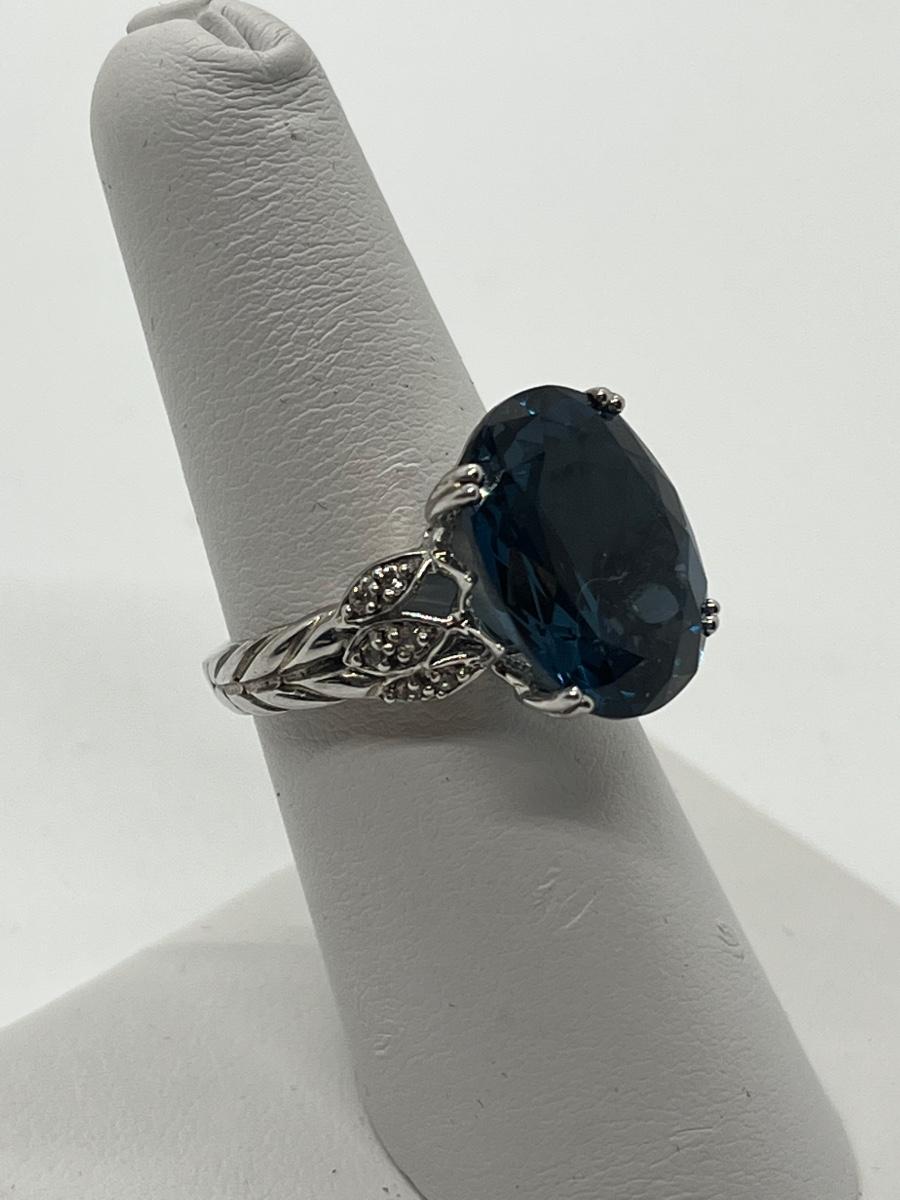 LOT 95: Sterling Silver 3.60 ct tw 5-Stone London Blue Topaz Ring - Size 6