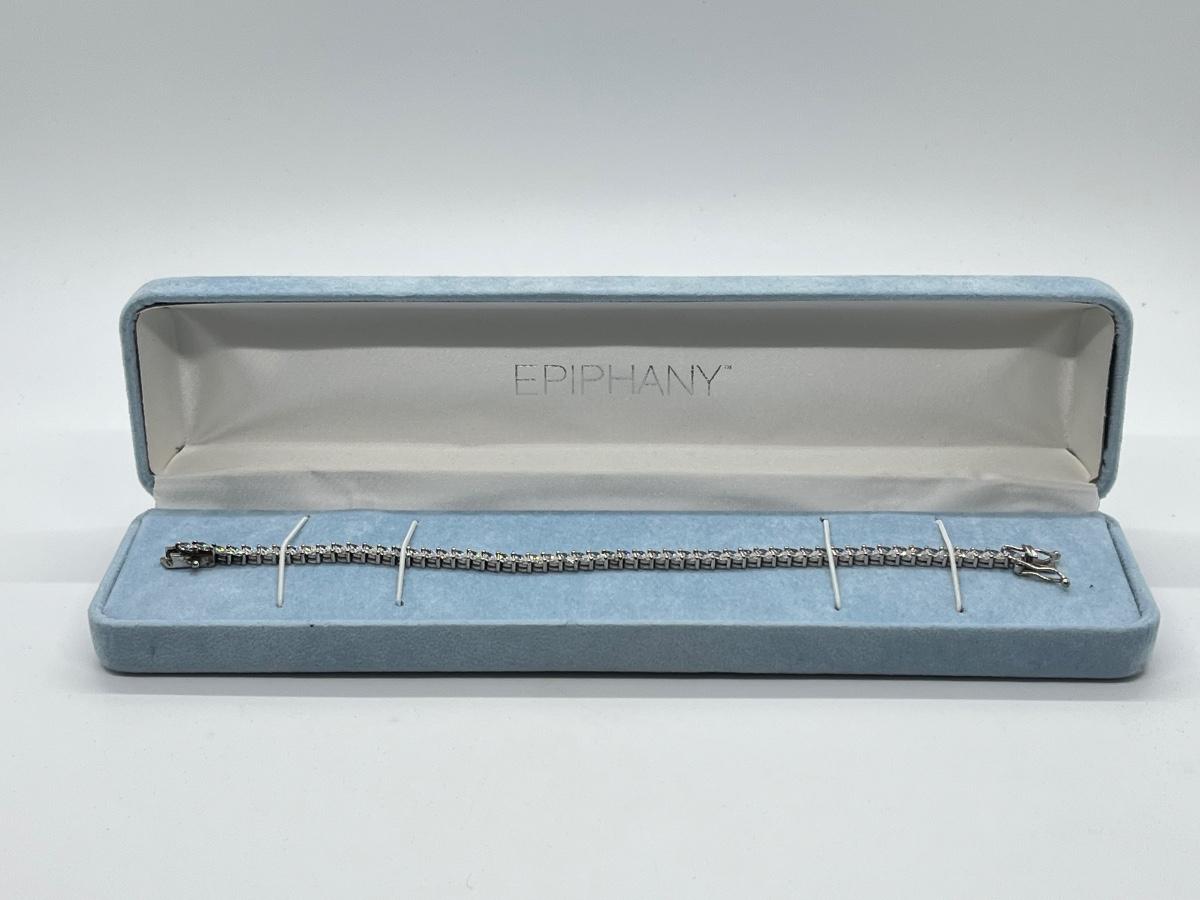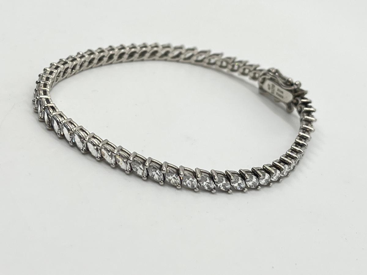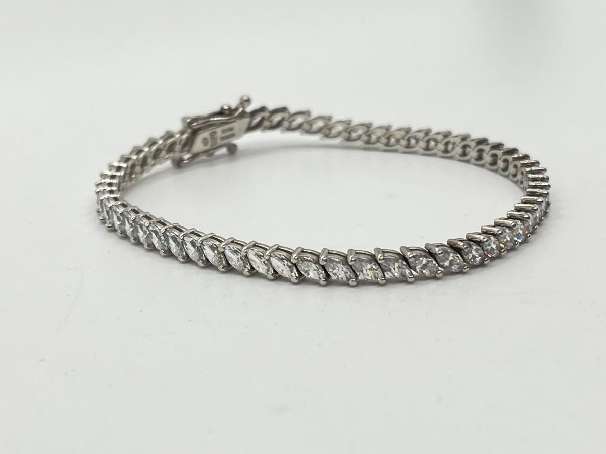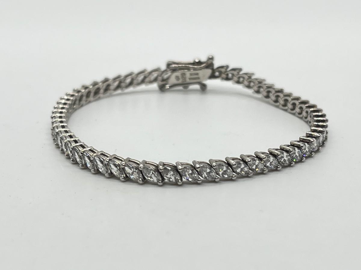 LOT 97: Epiphany Platinum Clad Sterling Silver Marquise Cut Diamonique Tennis Bracelet - 7-1/4"