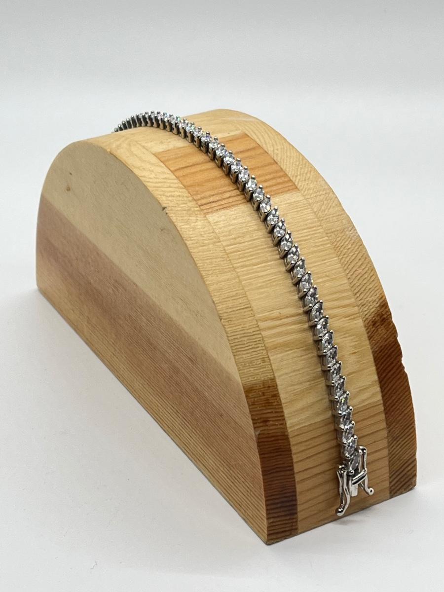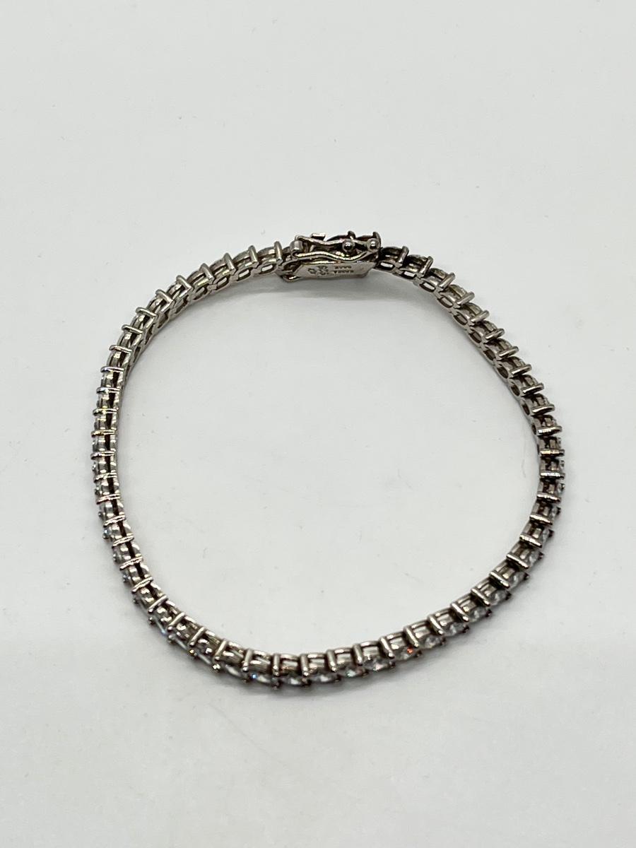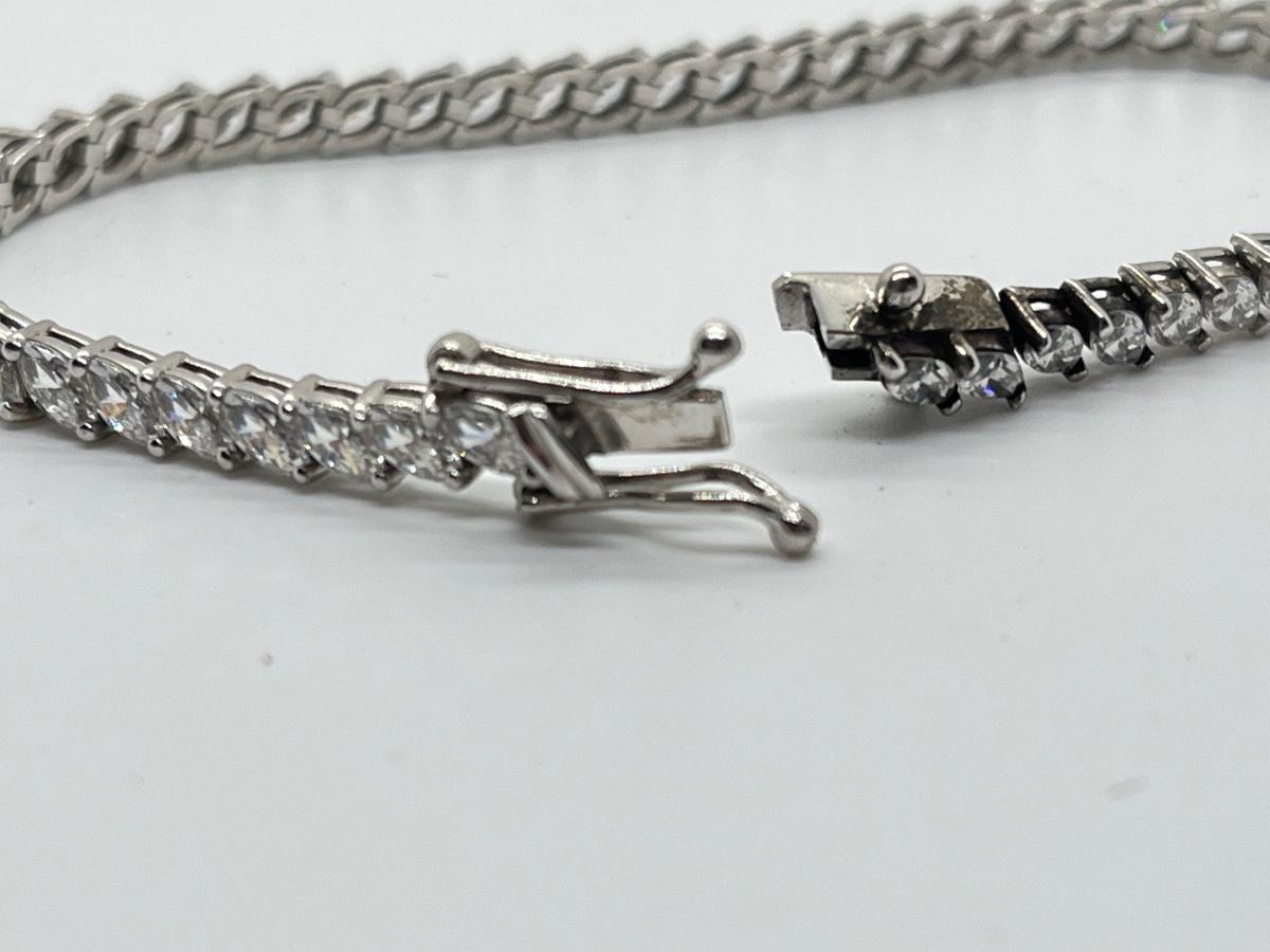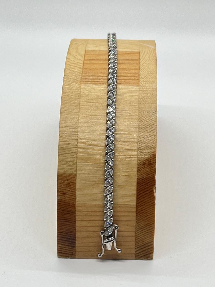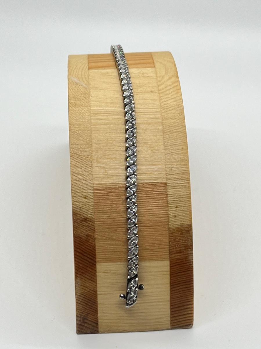 LOT 97: Epiphany Platinum Clad Sterling Silver Marquise Cut Diamonique Tennis Bracelet - 7-1/4"