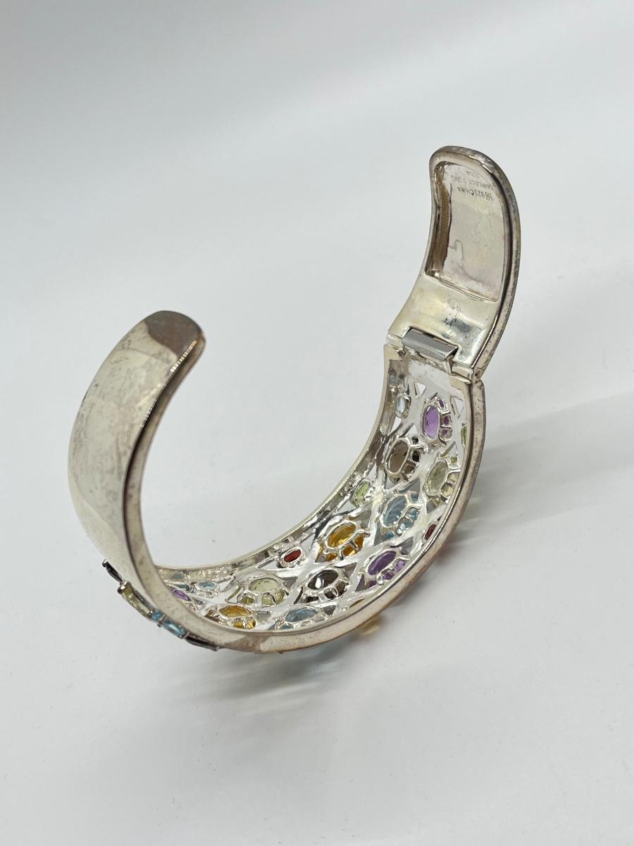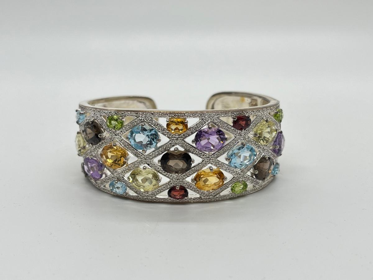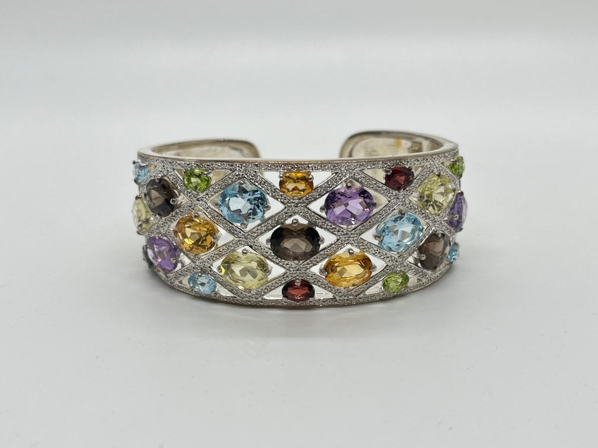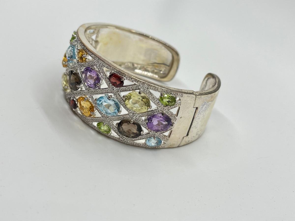 LOT 102: Sterling Silver & Multi-gemstone (23ct tw) Hinged Cuff Bracelet