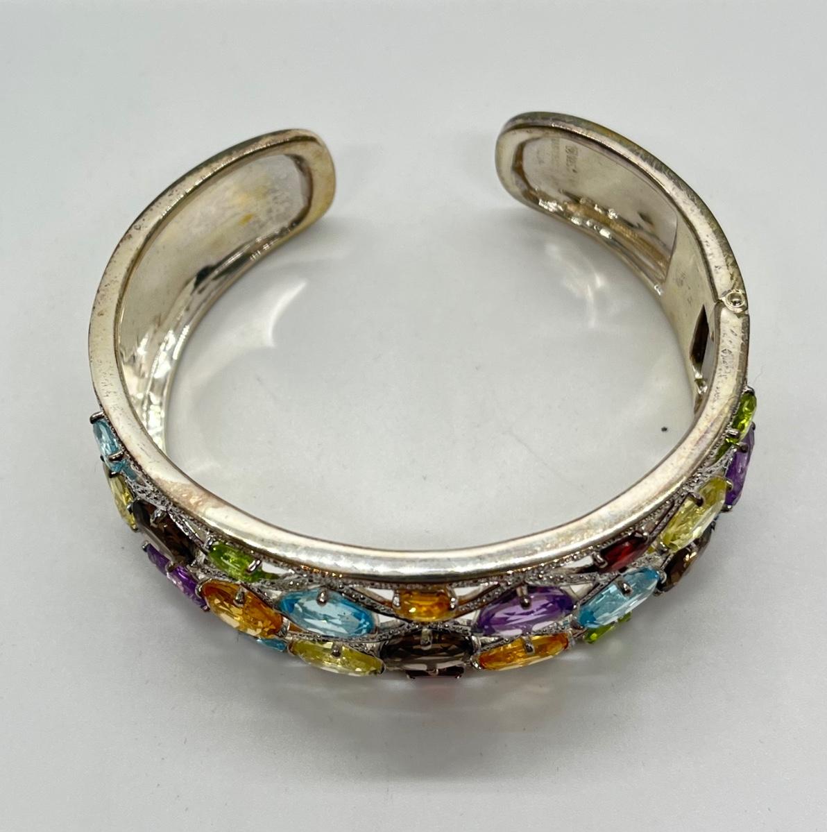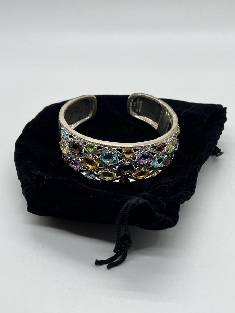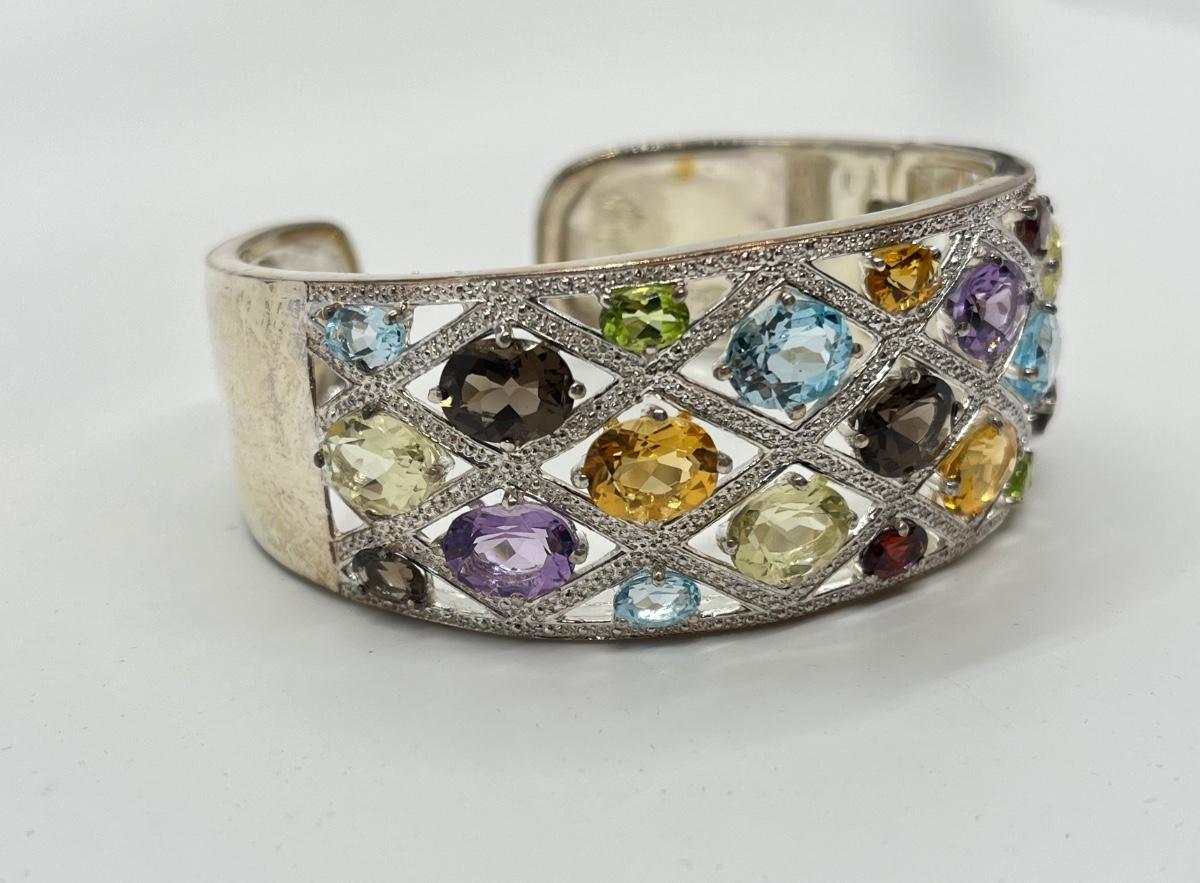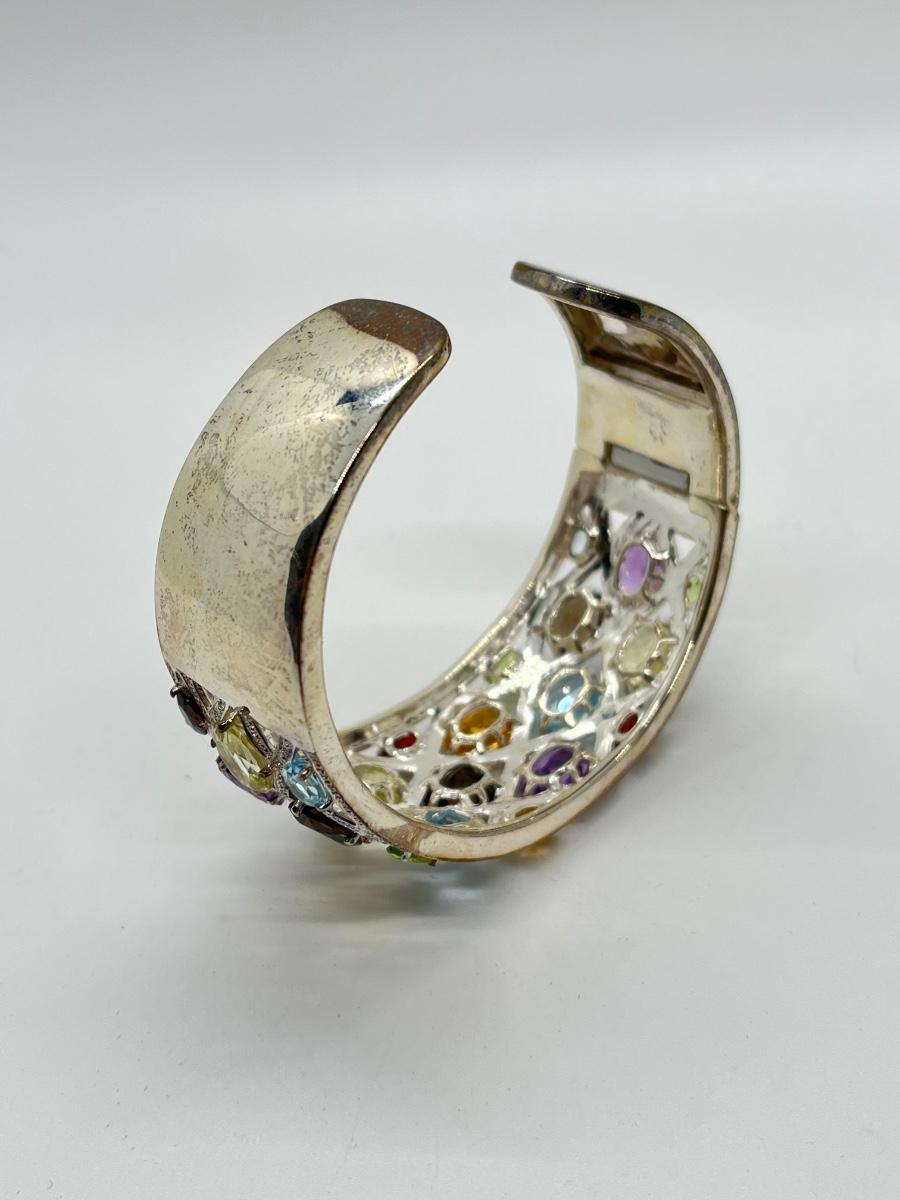 LOT 102: Sterling Silver & Multi-gemstone (23ct tw) Hinged Cuff Bracelet