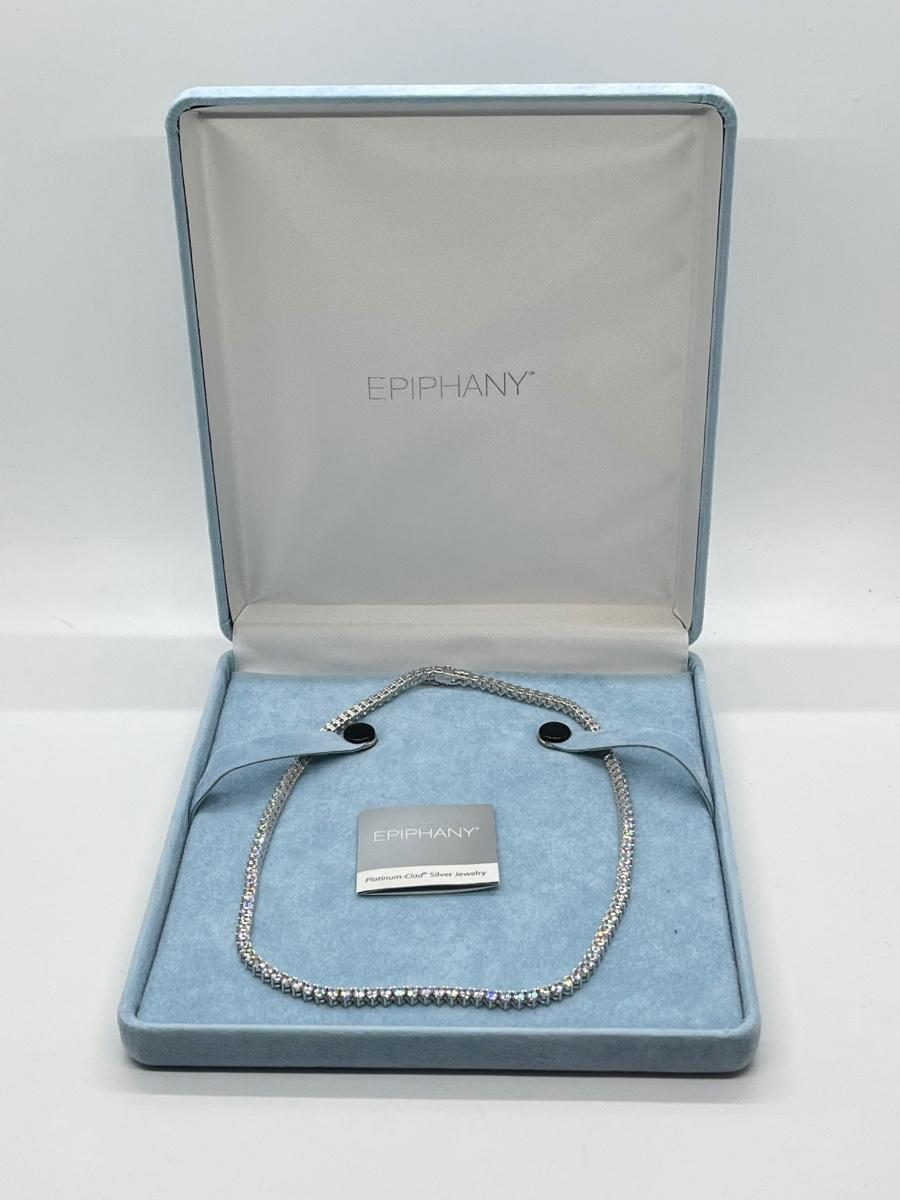 LOT 110: Epiphany Platinum Clad Sterling Silver 16" Diamonique Tennis Necklace