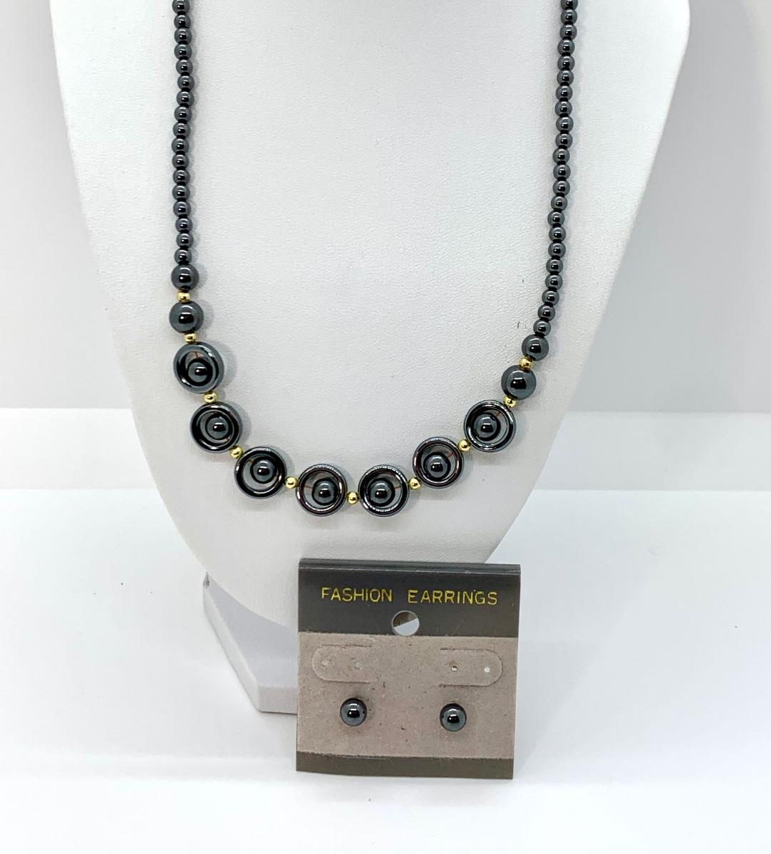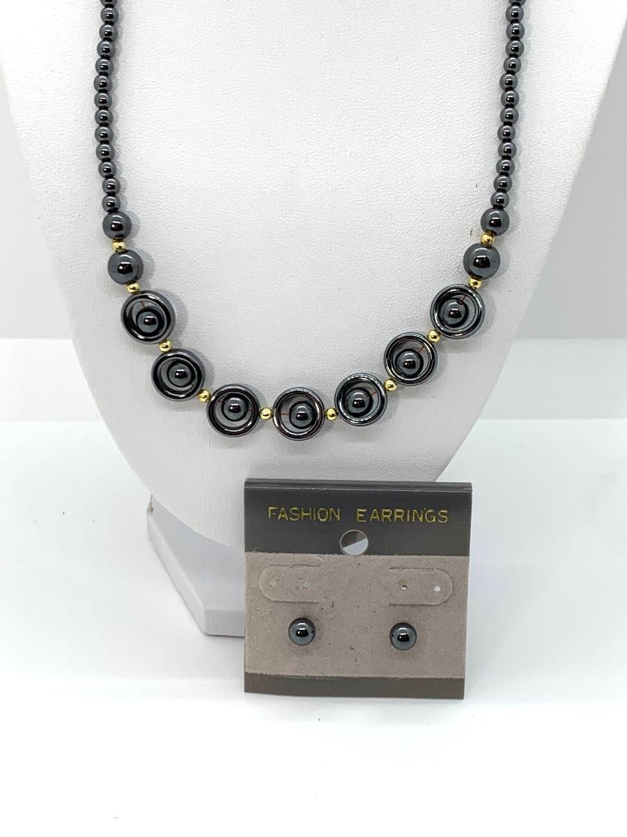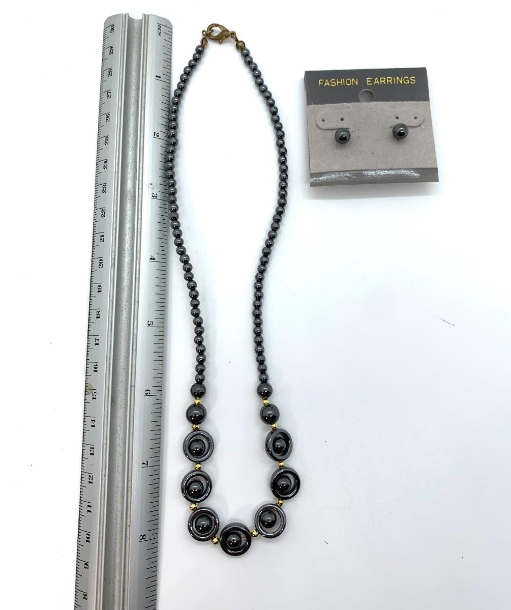 Lot 6: Hematite 18"L Necklace & Pierced Earrings: Never Worn