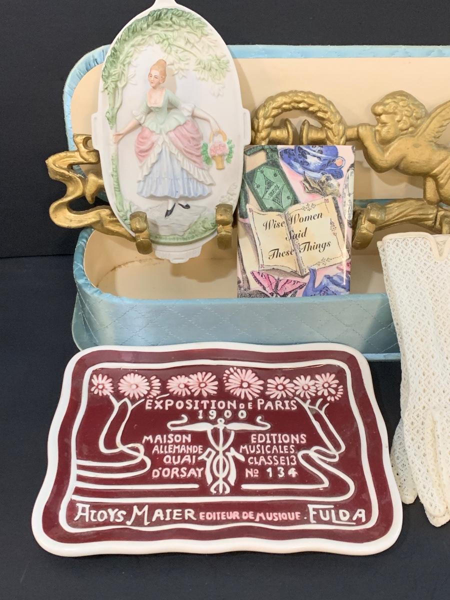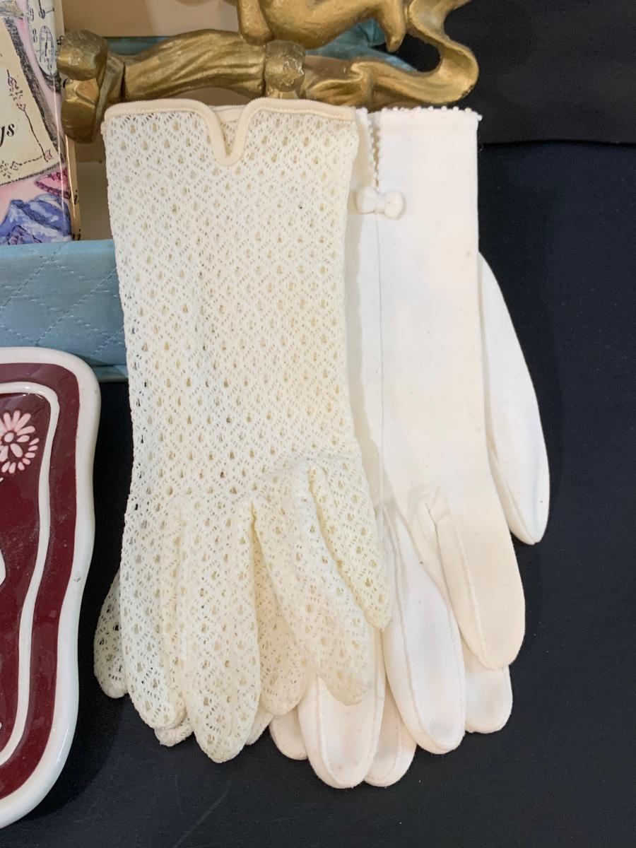 Lot 37: Vintage Gloves, Glovebox, Metal Angel Wall Hanger & More