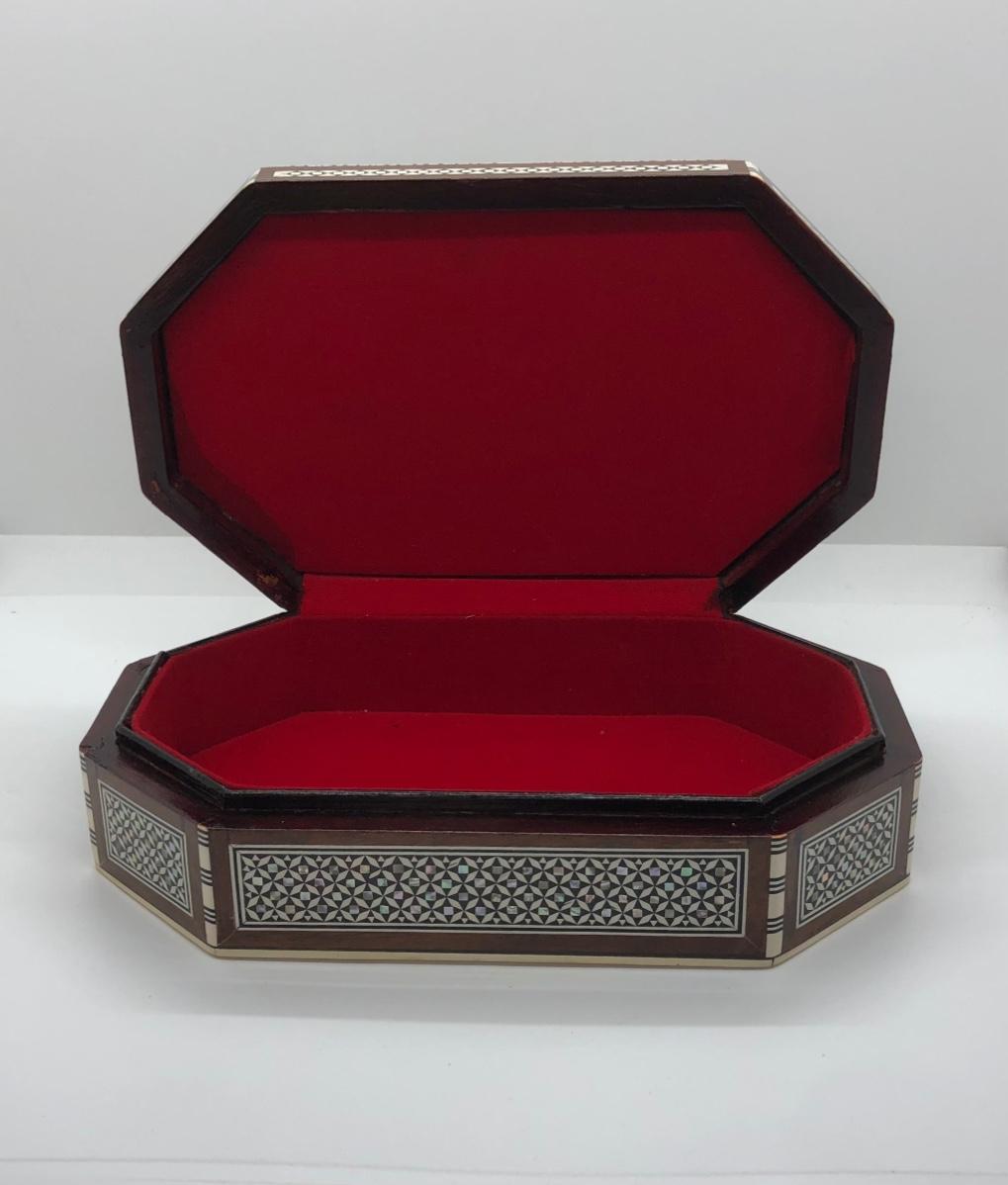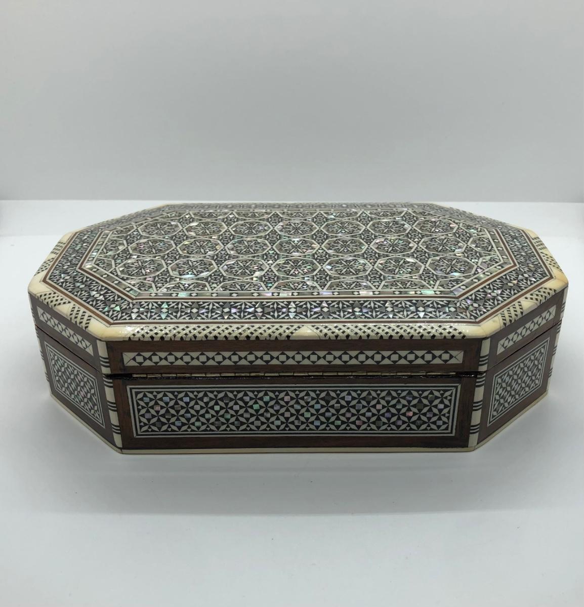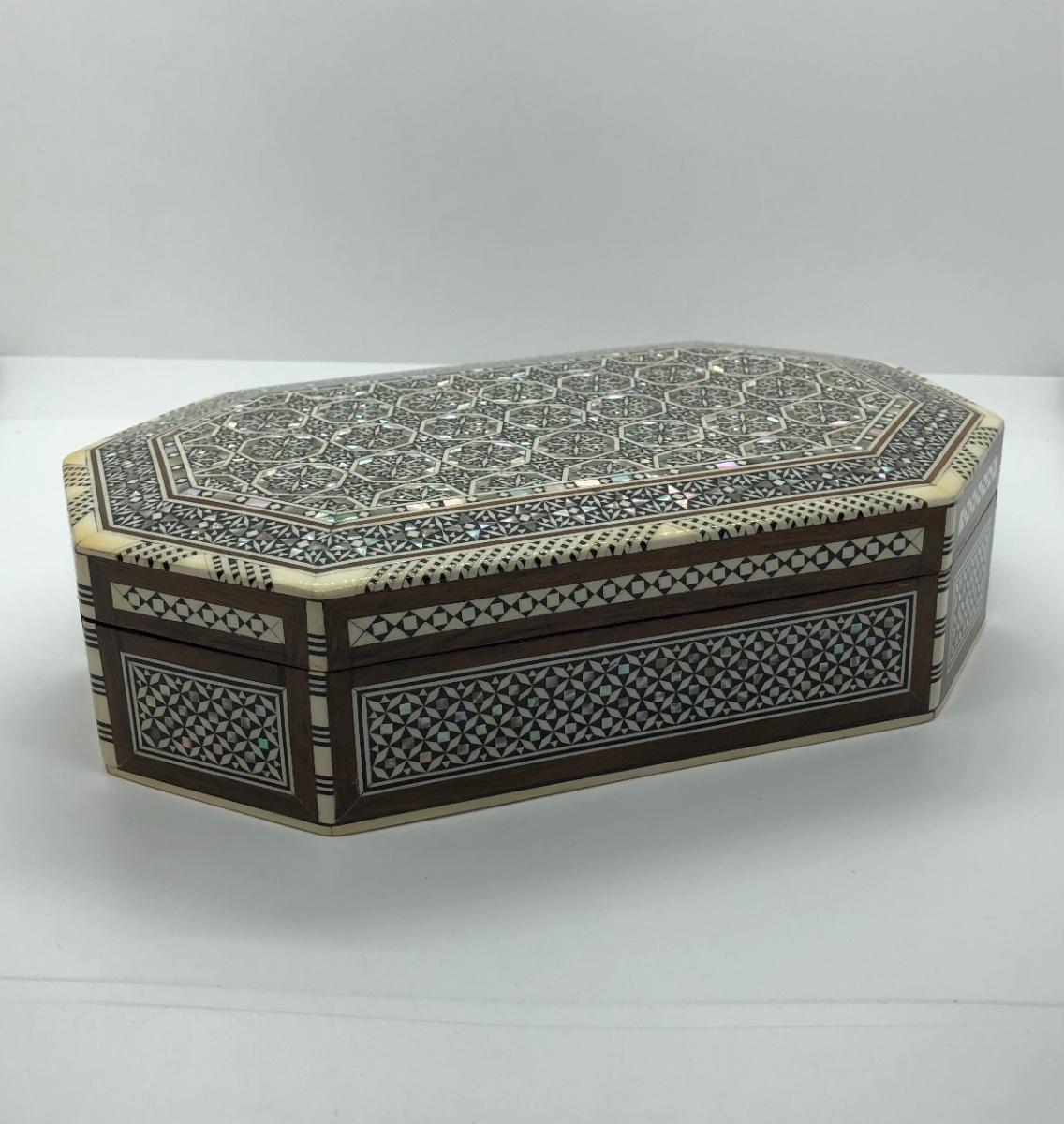 Lot 52:BEAUTIFUL Intricate Inlay Oblong Treasure Box, Desert by Design Made in Egypt, Unused