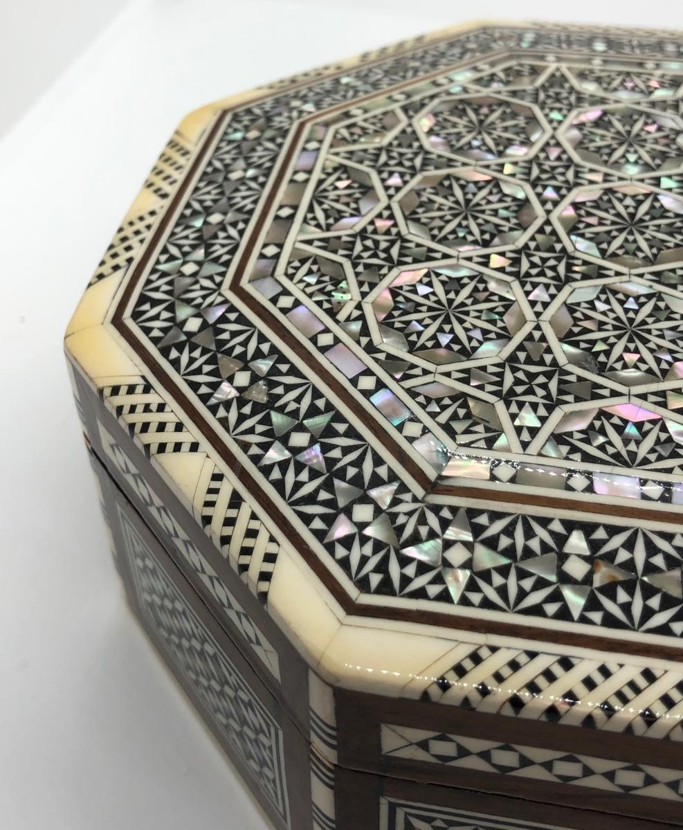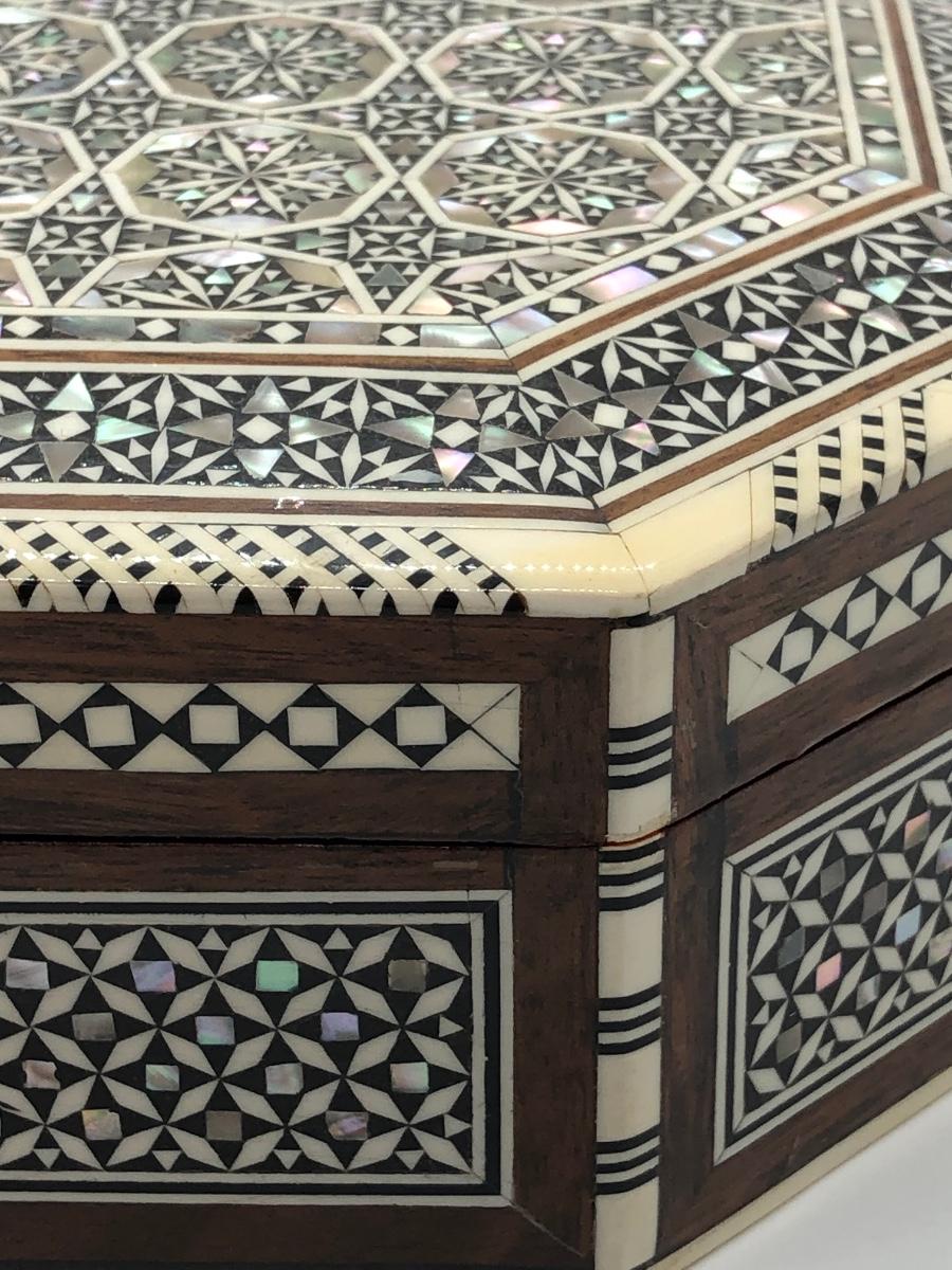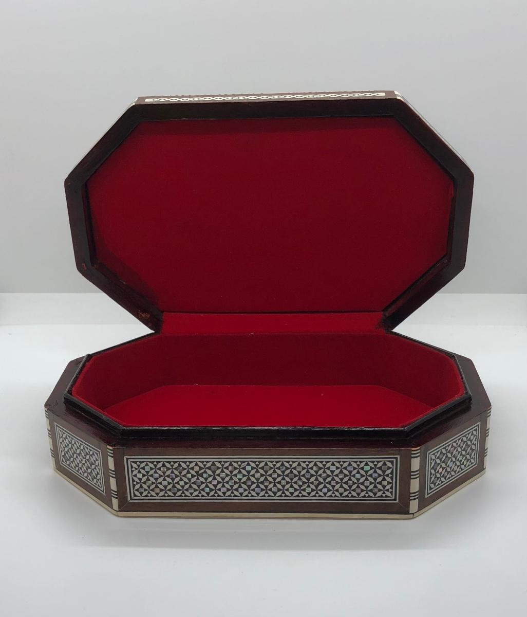 Lot 52:BEAUTIFUL Intricate Inlay Oblong Treasure Box, Desert by Design Made in Egypt, Unused