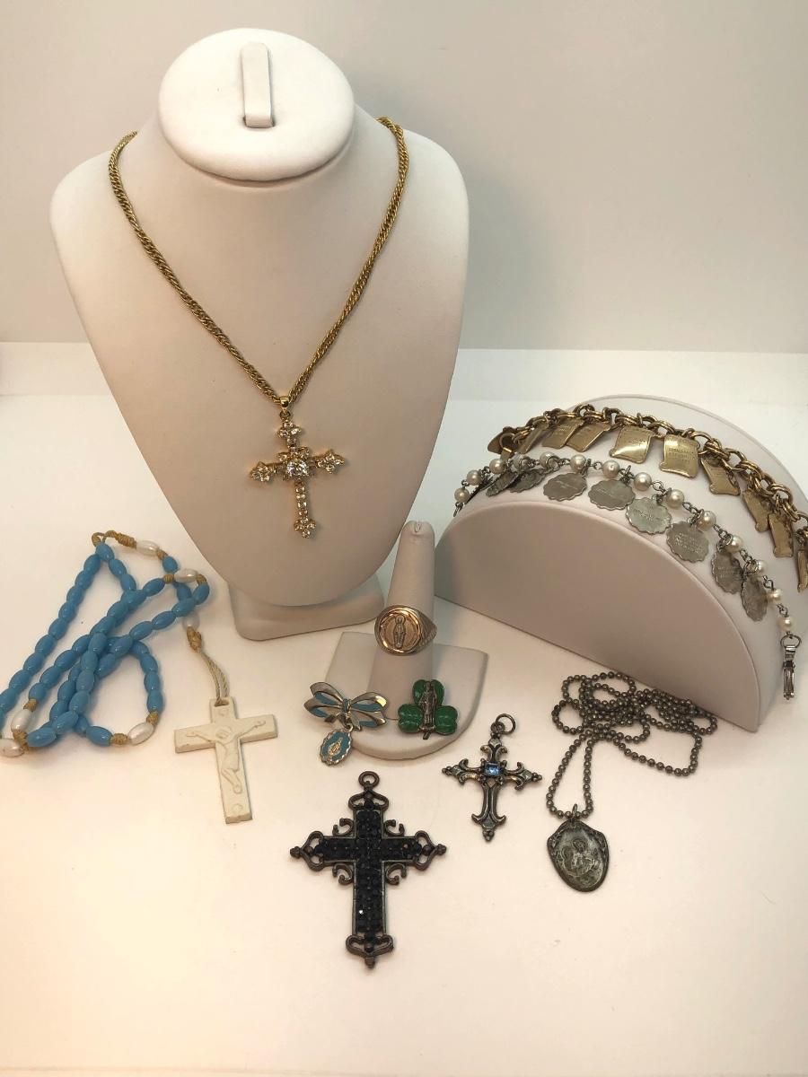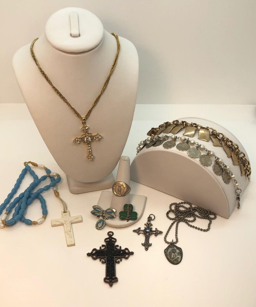 Lot 67: Vintage Ten Commandments Charm Bracelets, Crosses, Rosaries & More