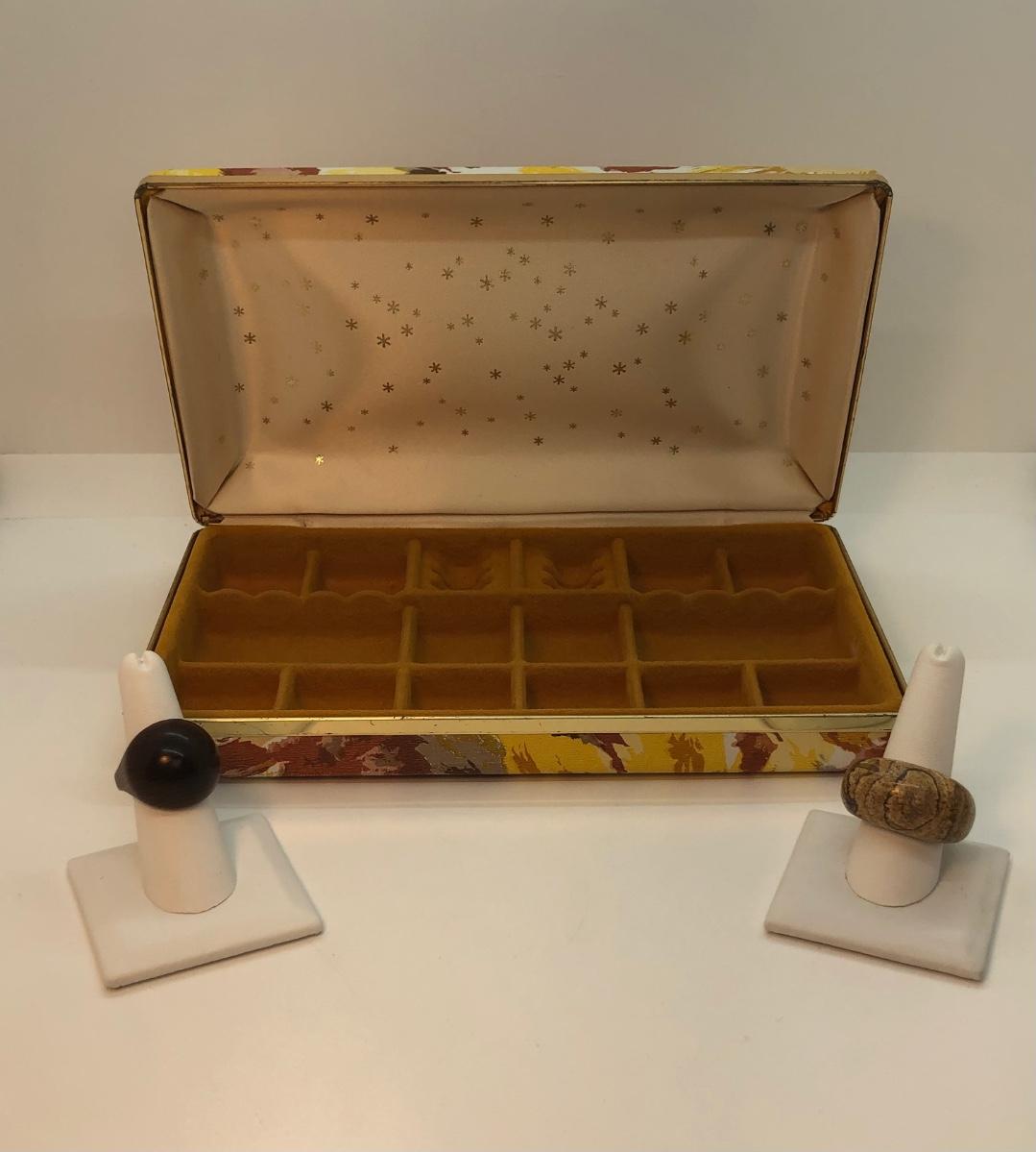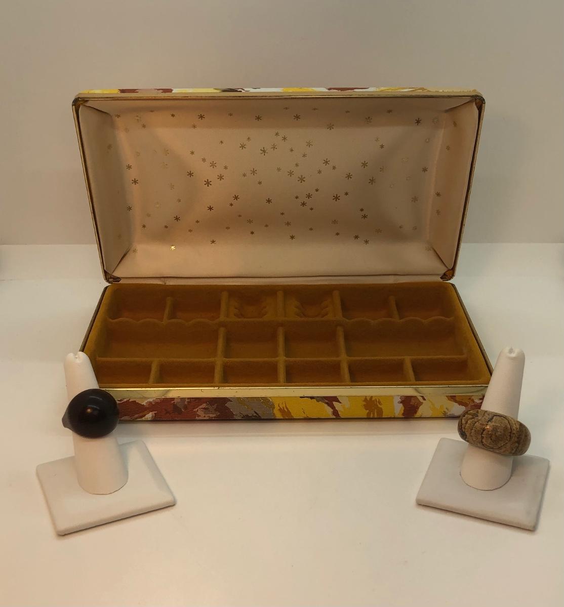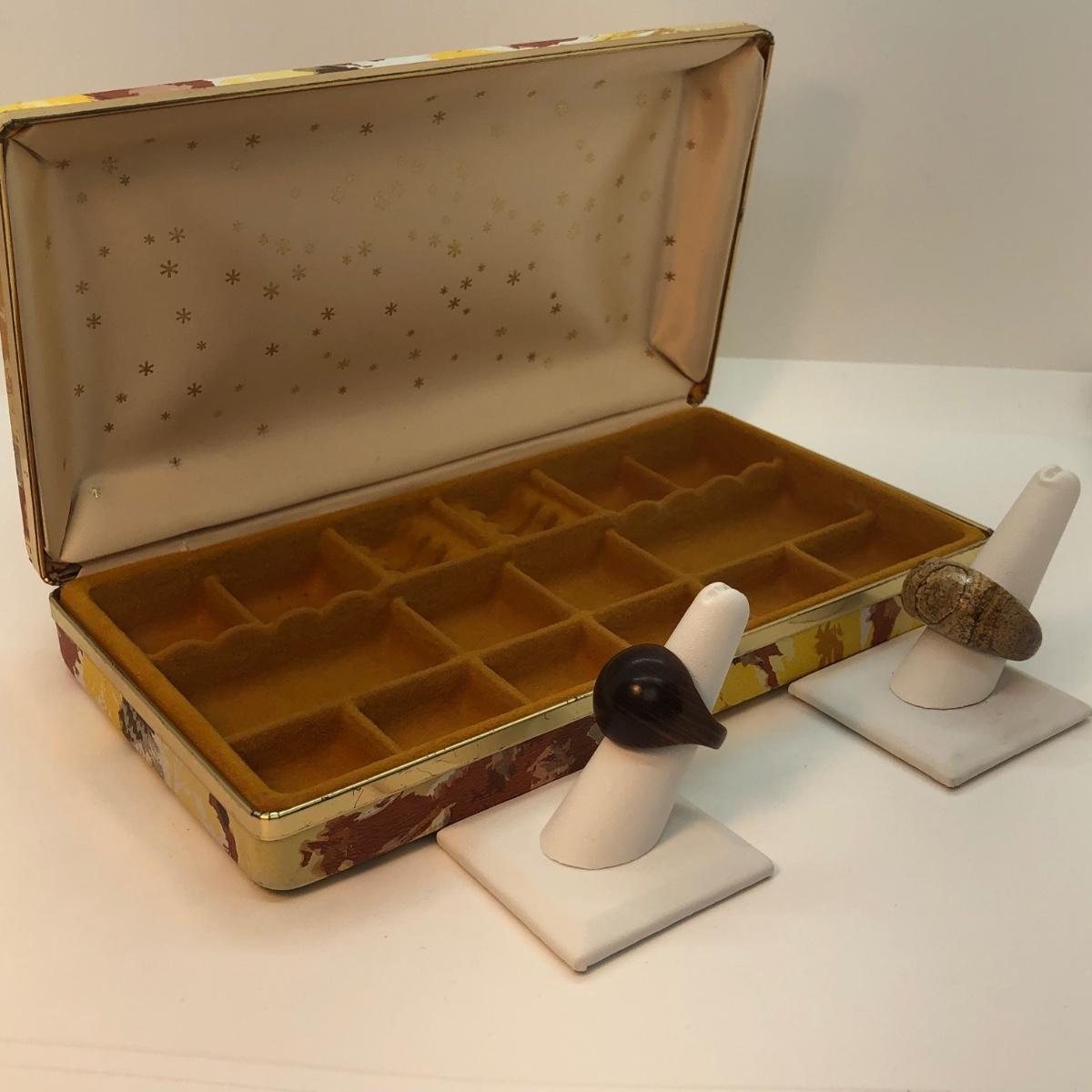Lot 82: Vintage Jewelry/Earring Case, Wooden Ring & Costume Cocktail Ring
