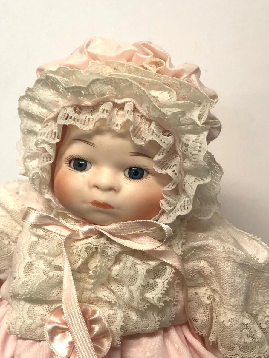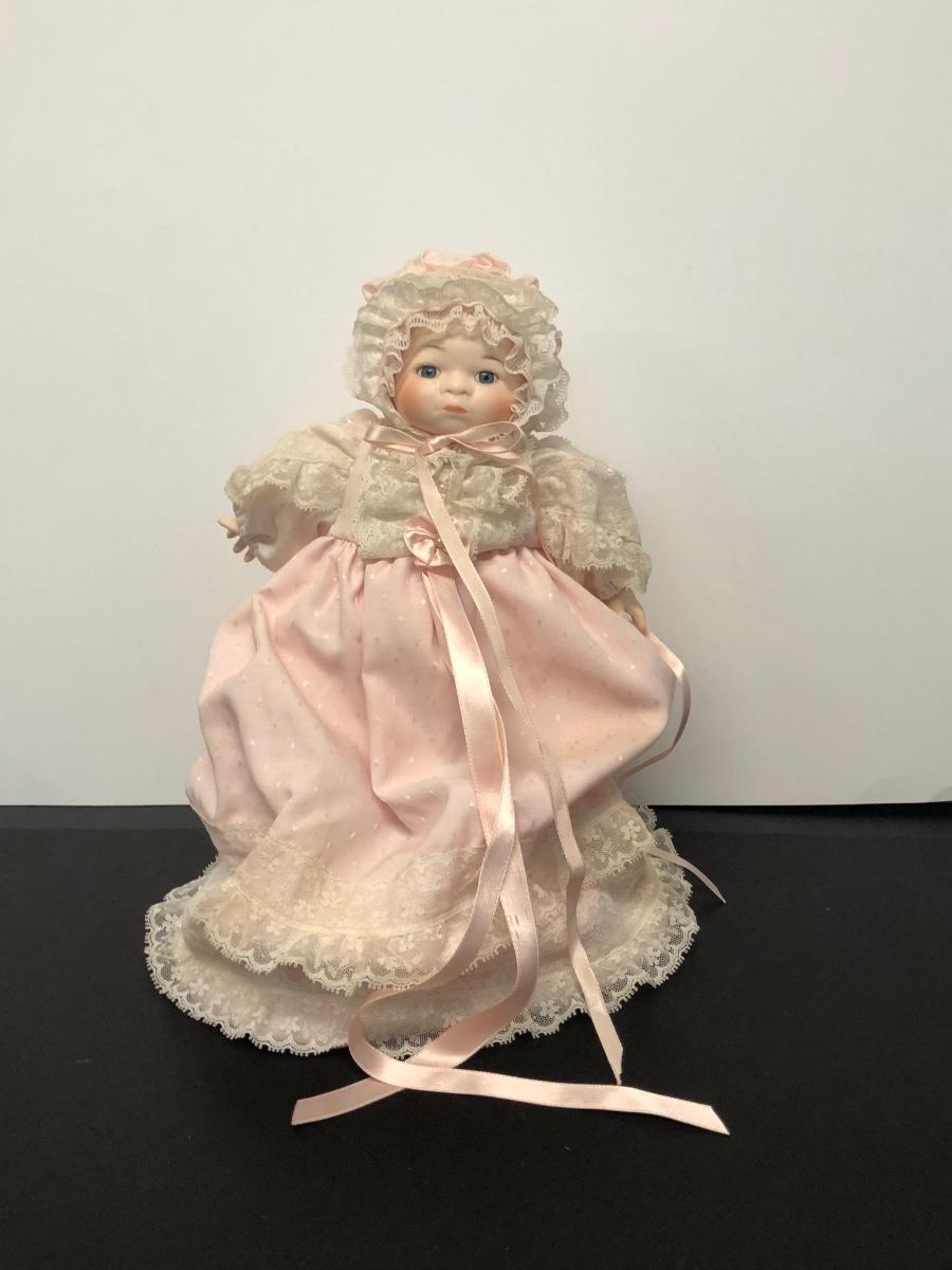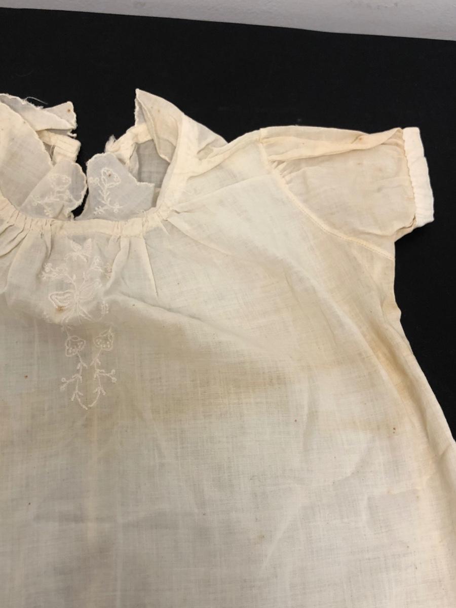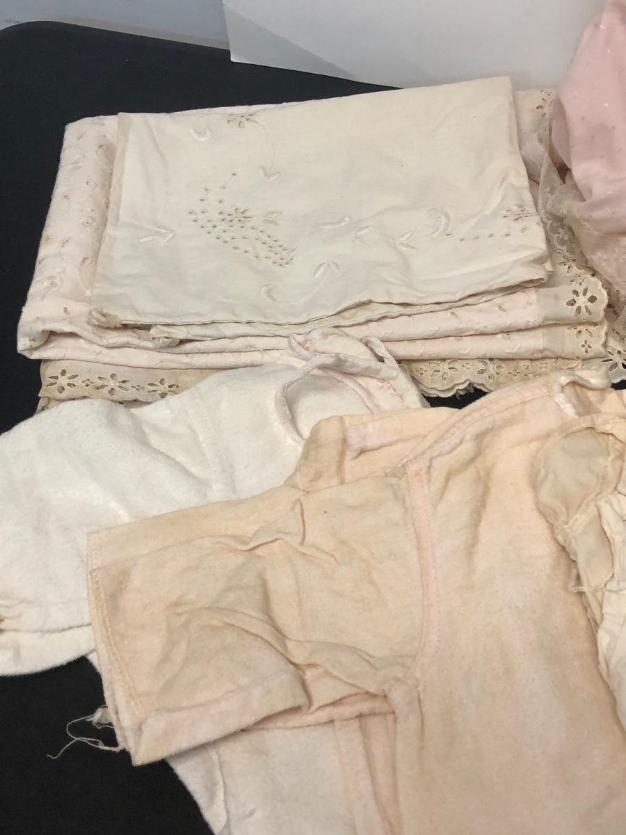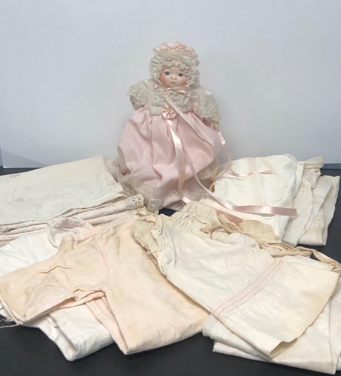 Lot 89: Vintage Larger Baby Doll Clothing w/Small Ceramic Doll