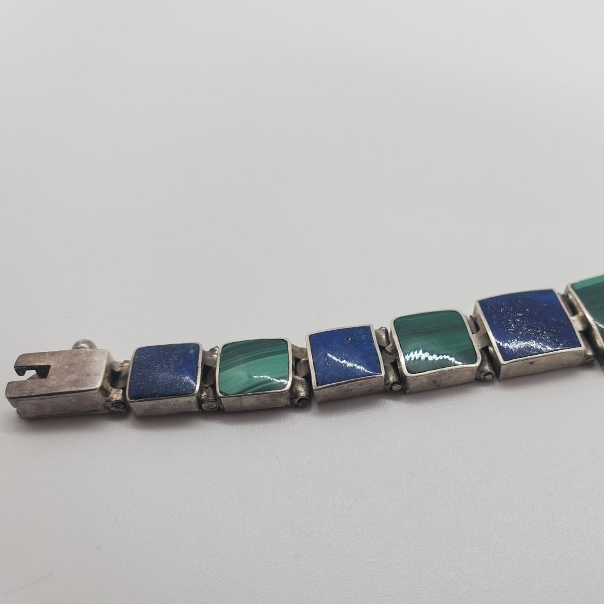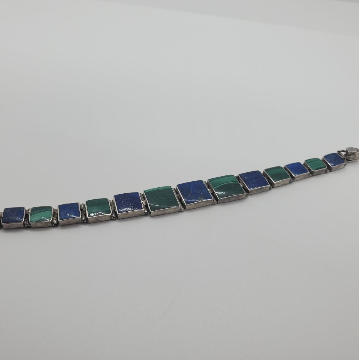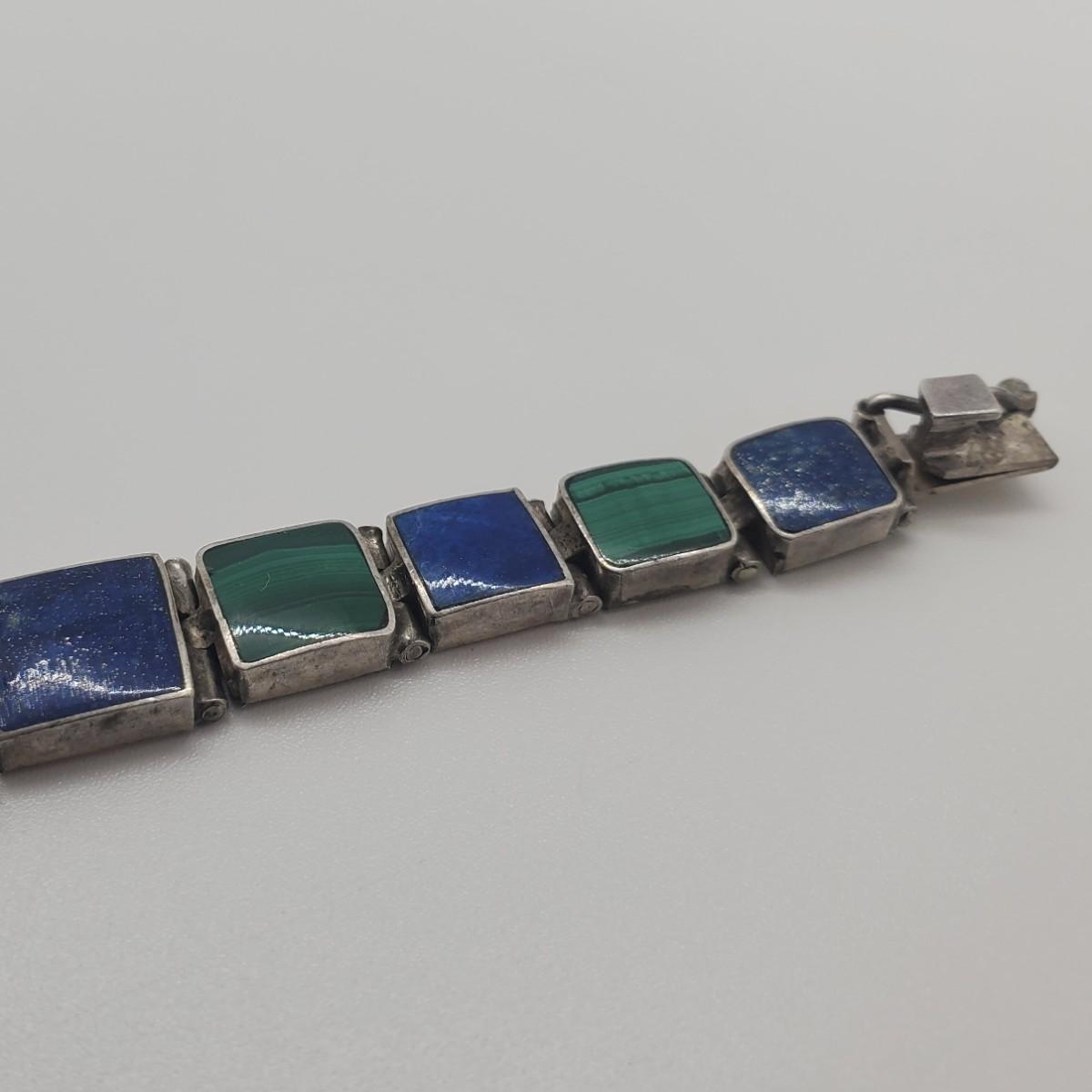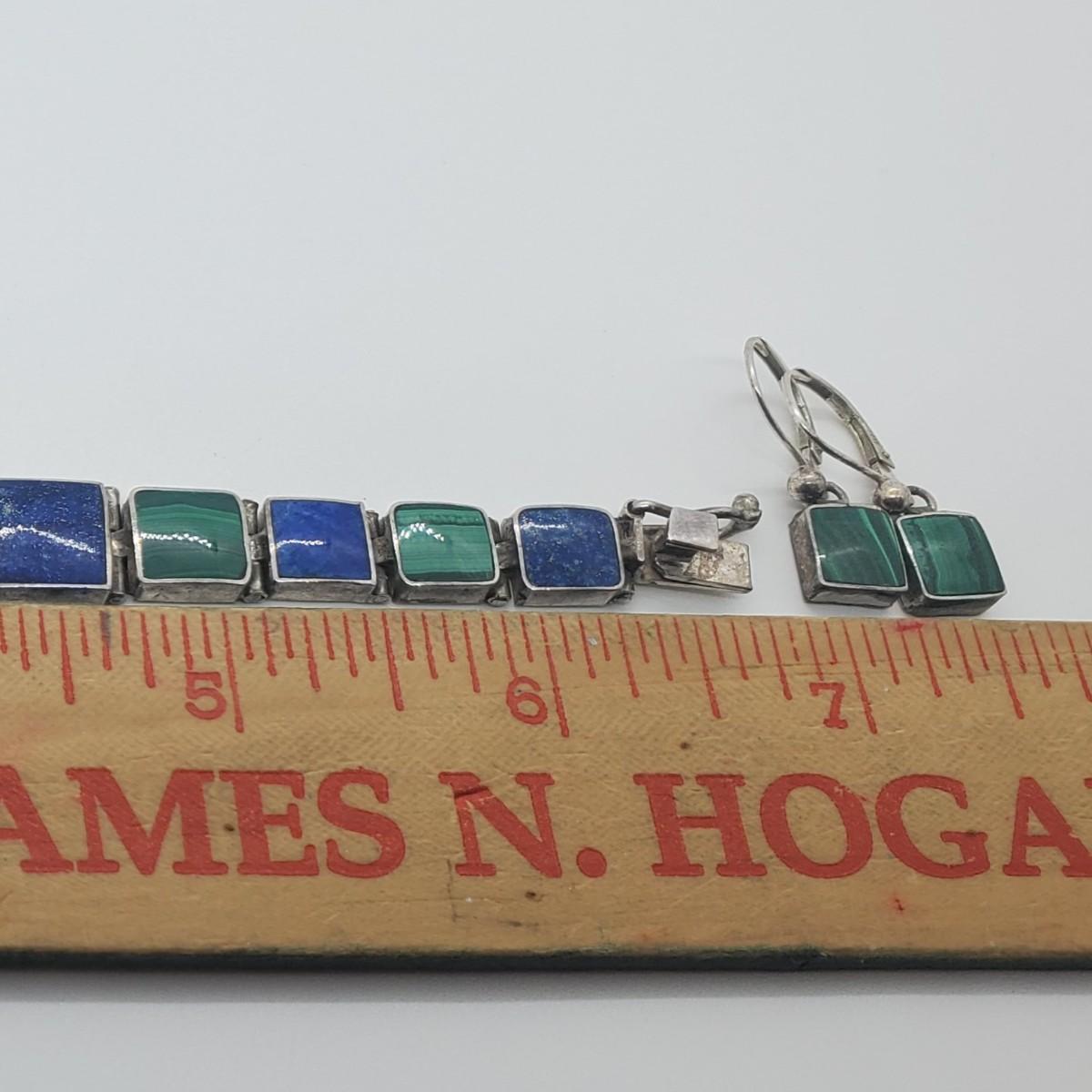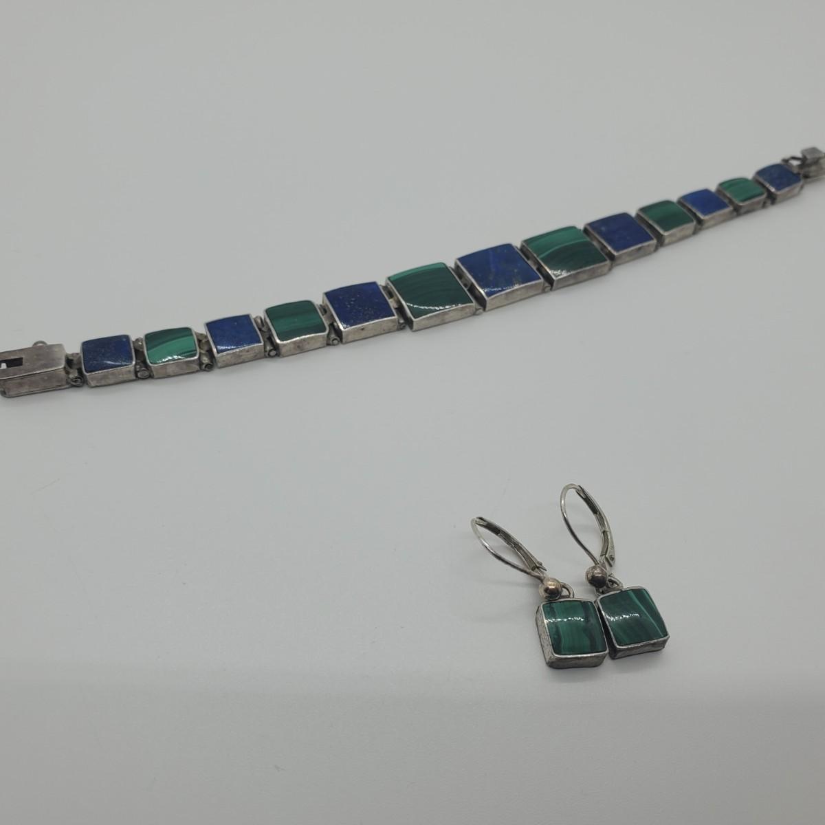 Lot 95: Malachite & Lapis Sterling Silver Bracelet & Earrings Set