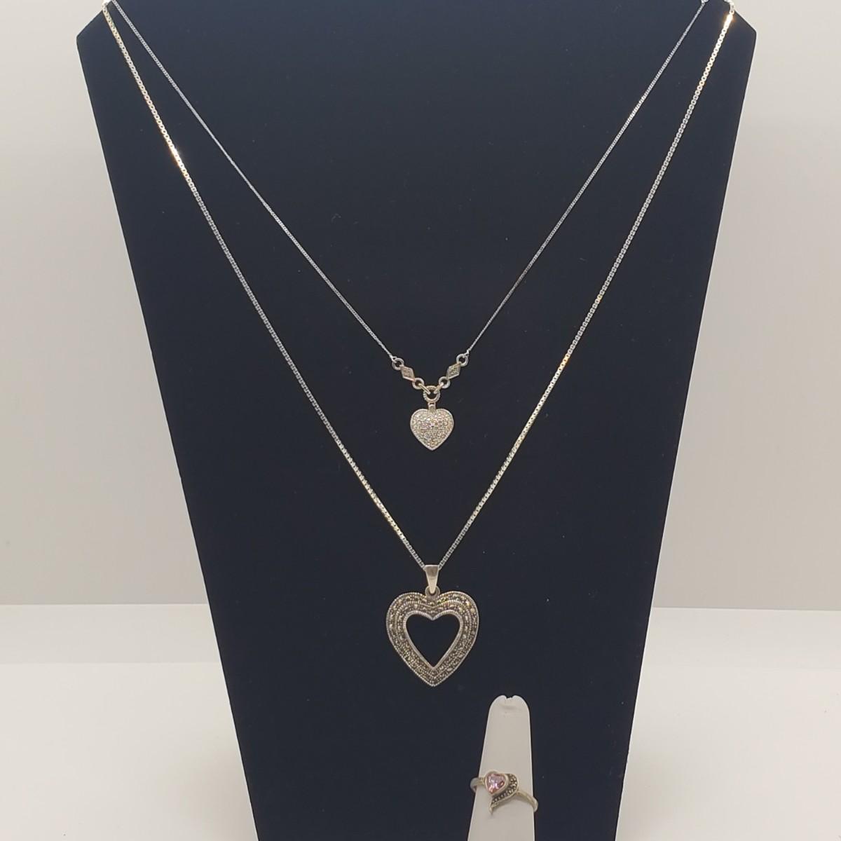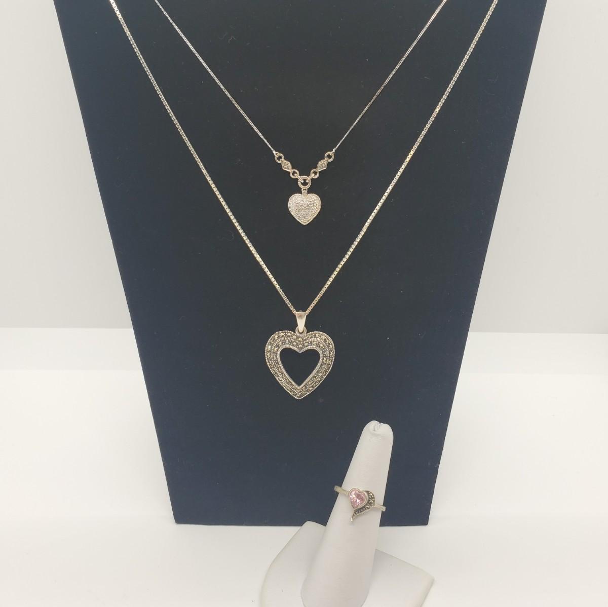 Lot 113: Marcasite Ring & Necklace, 925 Marked STS, Necklaces-18in, ring sz. 7: Perfect Valentine Gift