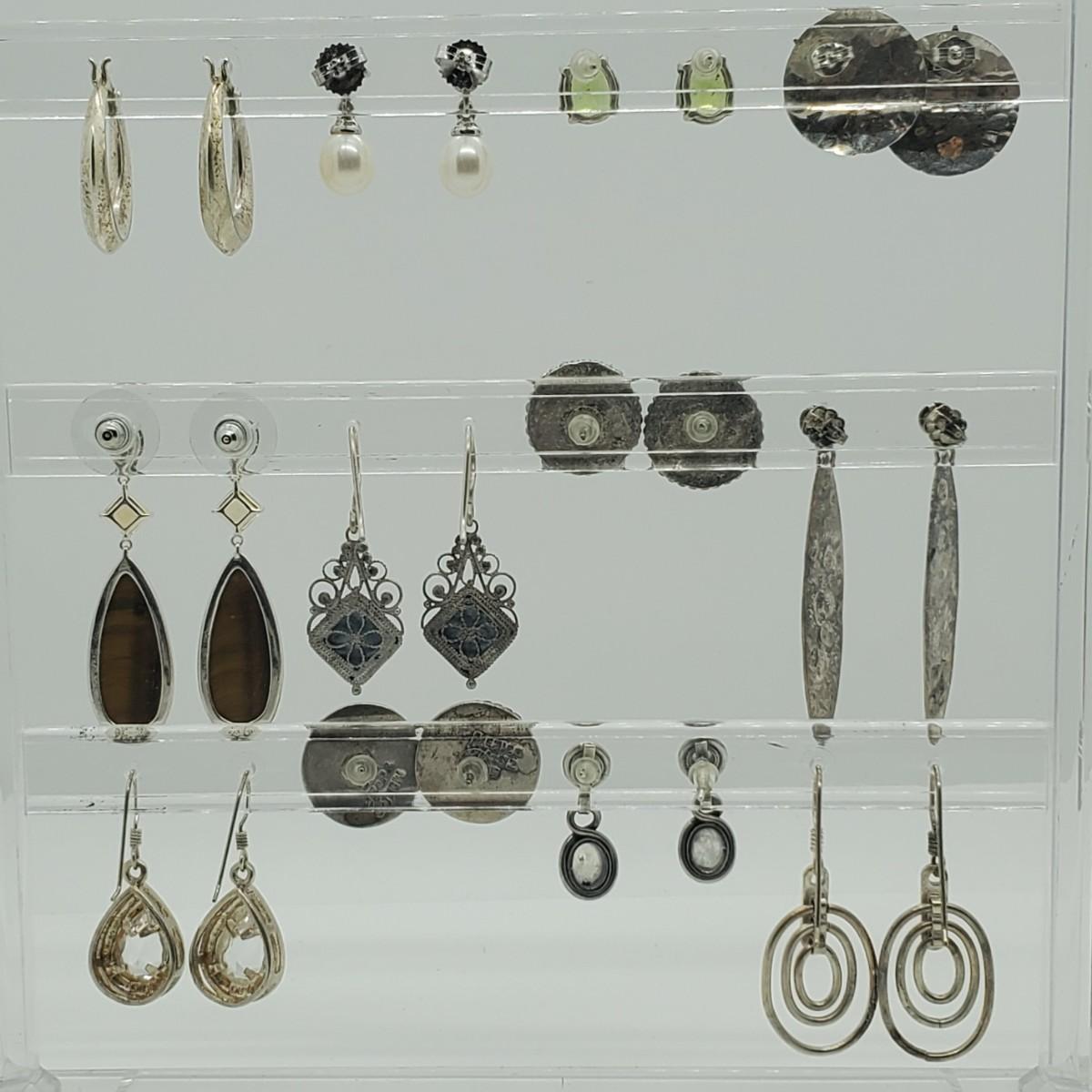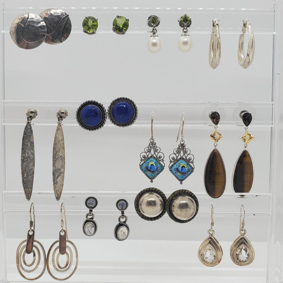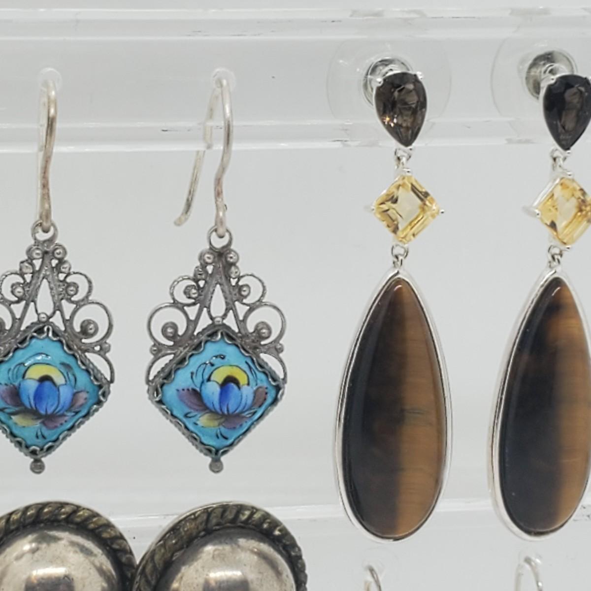 Lot 116: Pierced Earrings: Peridot, Tiger's Eye, Lapis: Sterling 925 & More