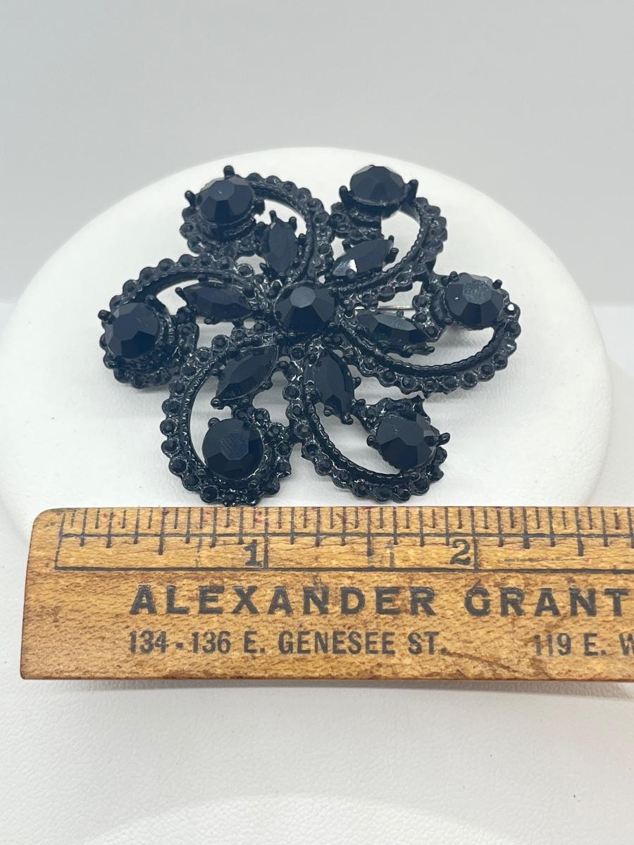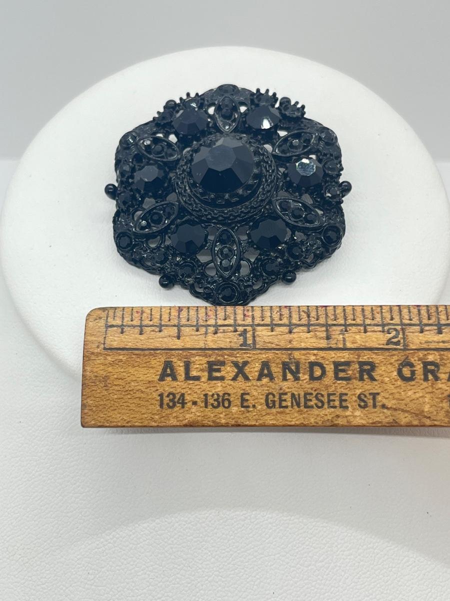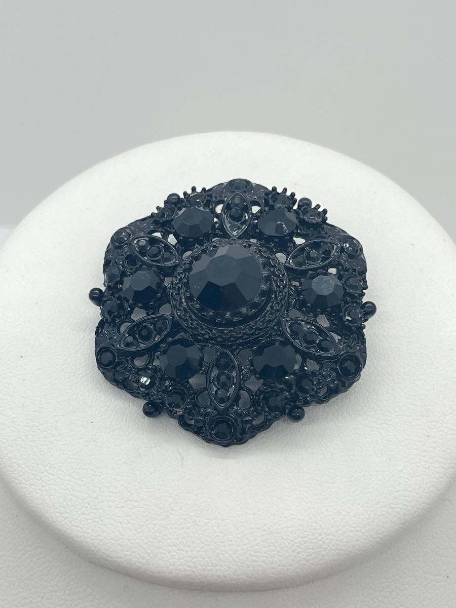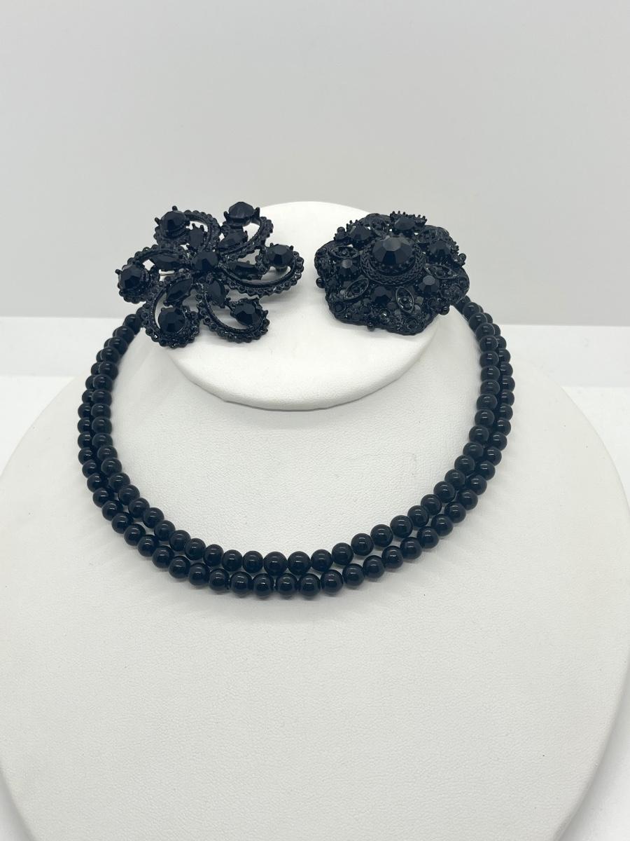 LOT 4: Two Black Rhinestone Brooches - Two Black 16" Necklaces