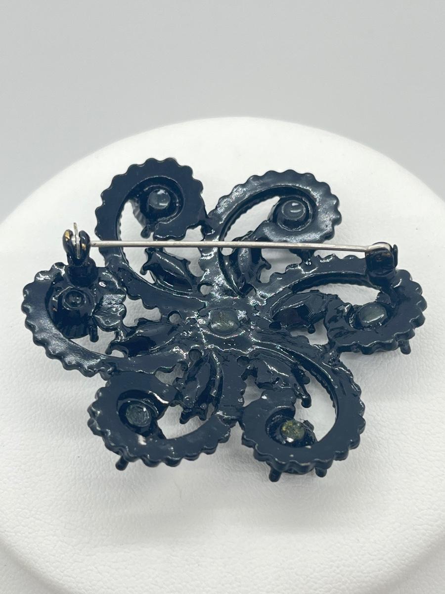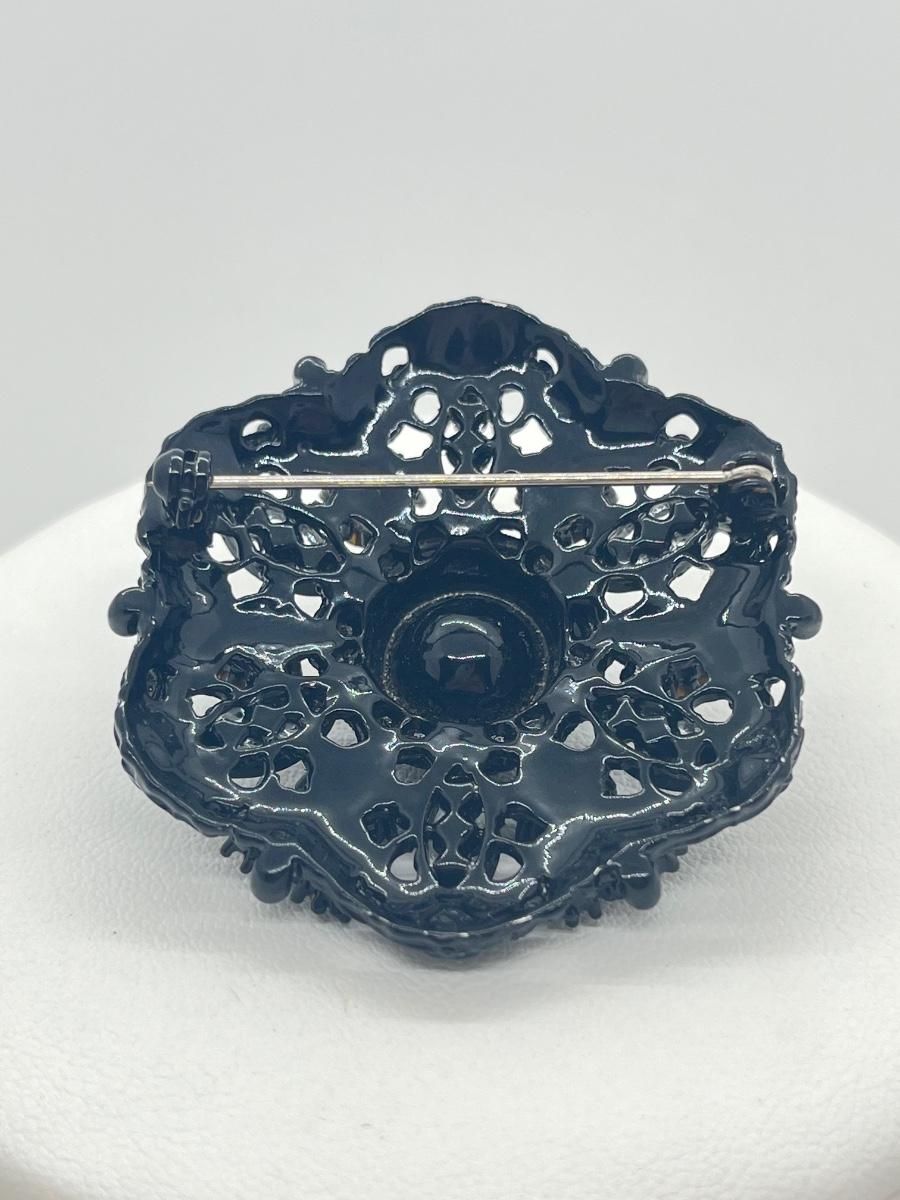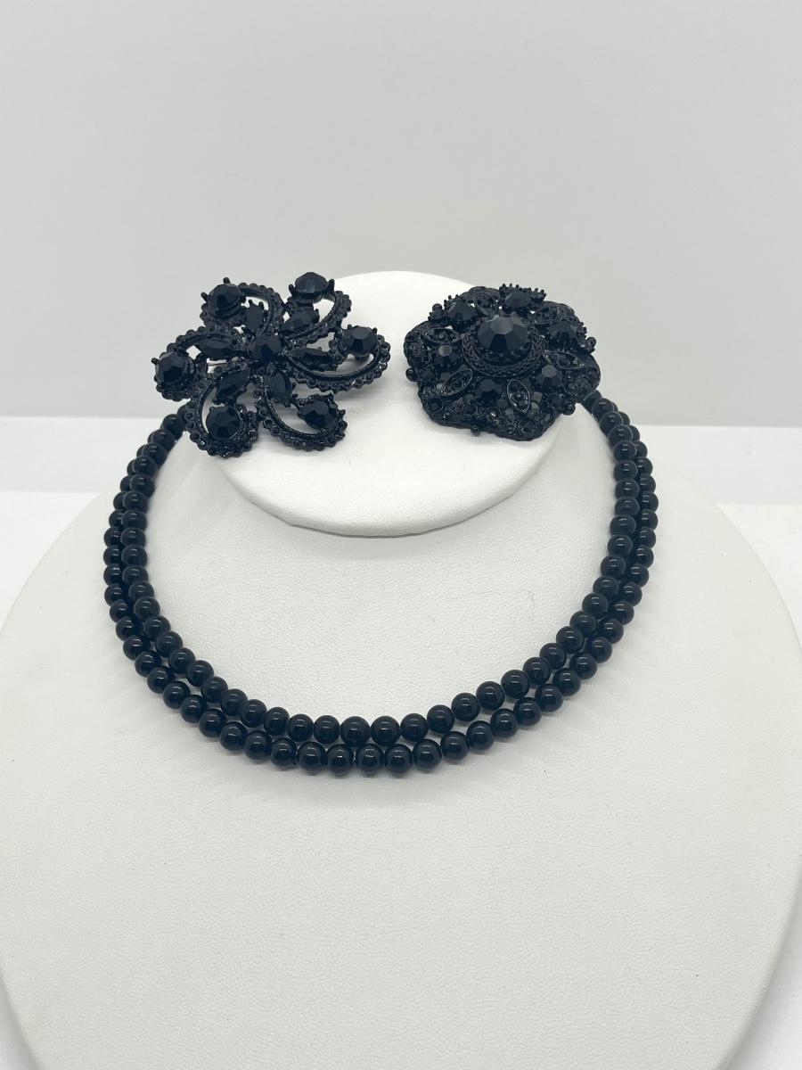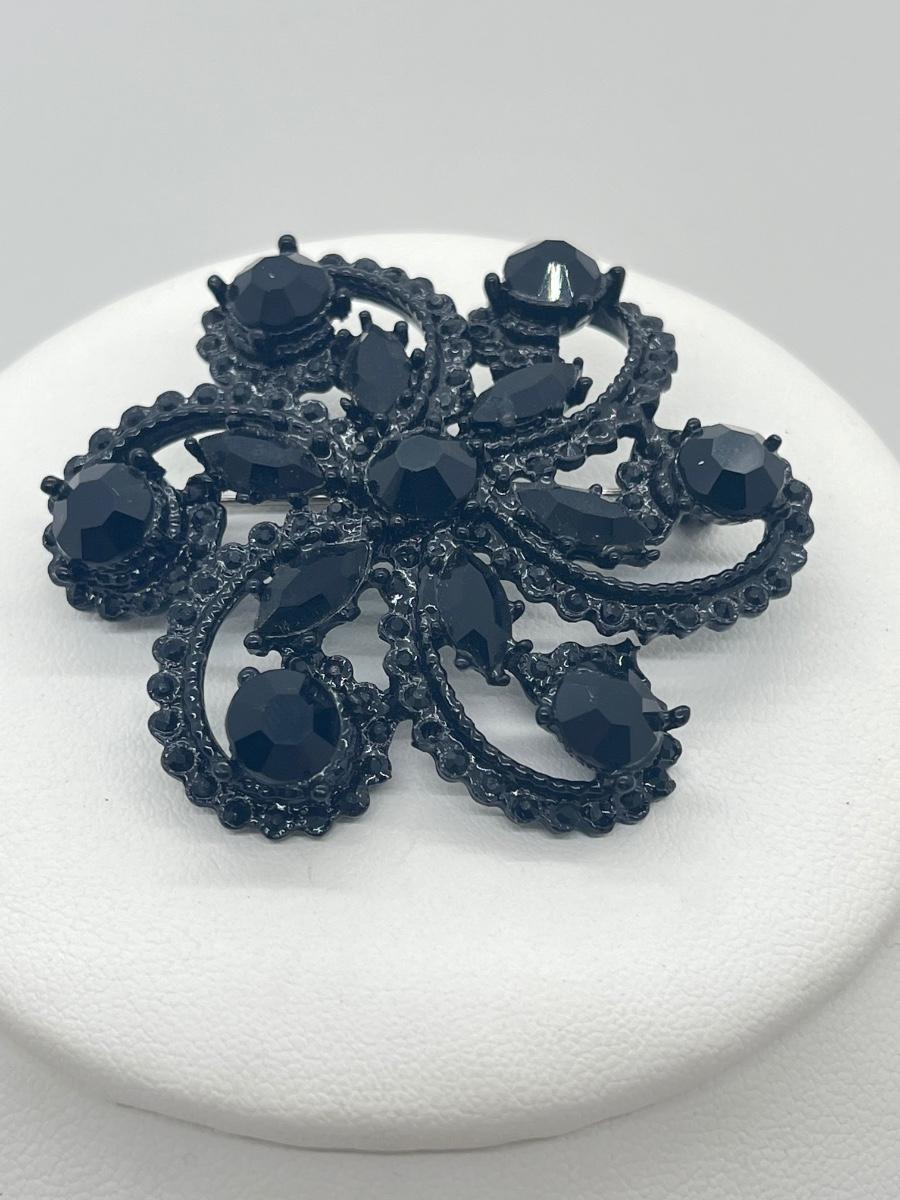 LOT 4: Two Black Rhinestone Brooches - Two Black 16" Necklaces