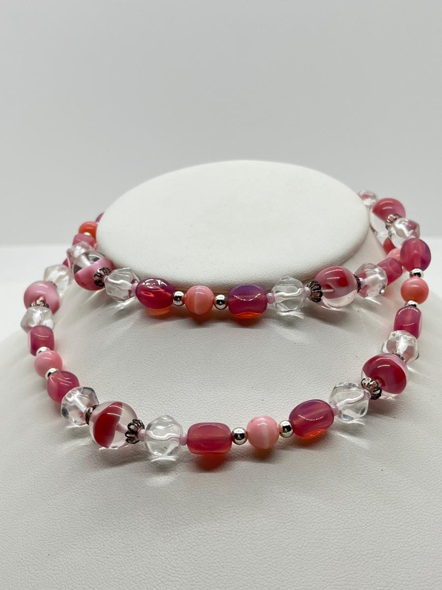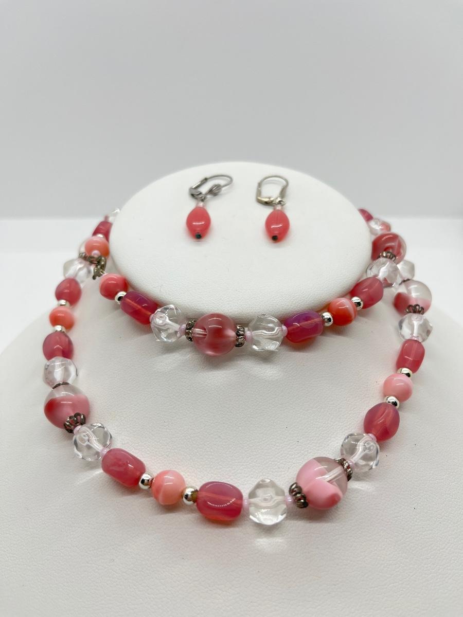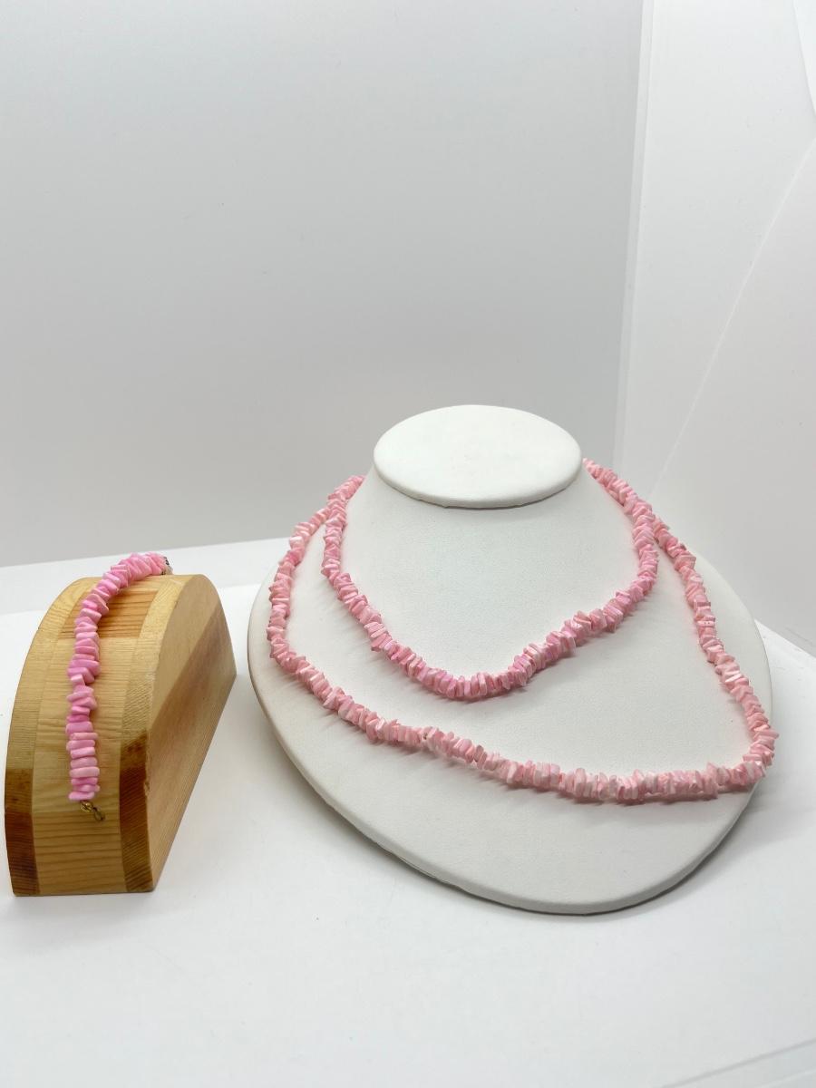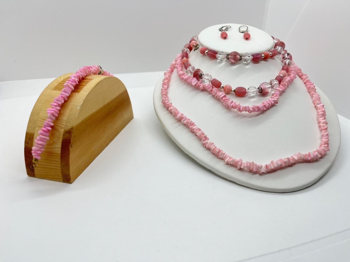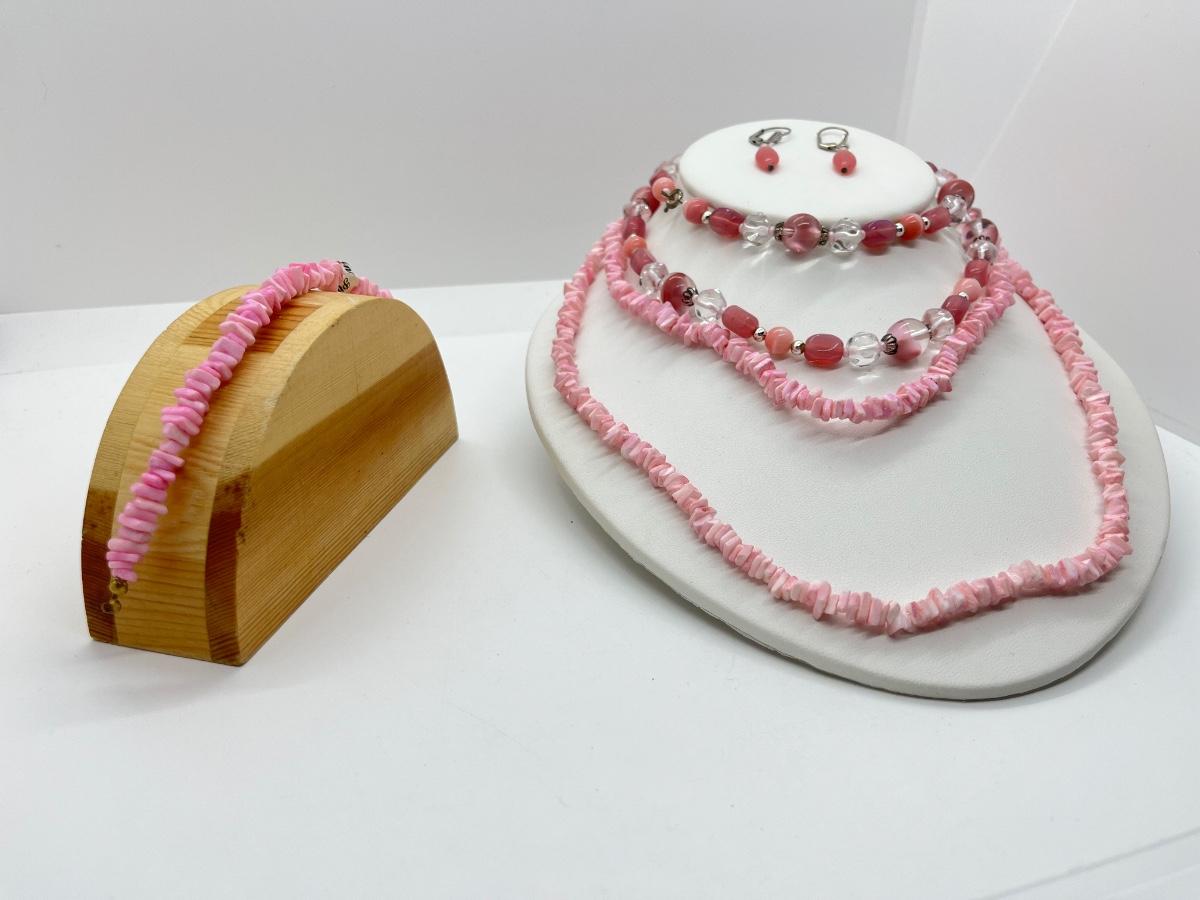 LOT 8: Two Shell Necklaces + Matching Bracelet - One Pink Beaded Necklace + Matching Earrings