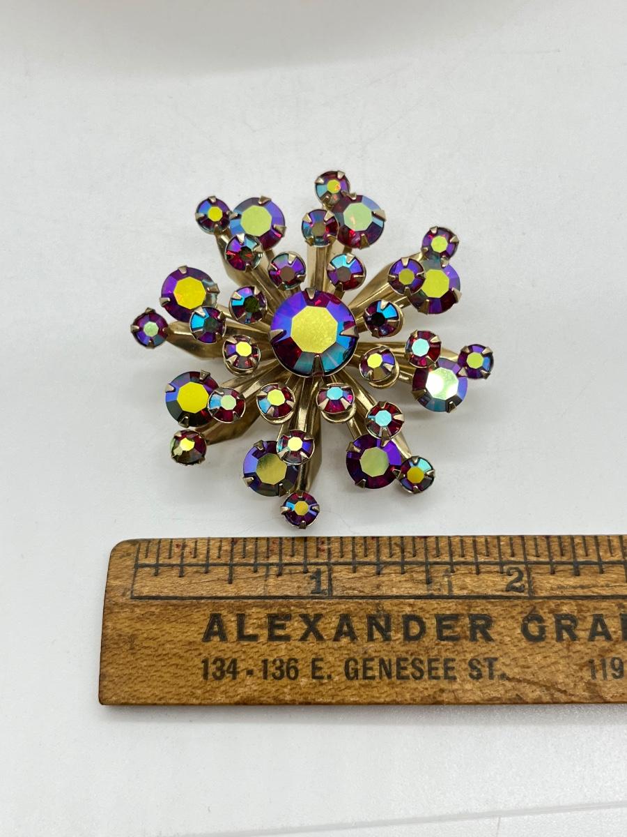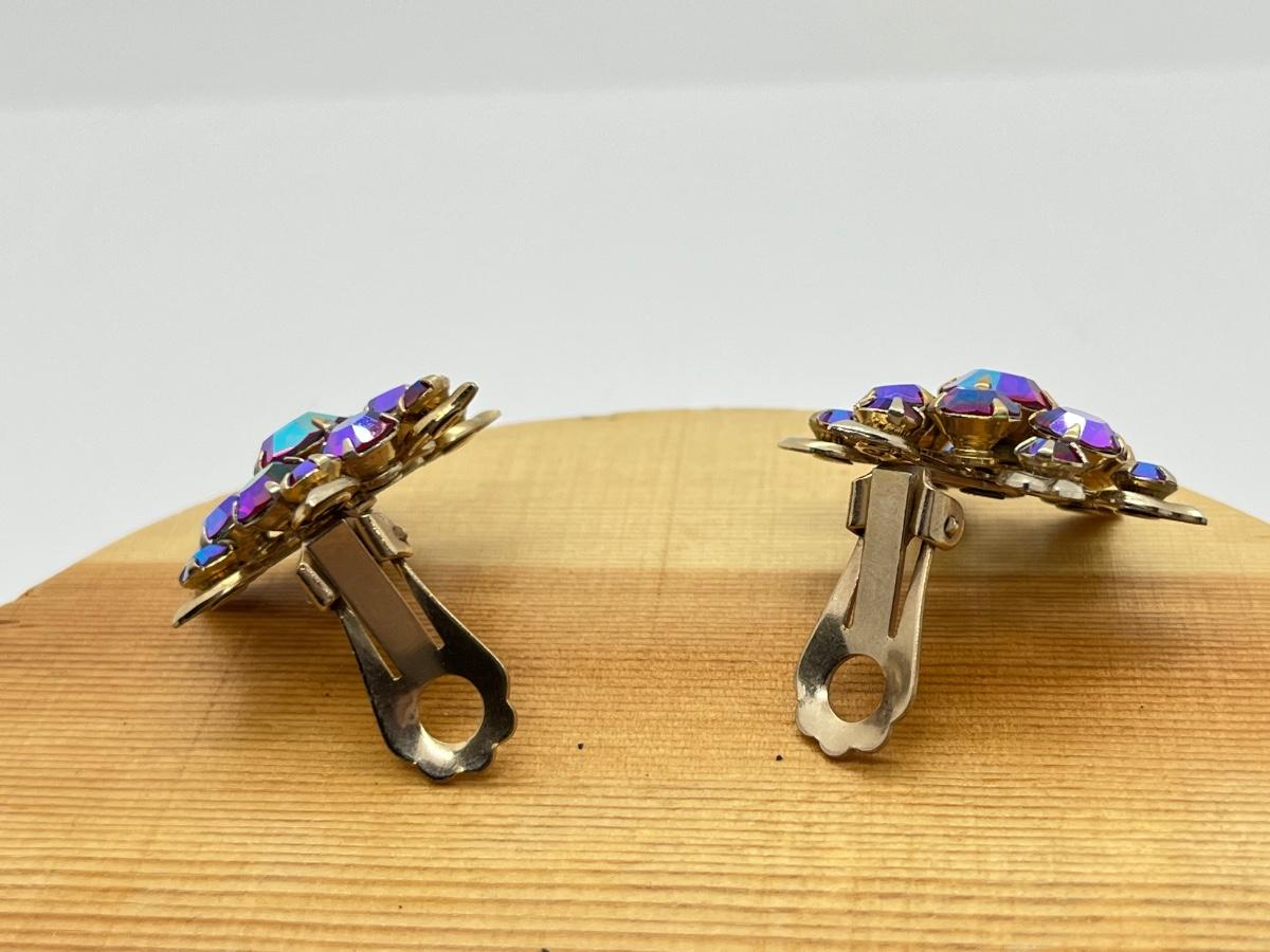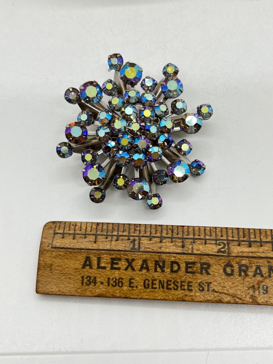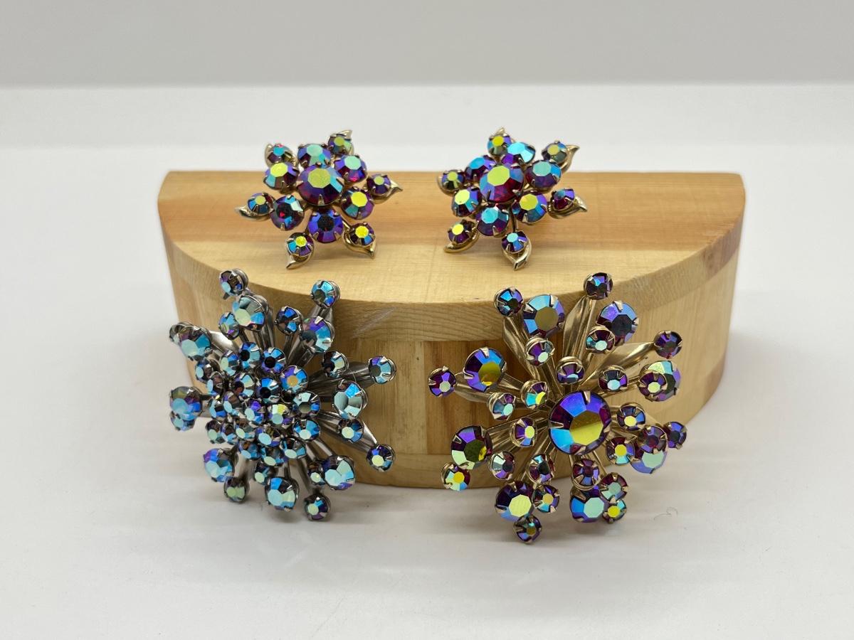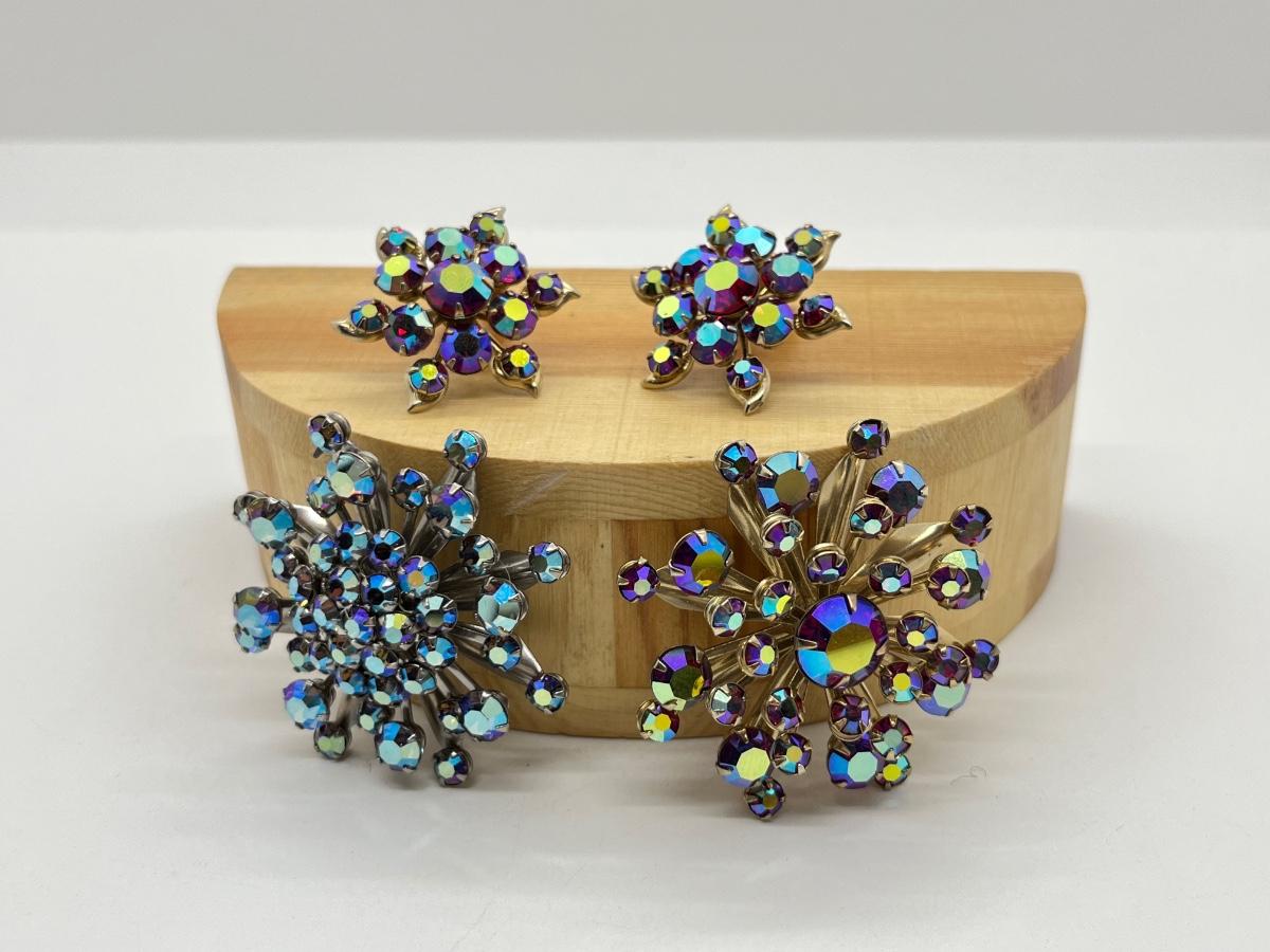 LOT 12: Vintage Two Crystal Pins + Matching Clip On Earrings