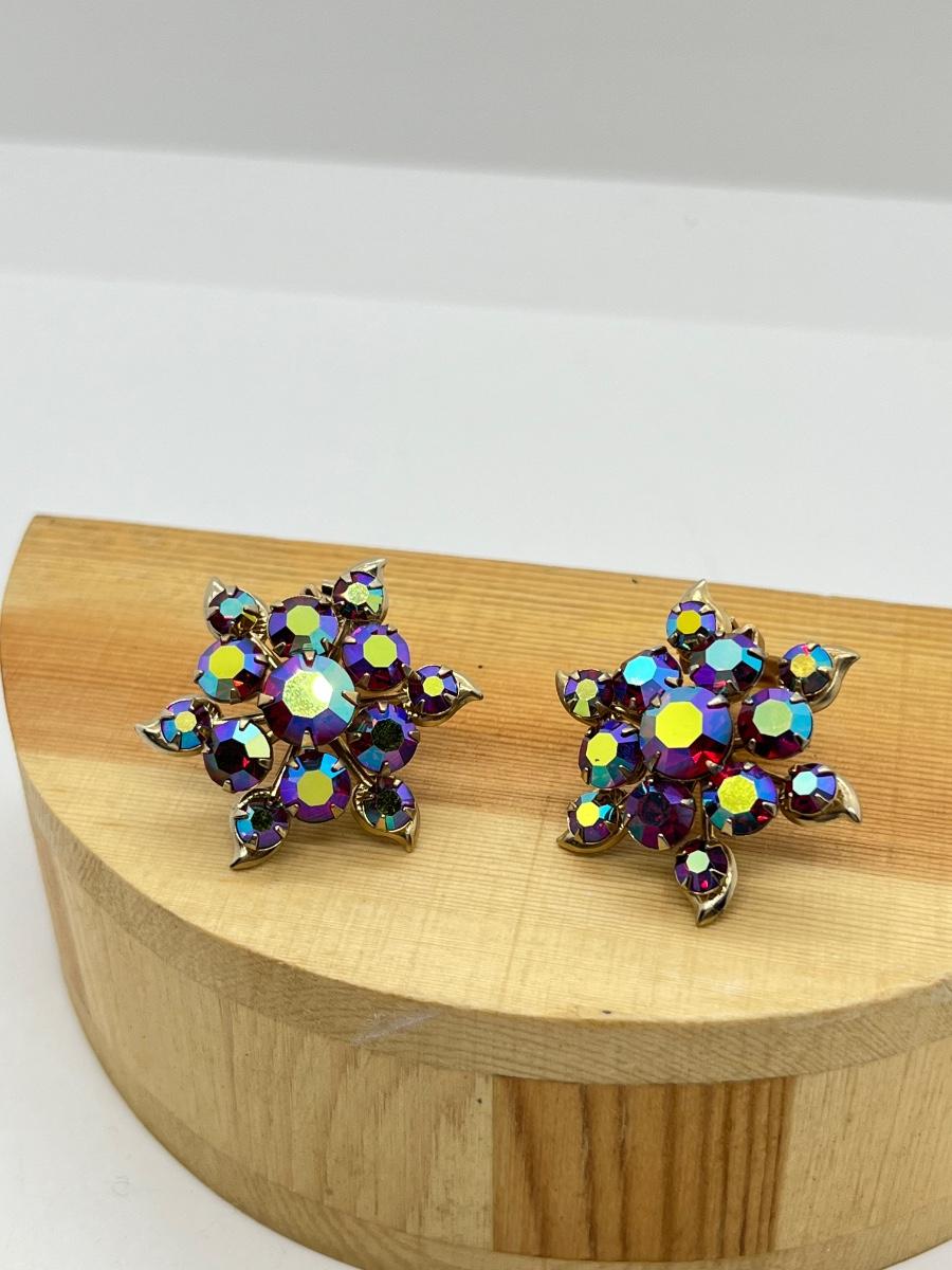 LOT 12:  Vintage Two Crystal Pins + Matching Clip On Earrings