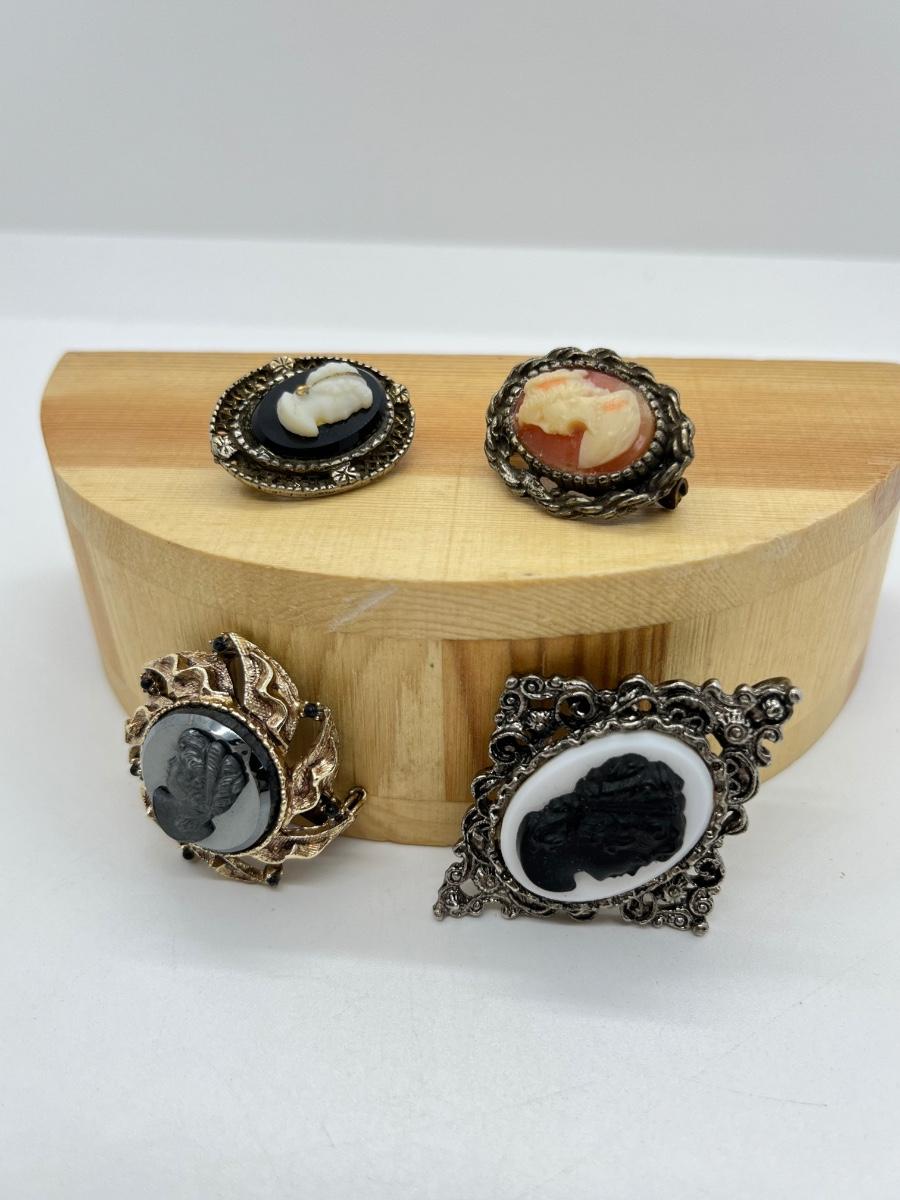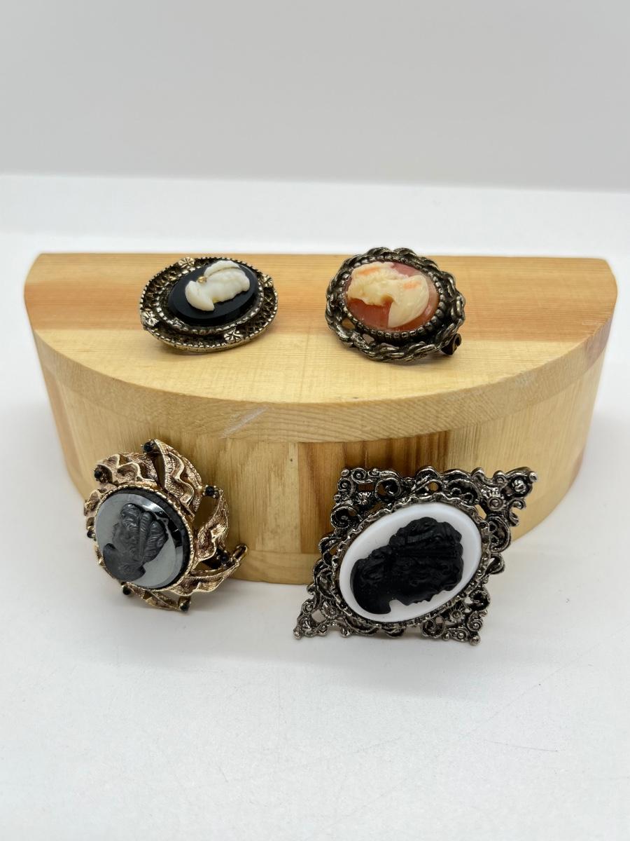 LOT 13: Four Vintage Cameo Pin/Brooches