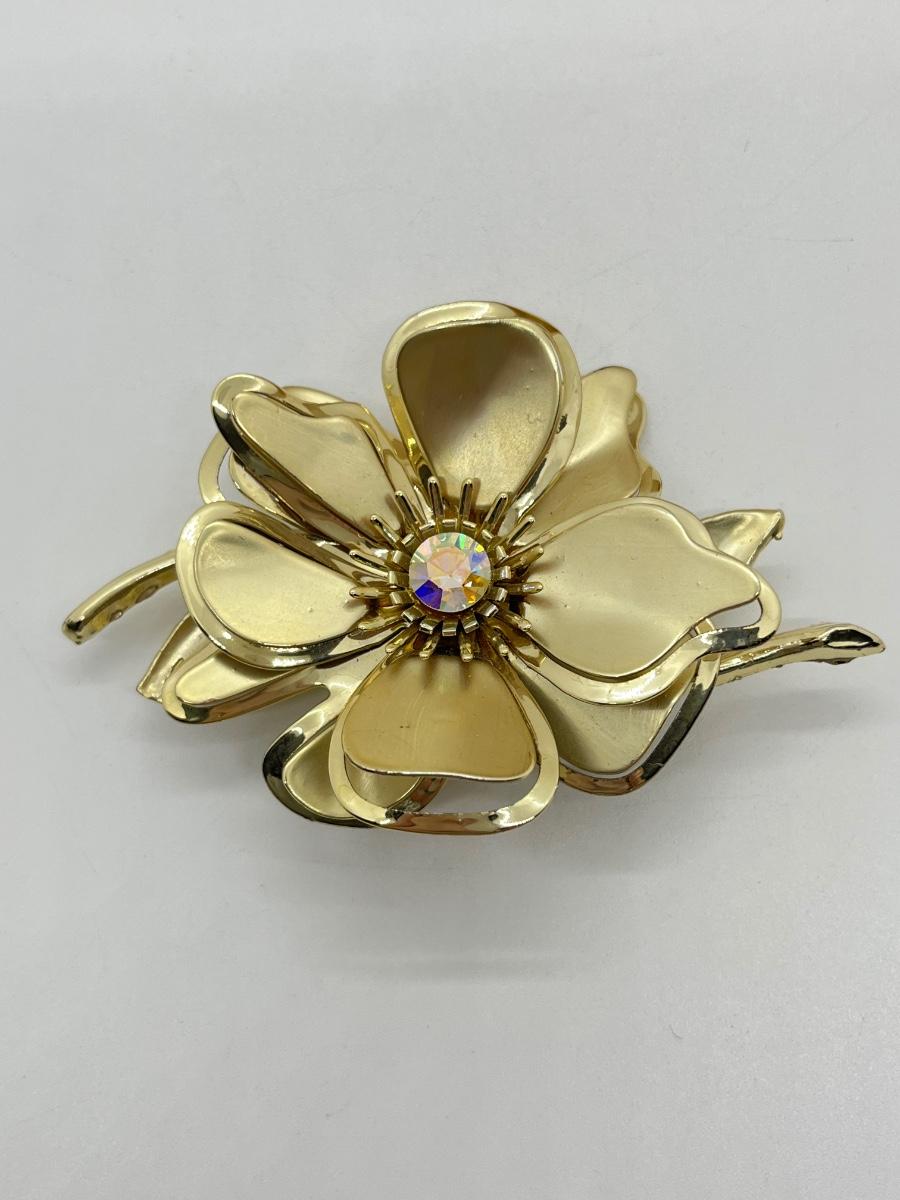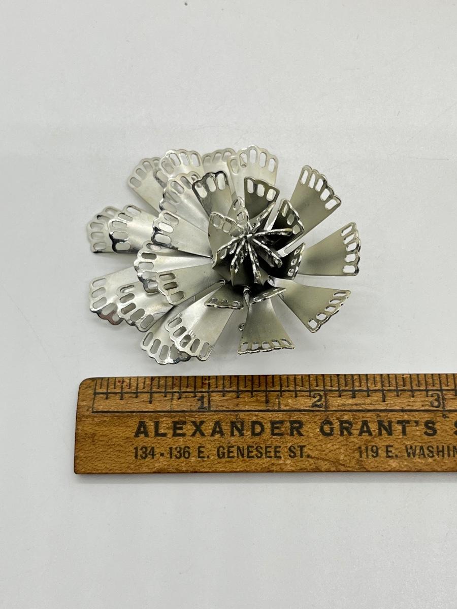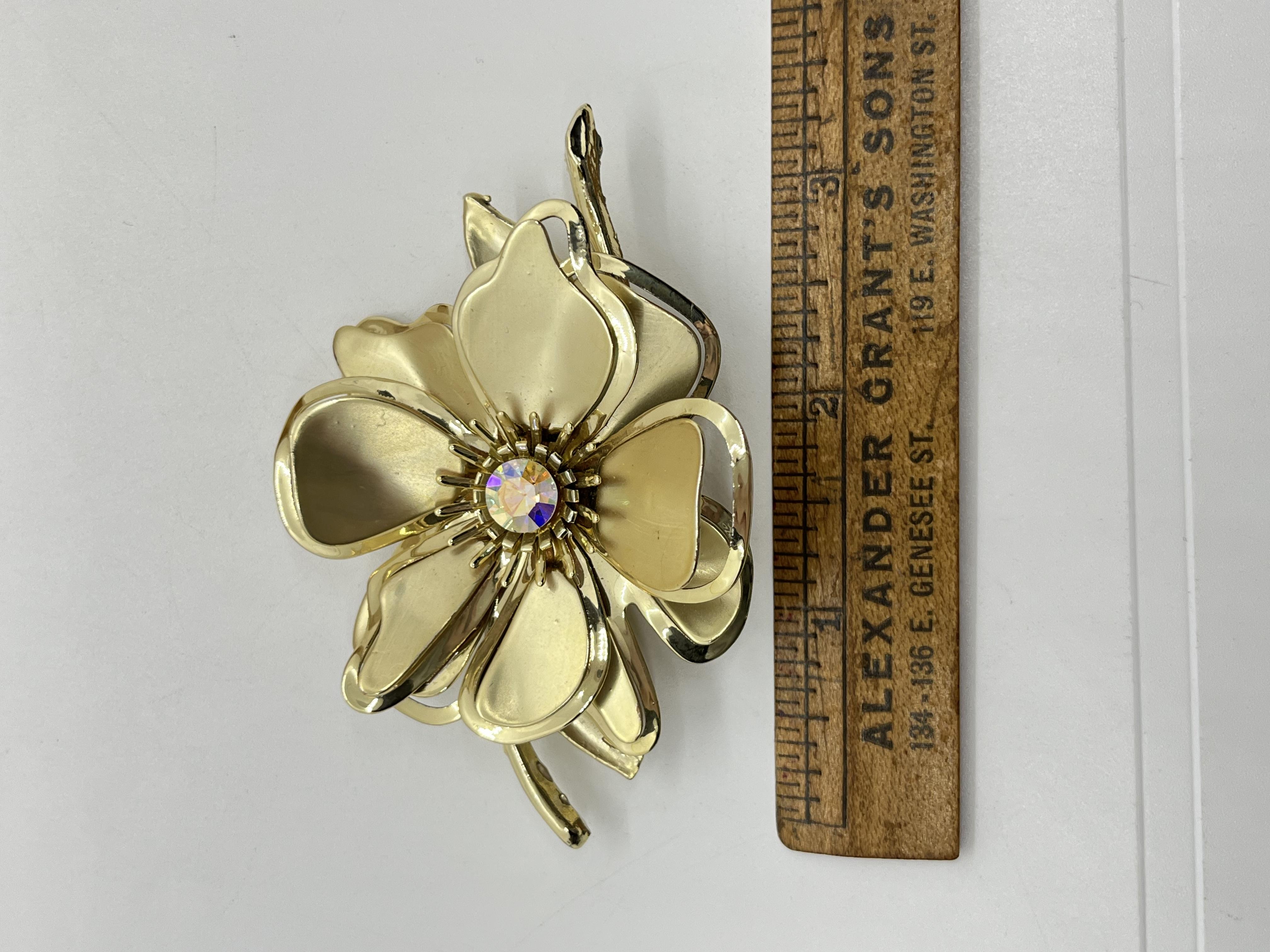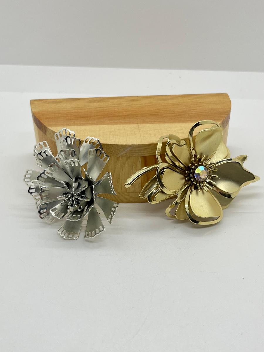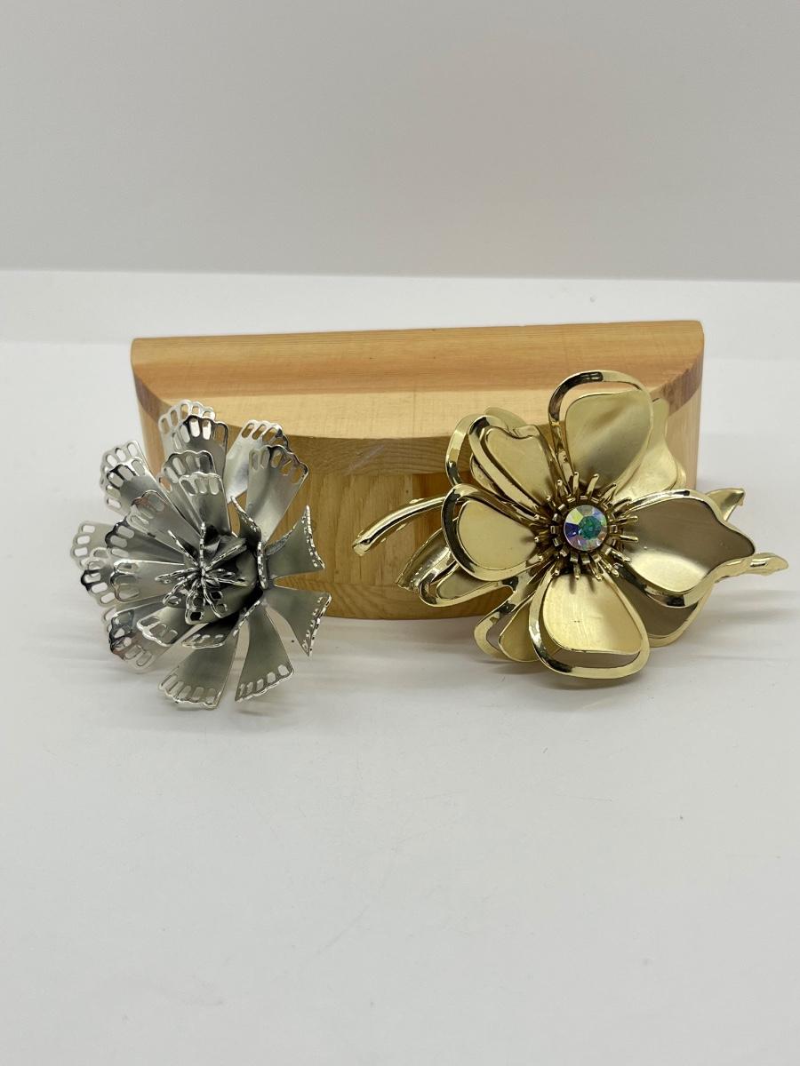 LOT 14: One Coro Signed Silvertone Flower Pin - One Unsigned Goldtone Flower Pin