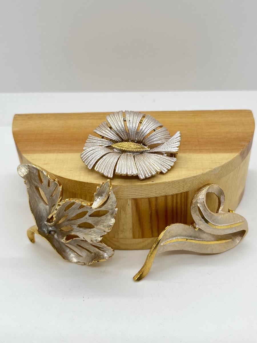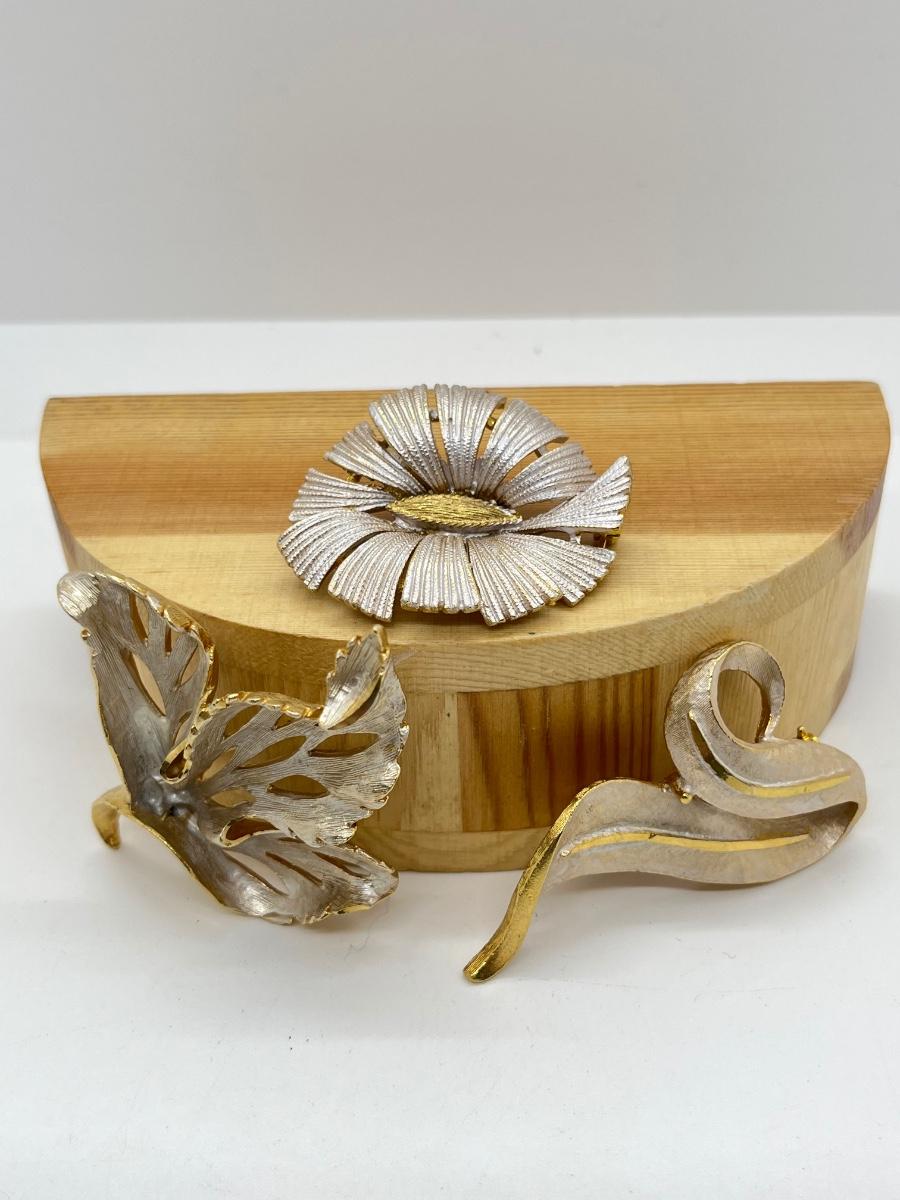 LOT 23: Three Large Vintage Frosted Leaf Brooches