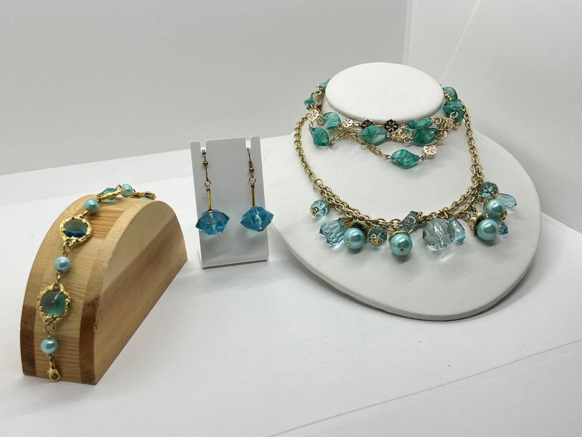 LOT 34: Four Piece Beaded Costume Jewelry Set