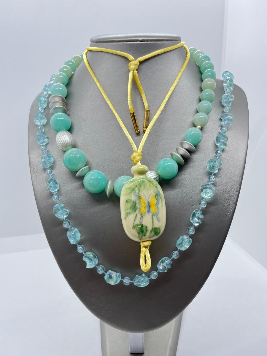 LOT 37: Two Plastic Necklaces - One Glass Pendant Necklace
