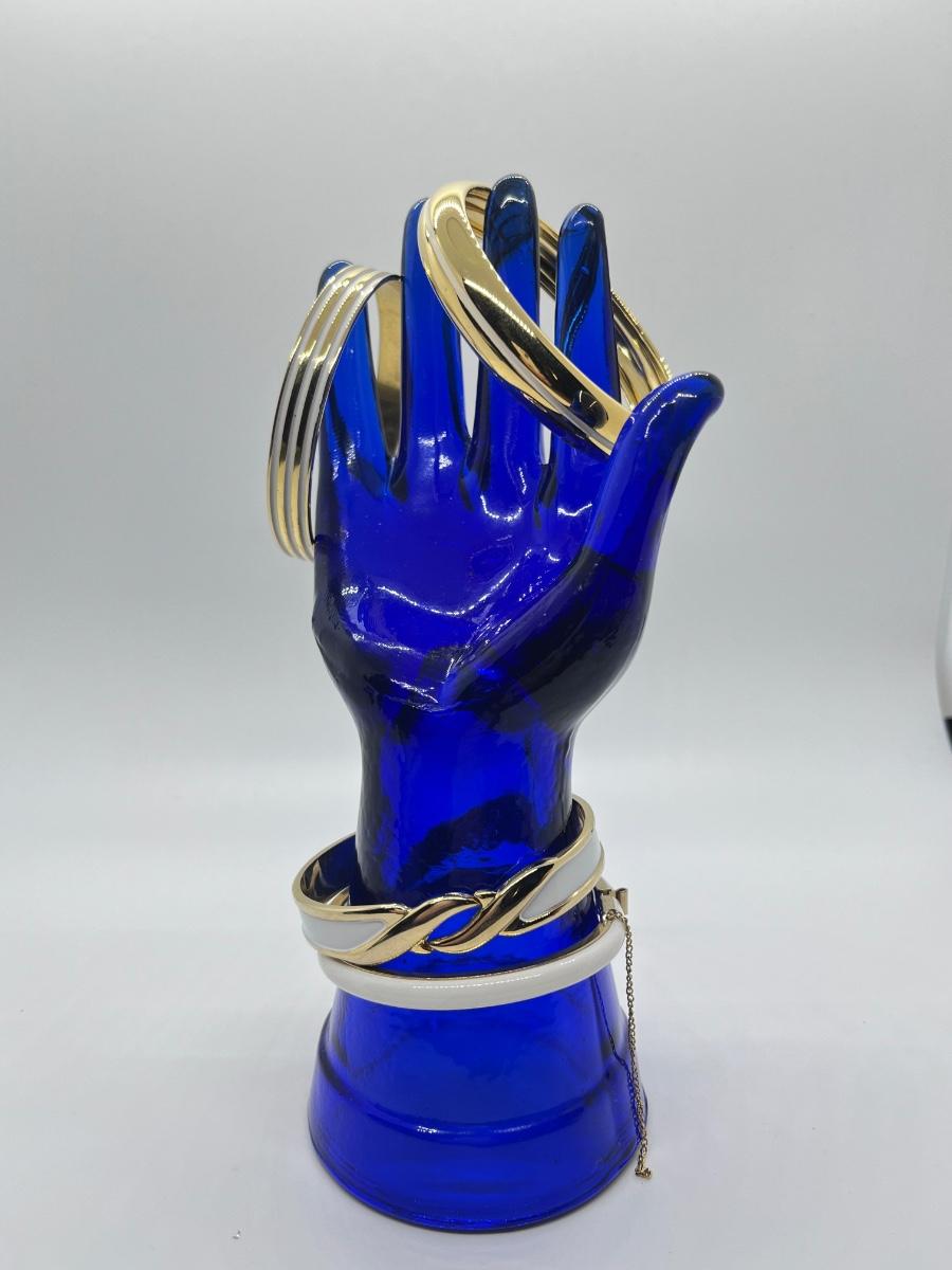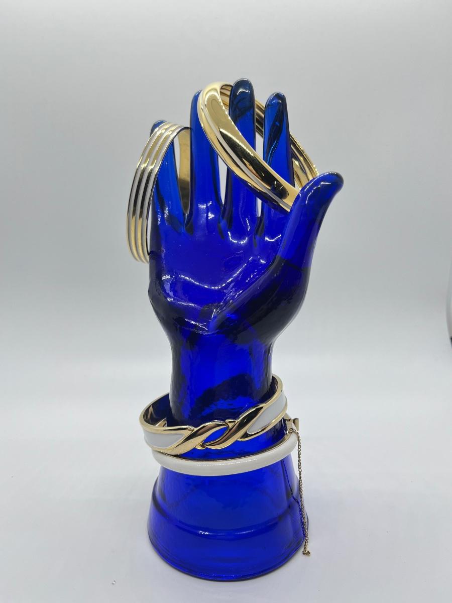 LOT 49: Four Gold/white Bangle Bracelets, 2 are hinged