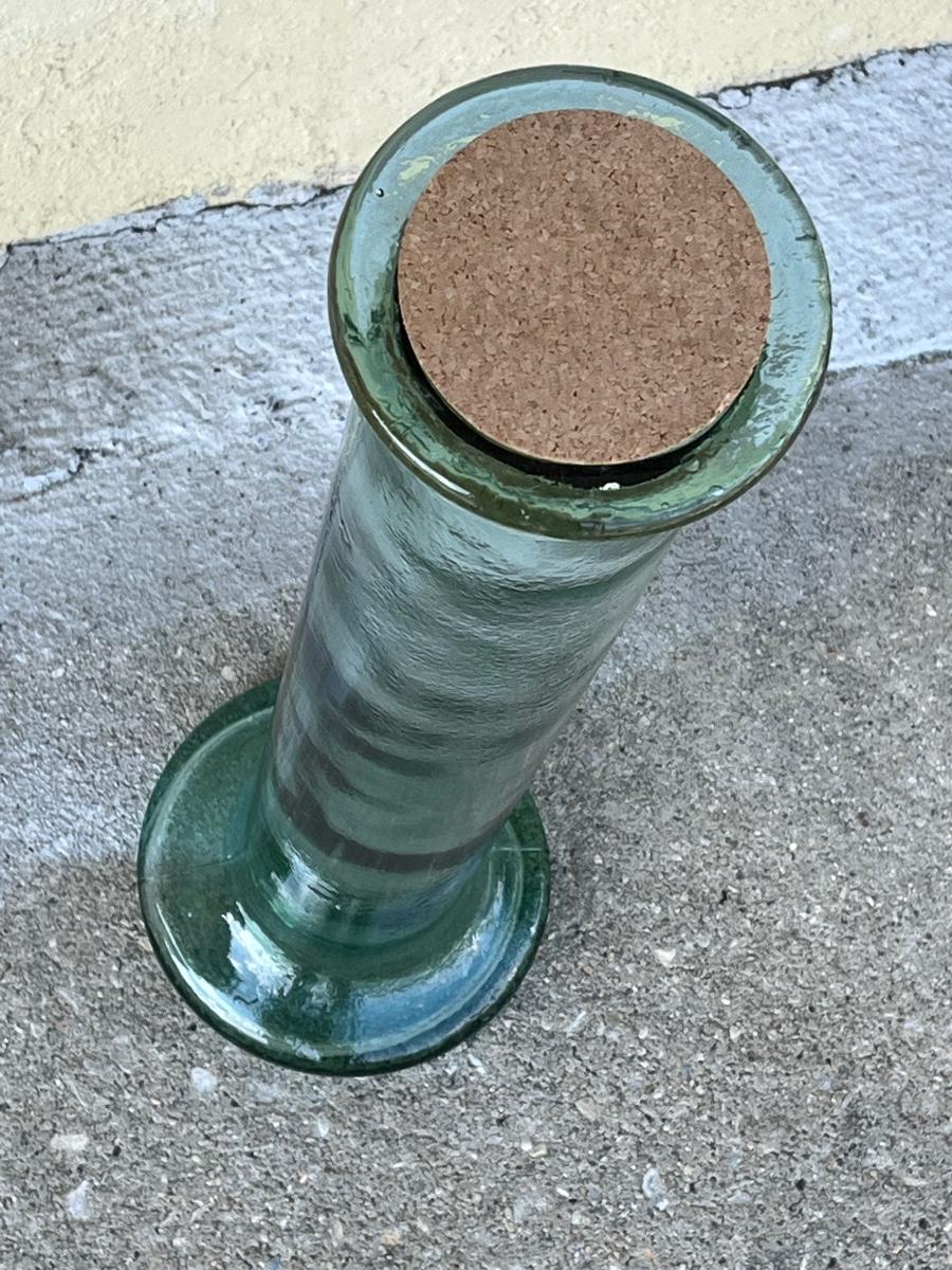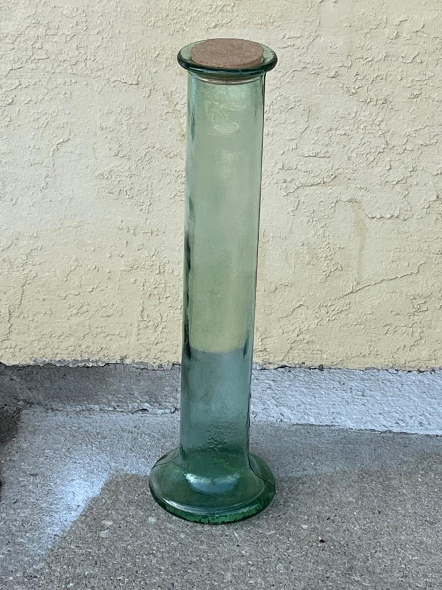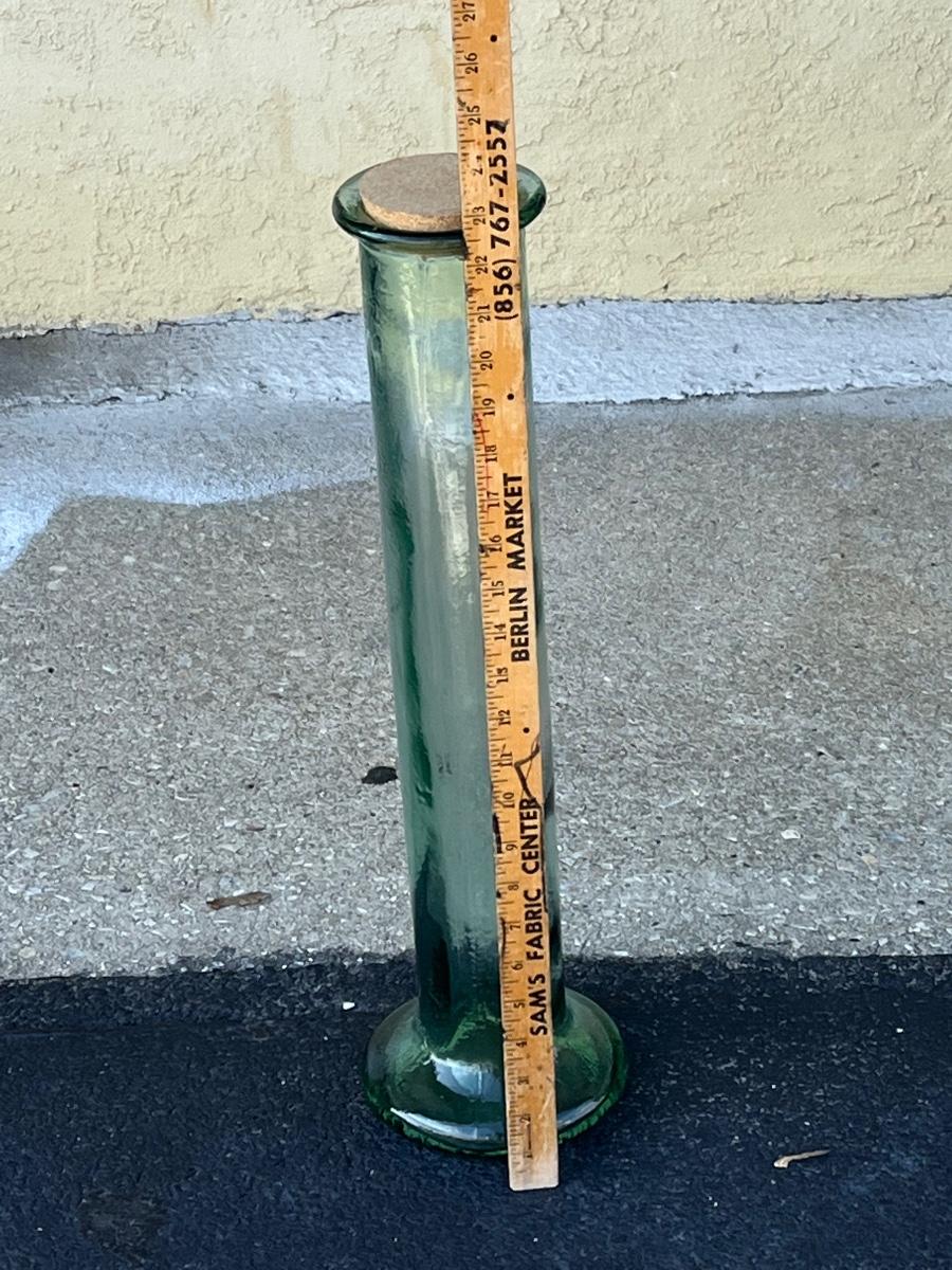LOT 51: Tall Green Glass Bank / Vase with Cork Stopper - 22"