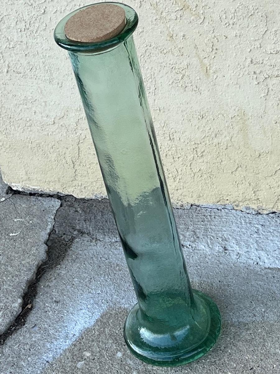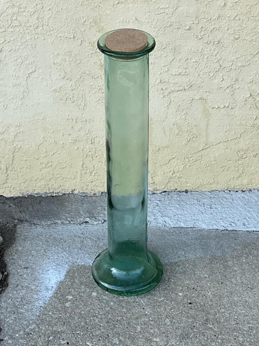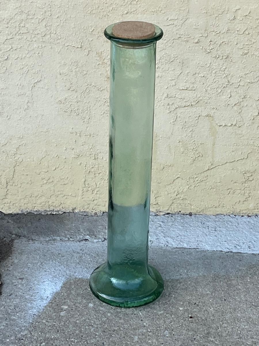 LOT 51: Tall Green Glass Bank / Vase with Cork Stopper - 22"
