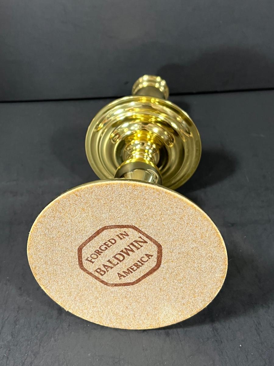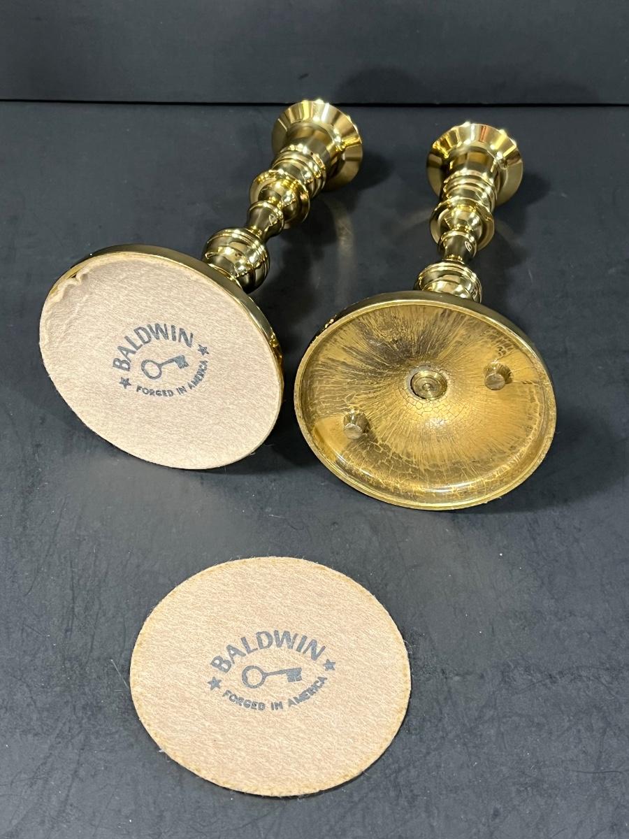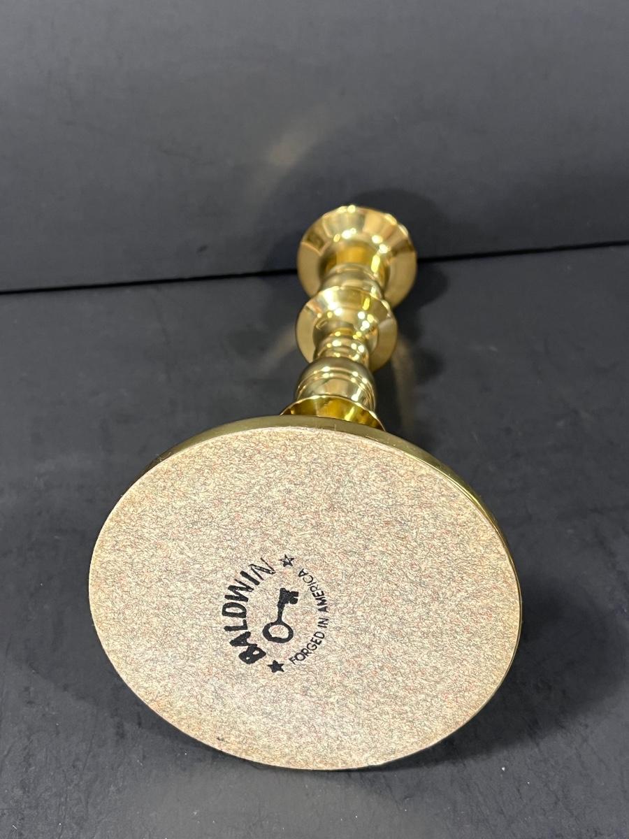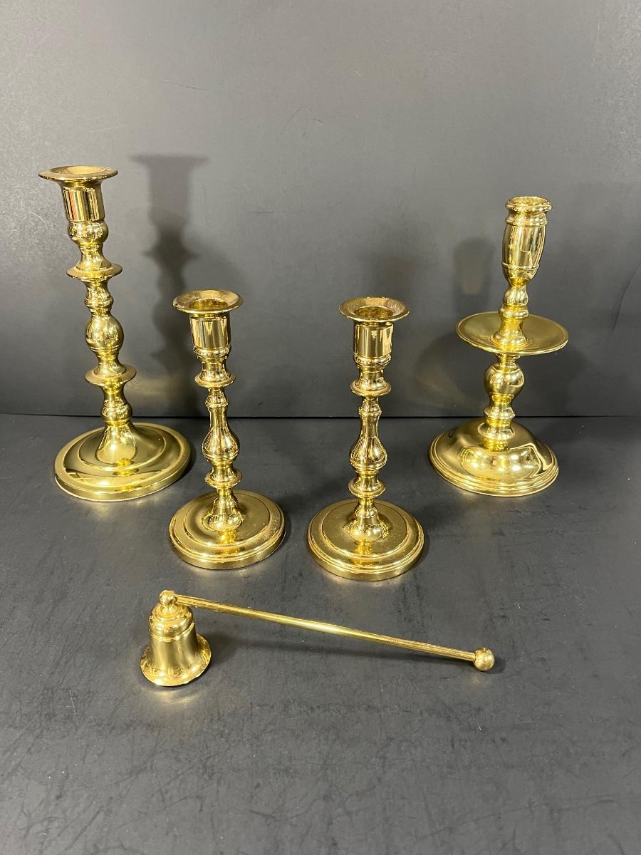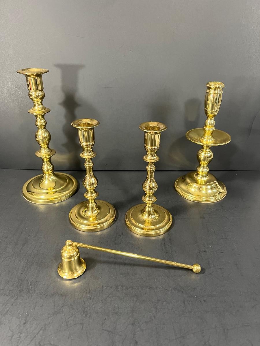 LOT 59: Lot of 4 Baldwin Brass Candle Holders & Candle Snuffer