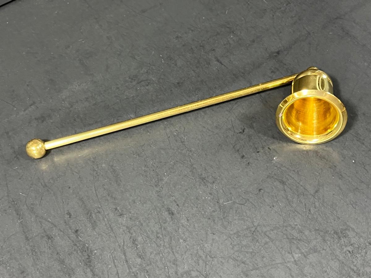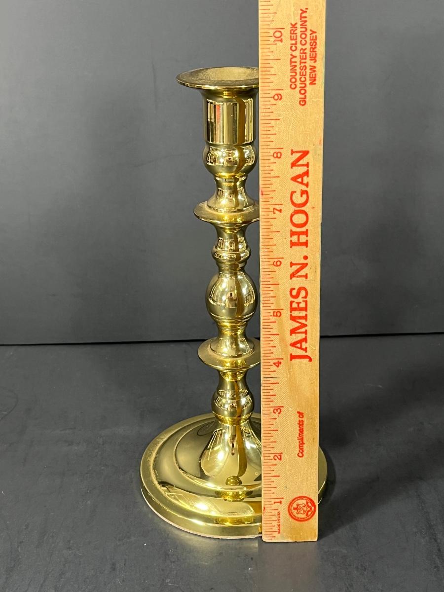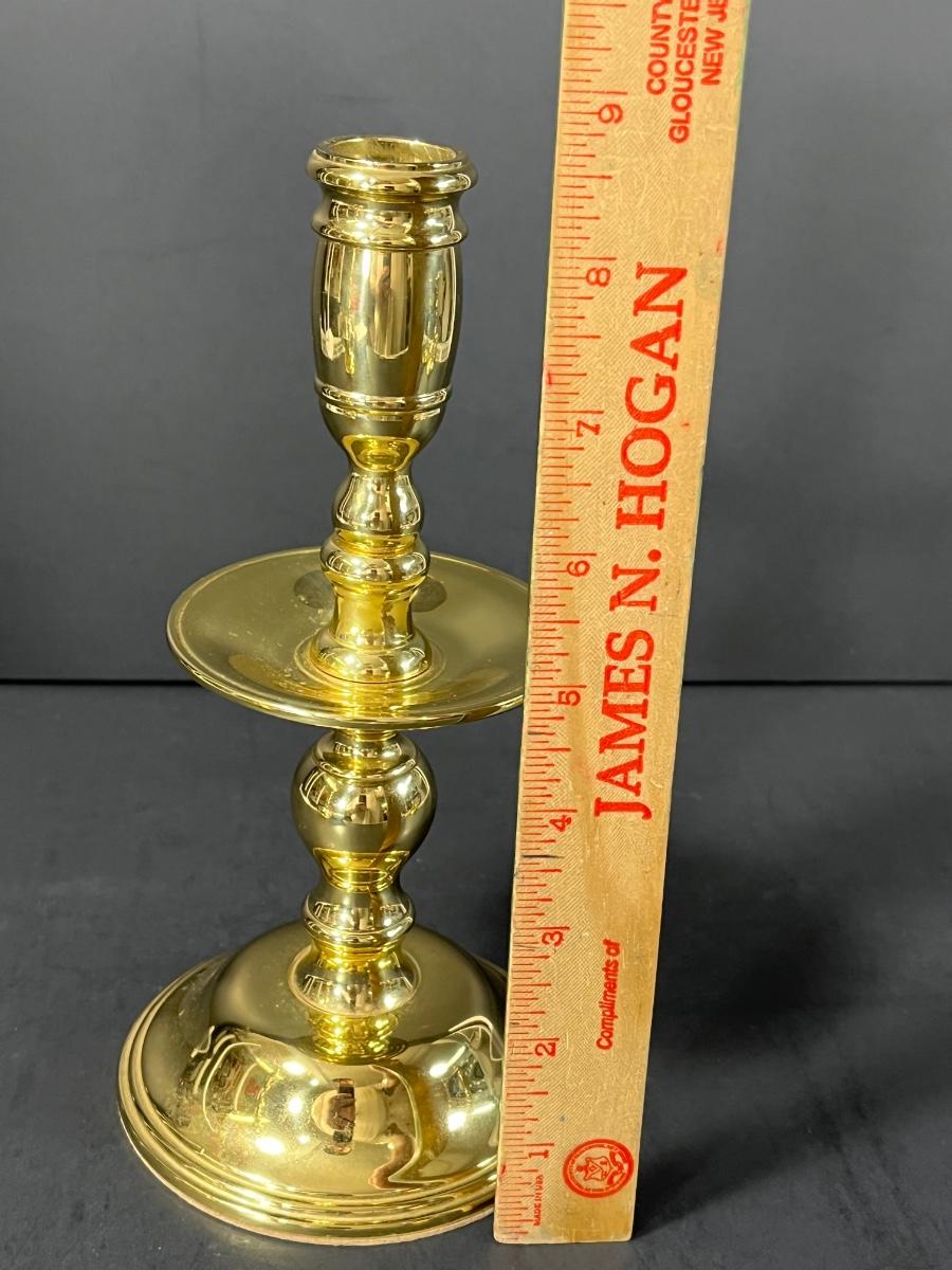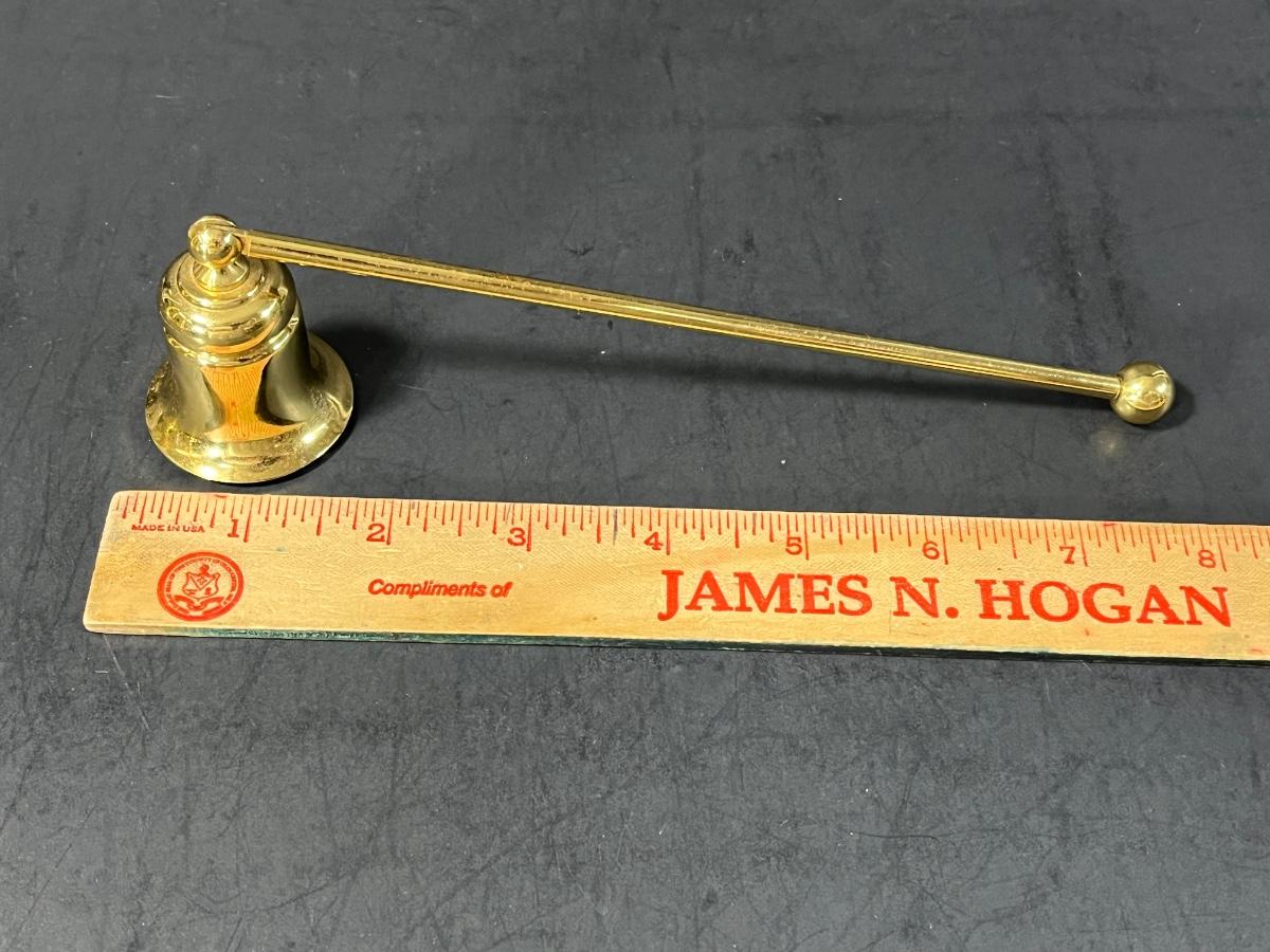 LOT 59: Lot of 4 Baldwin Brass Candle Holders & Candle Snuffer