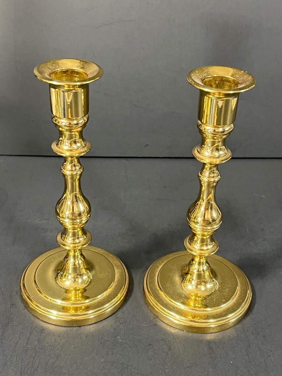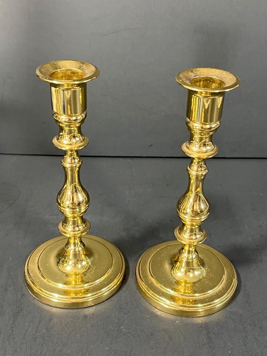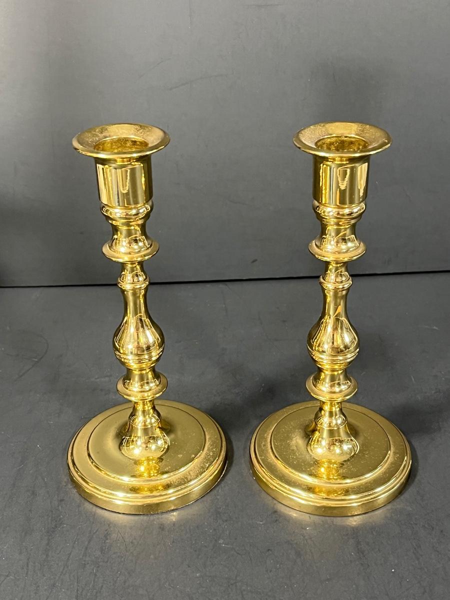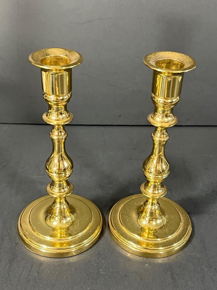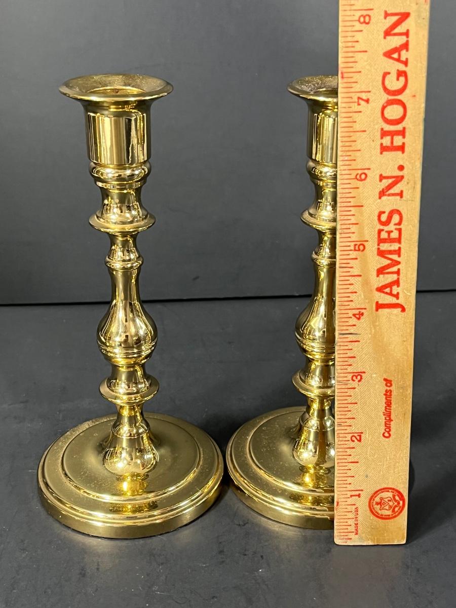 LOT 59: Lot of 4 Baldwin Brass Candle Holders & Candle Snuffer