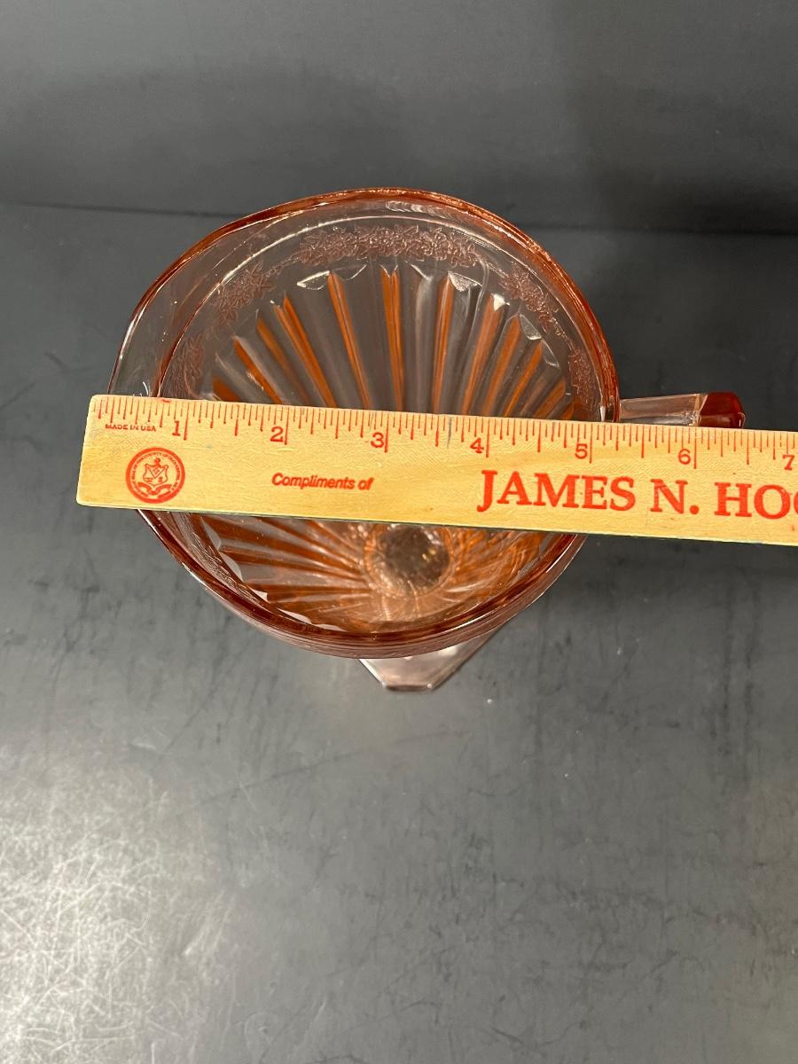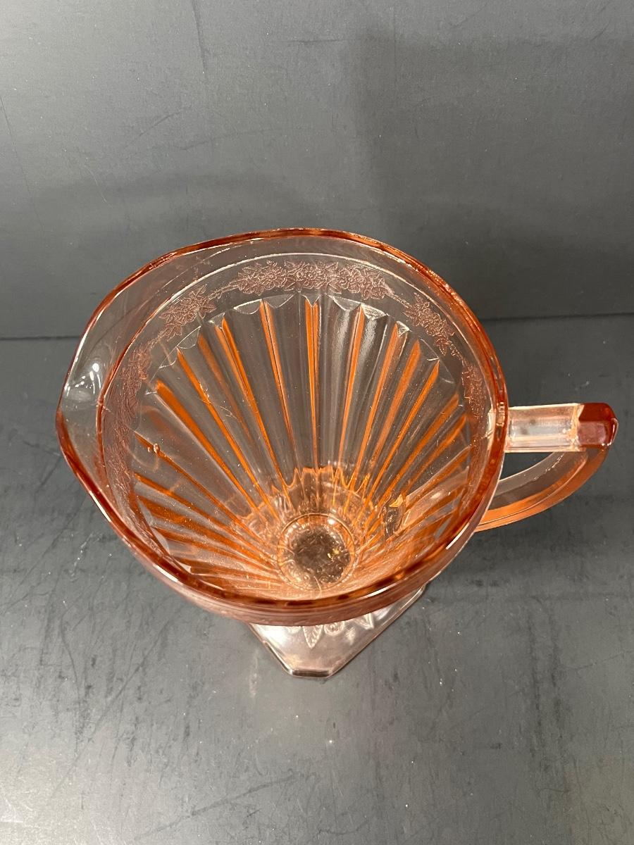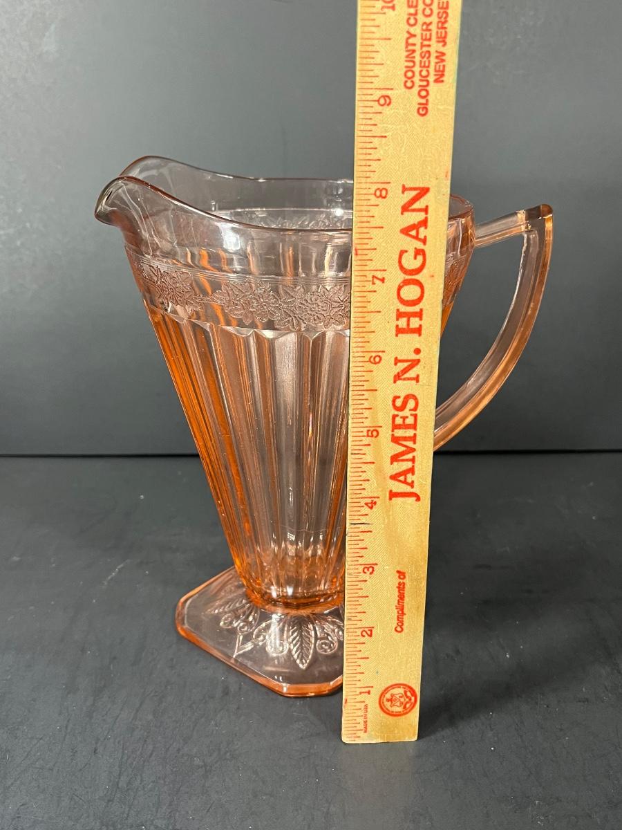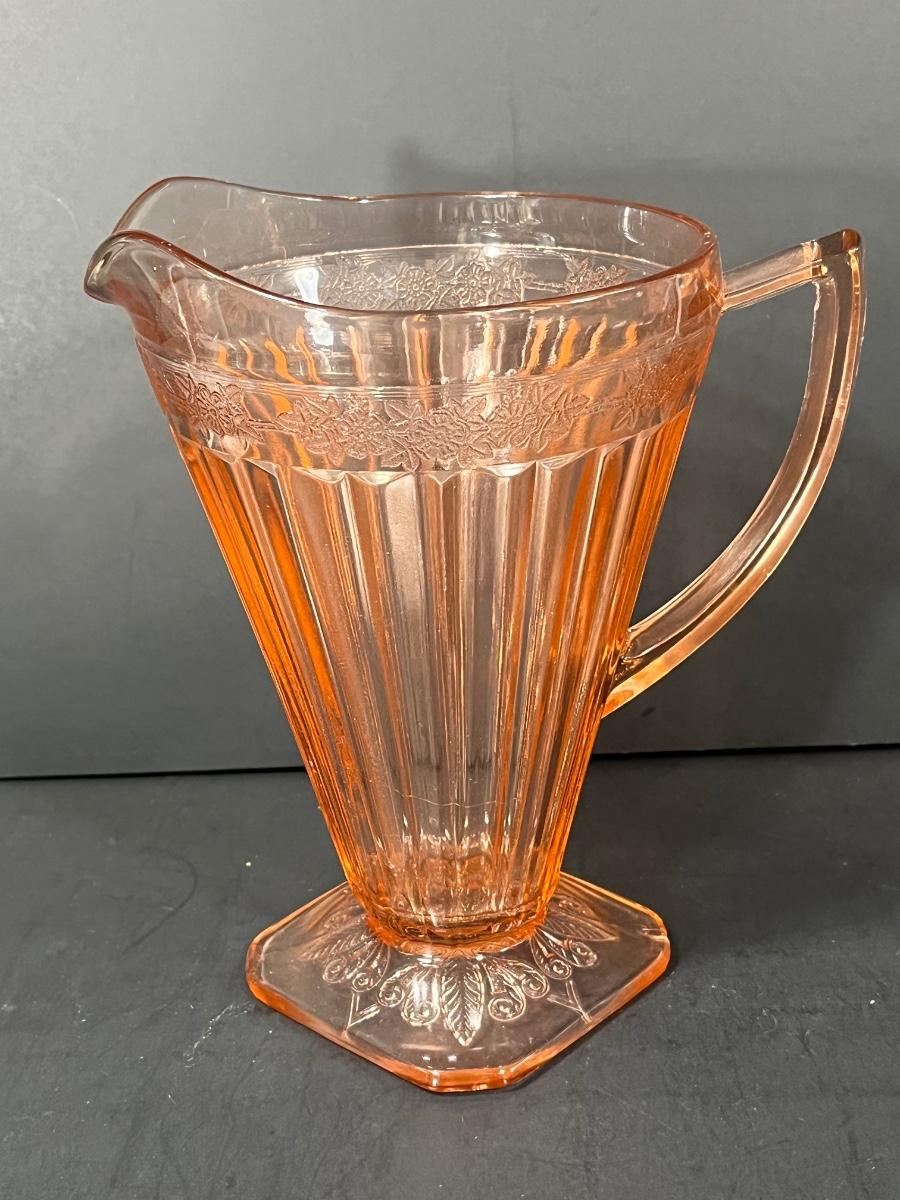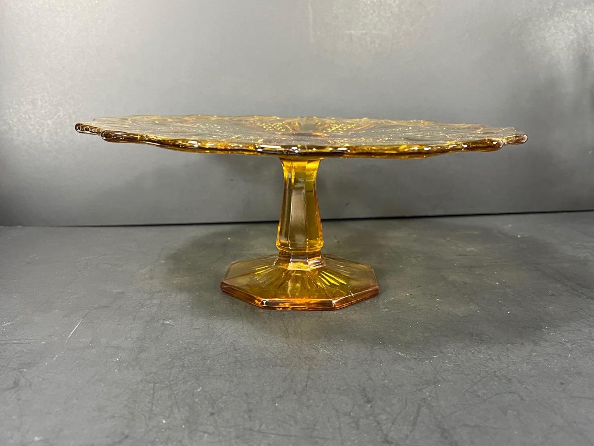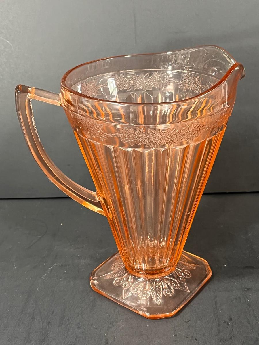 LOT 65: Samobor Crystal Vase + Pink Depression Glass Pitcher & Amber Cake Stand