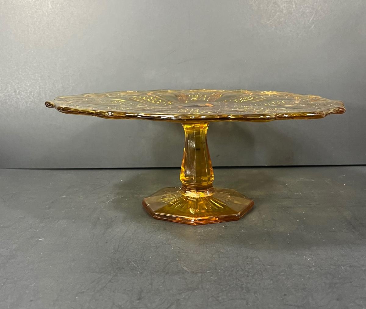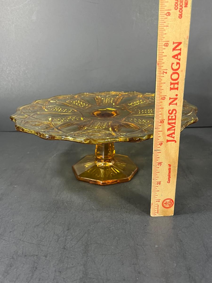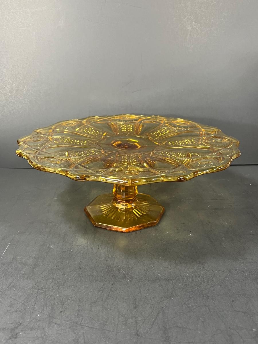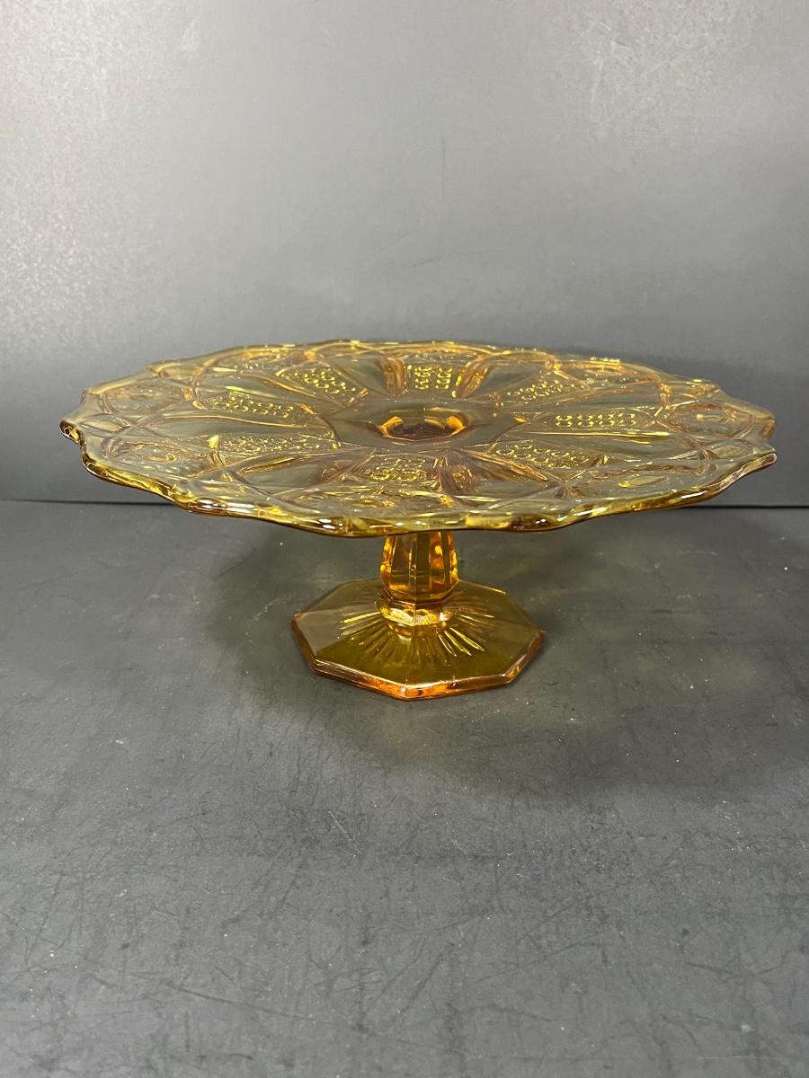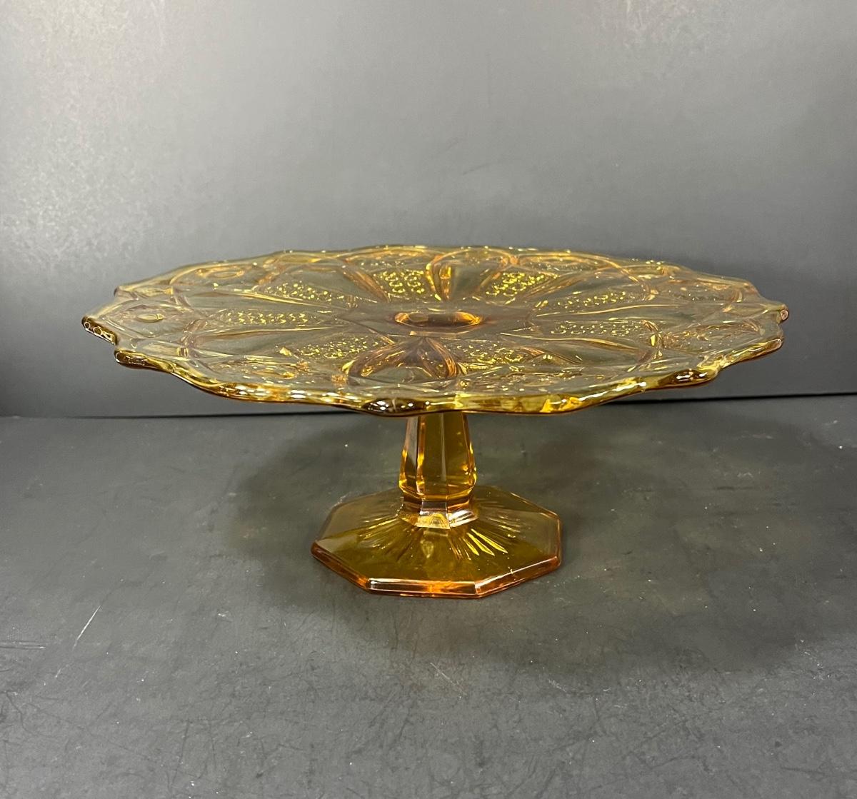 LOT 65: Samobor Crystal Vase + Pink Depression Glass Pitcher & Amber Cake Stand