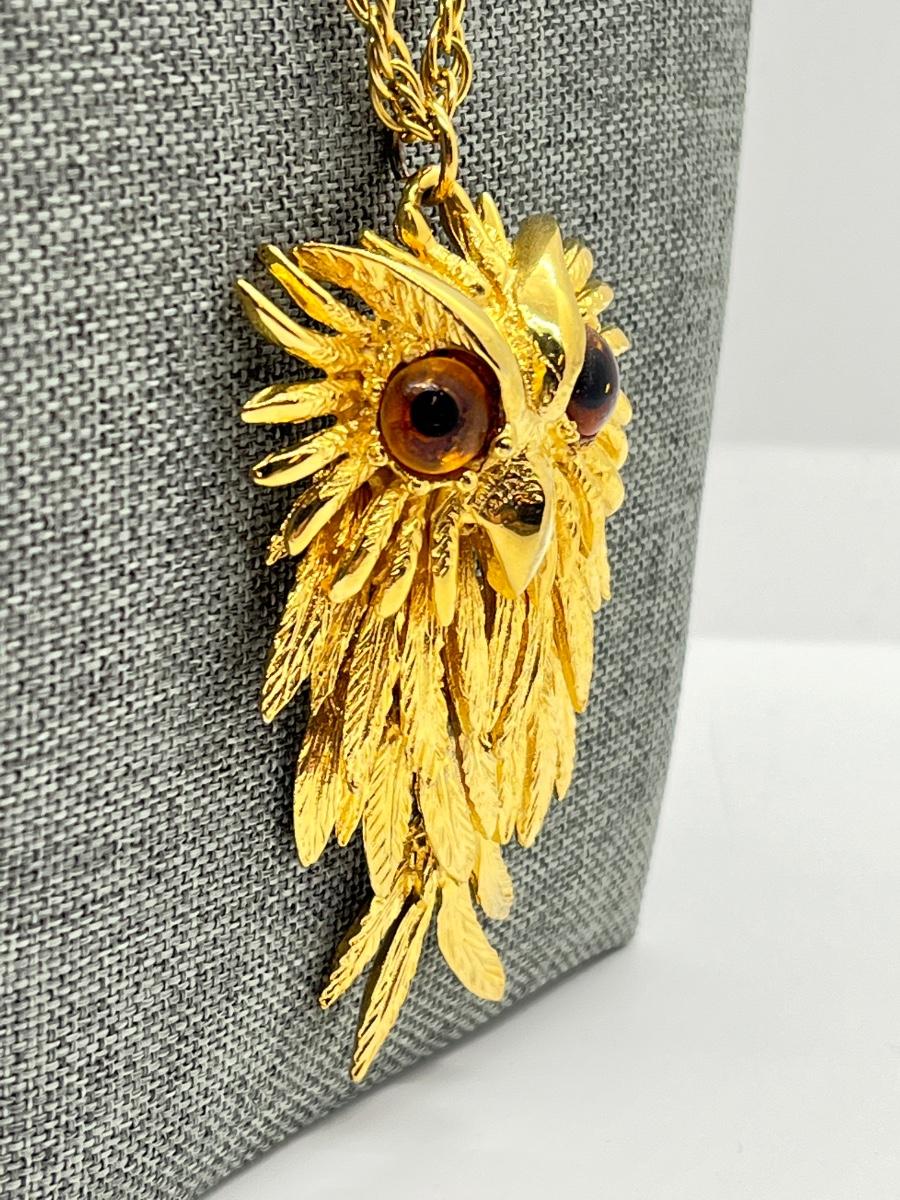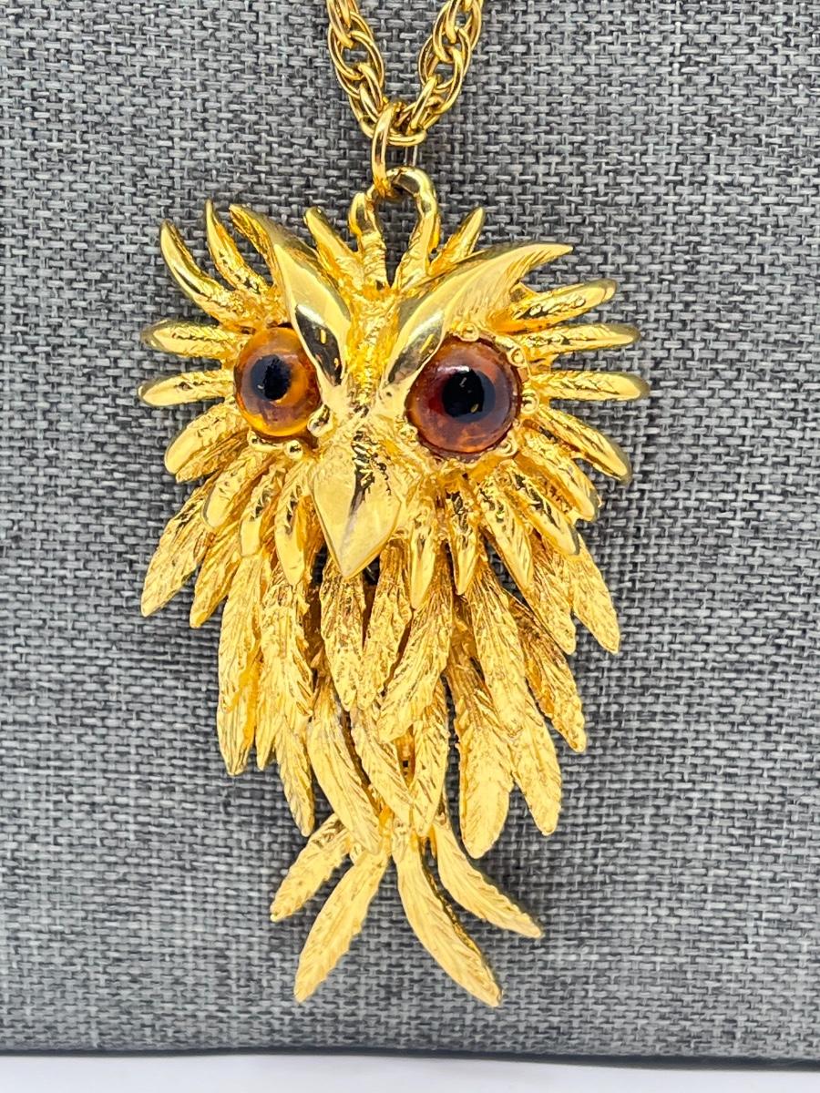 LOT 67: Large Goldtone Owl Pendant  on 30 " Double Chain