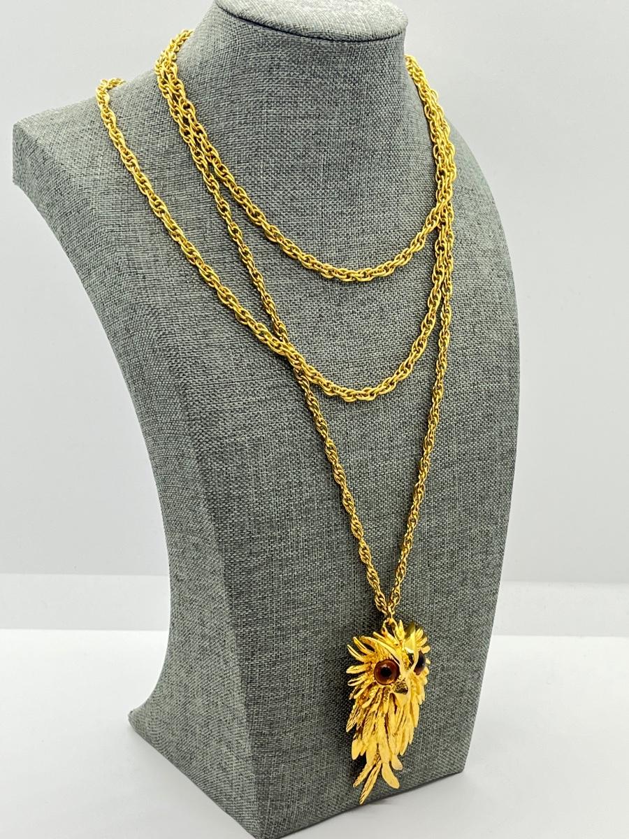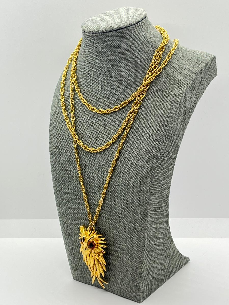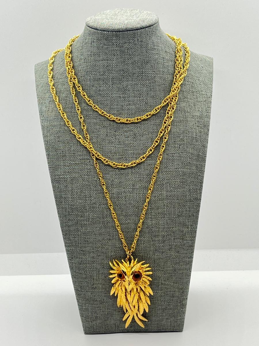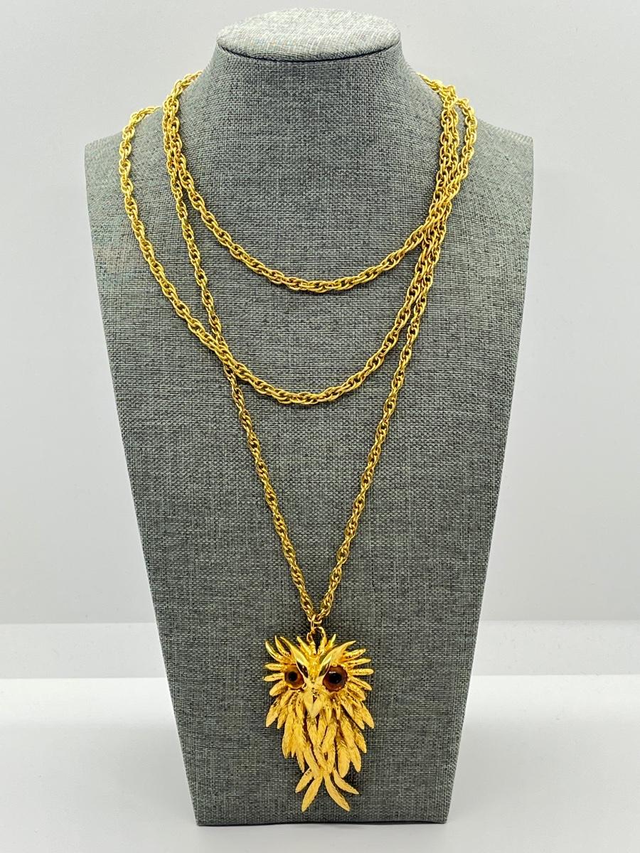 LOT 67: Large Goldtone Owl Pendant on 30 " Double Chain