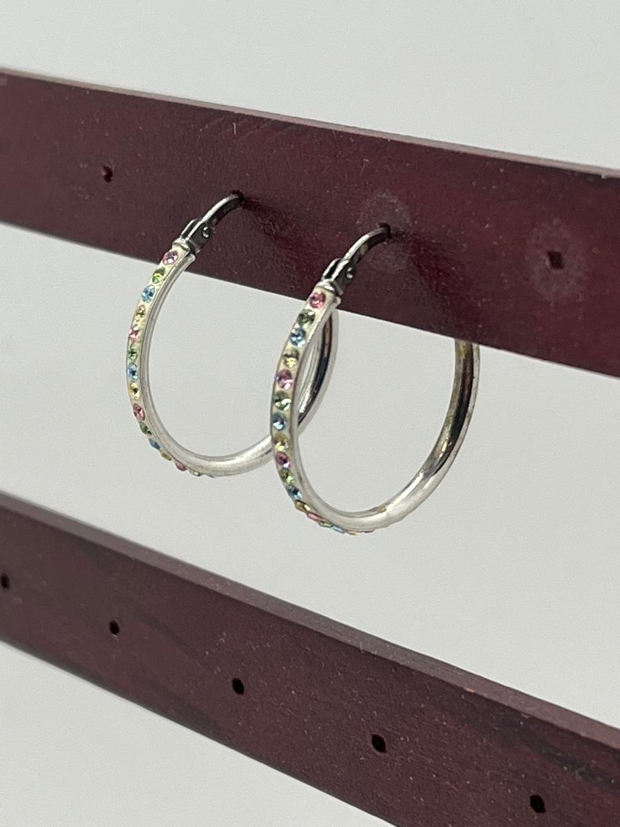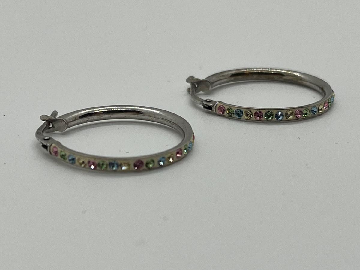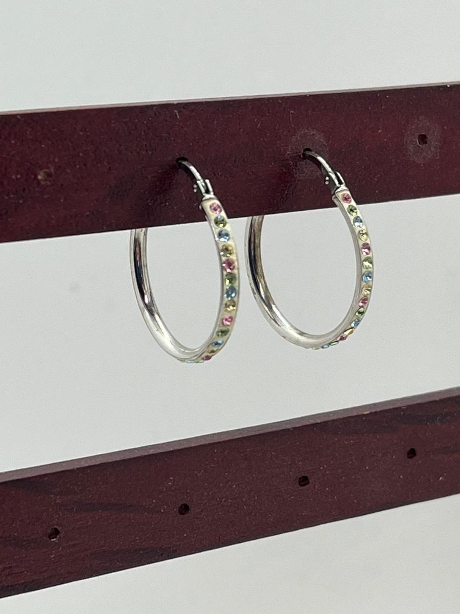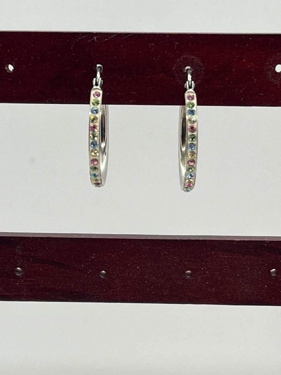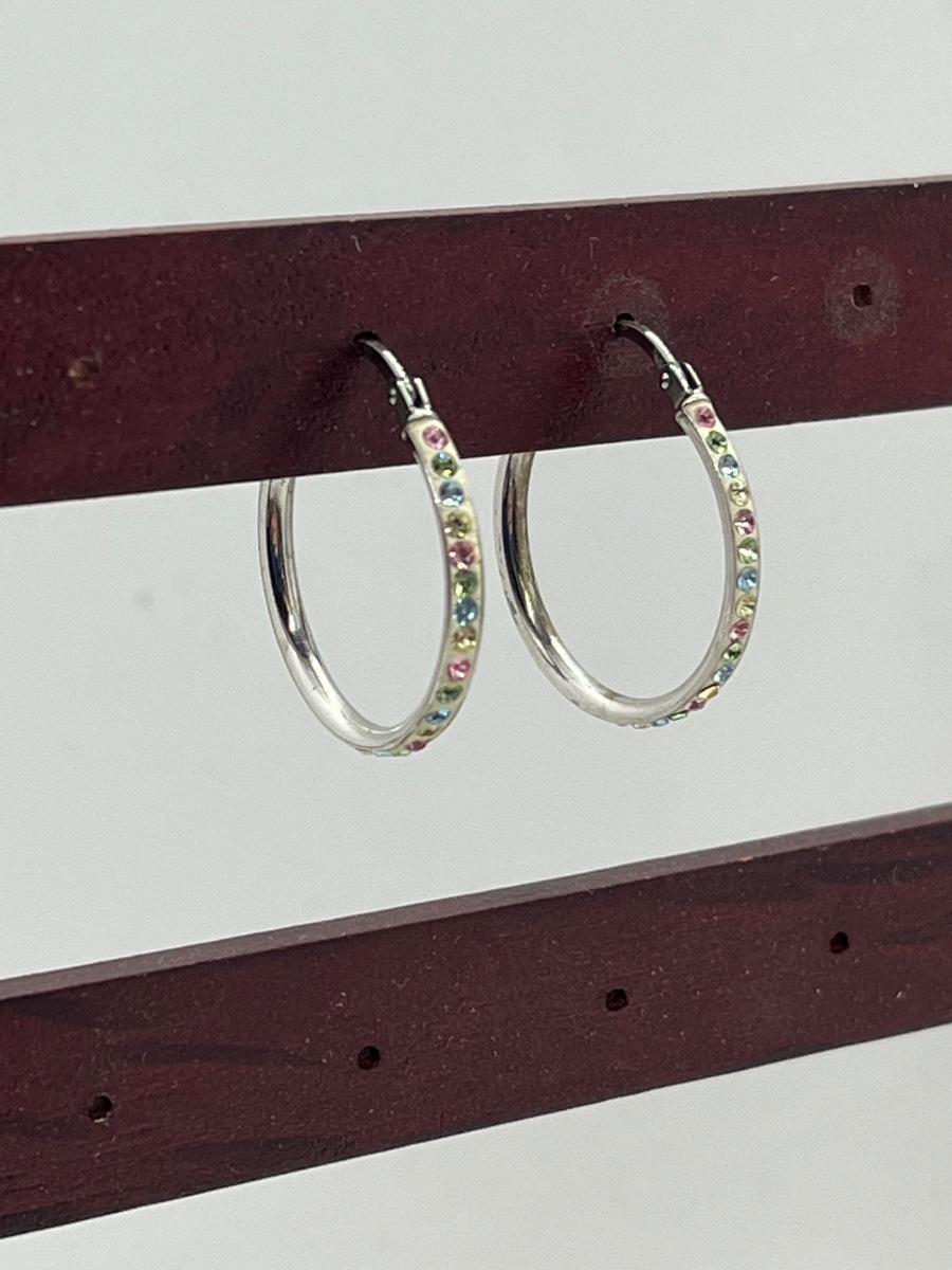 LOT 68: Multi-Color Crystal Small Hoop Pierced Earrings