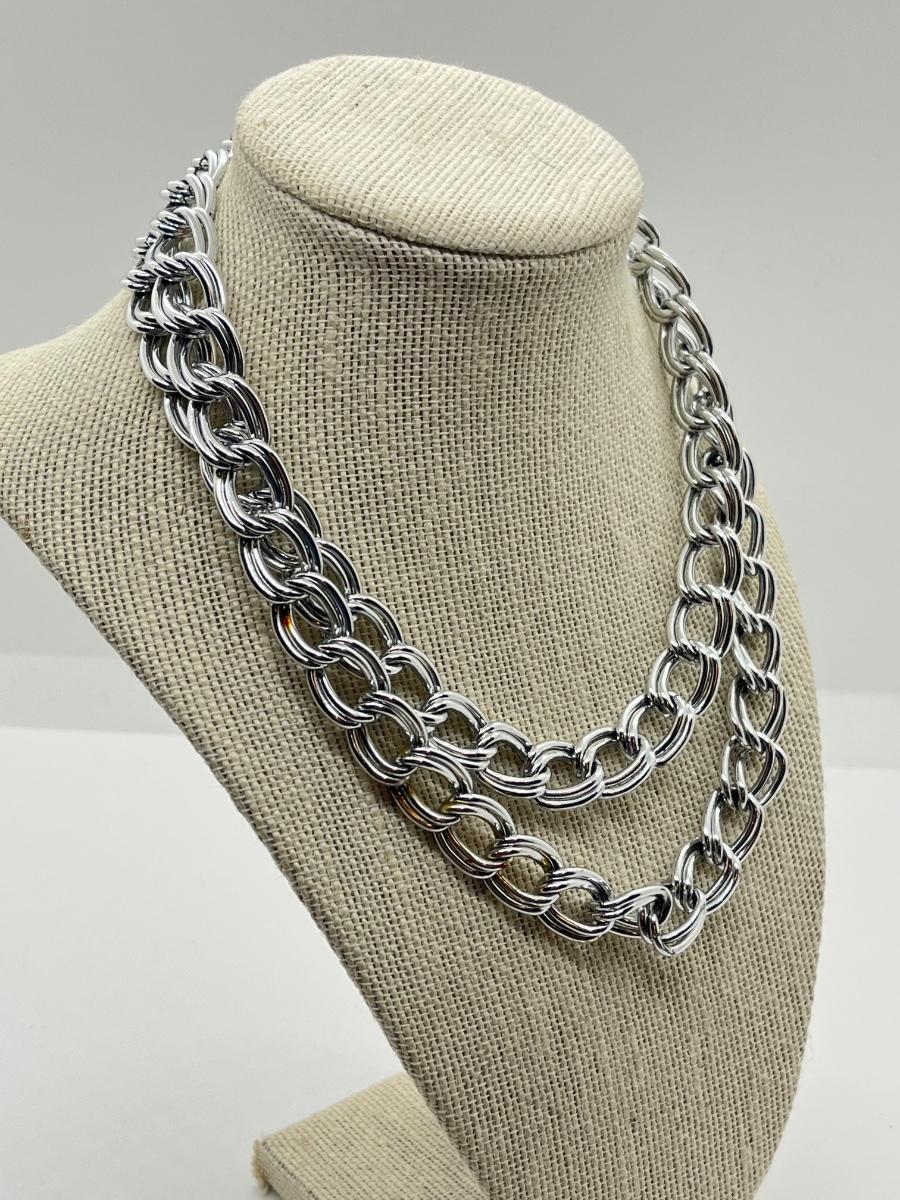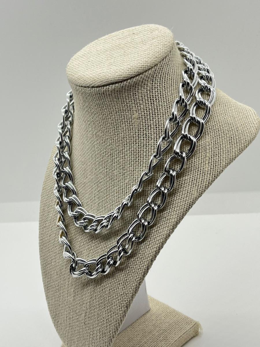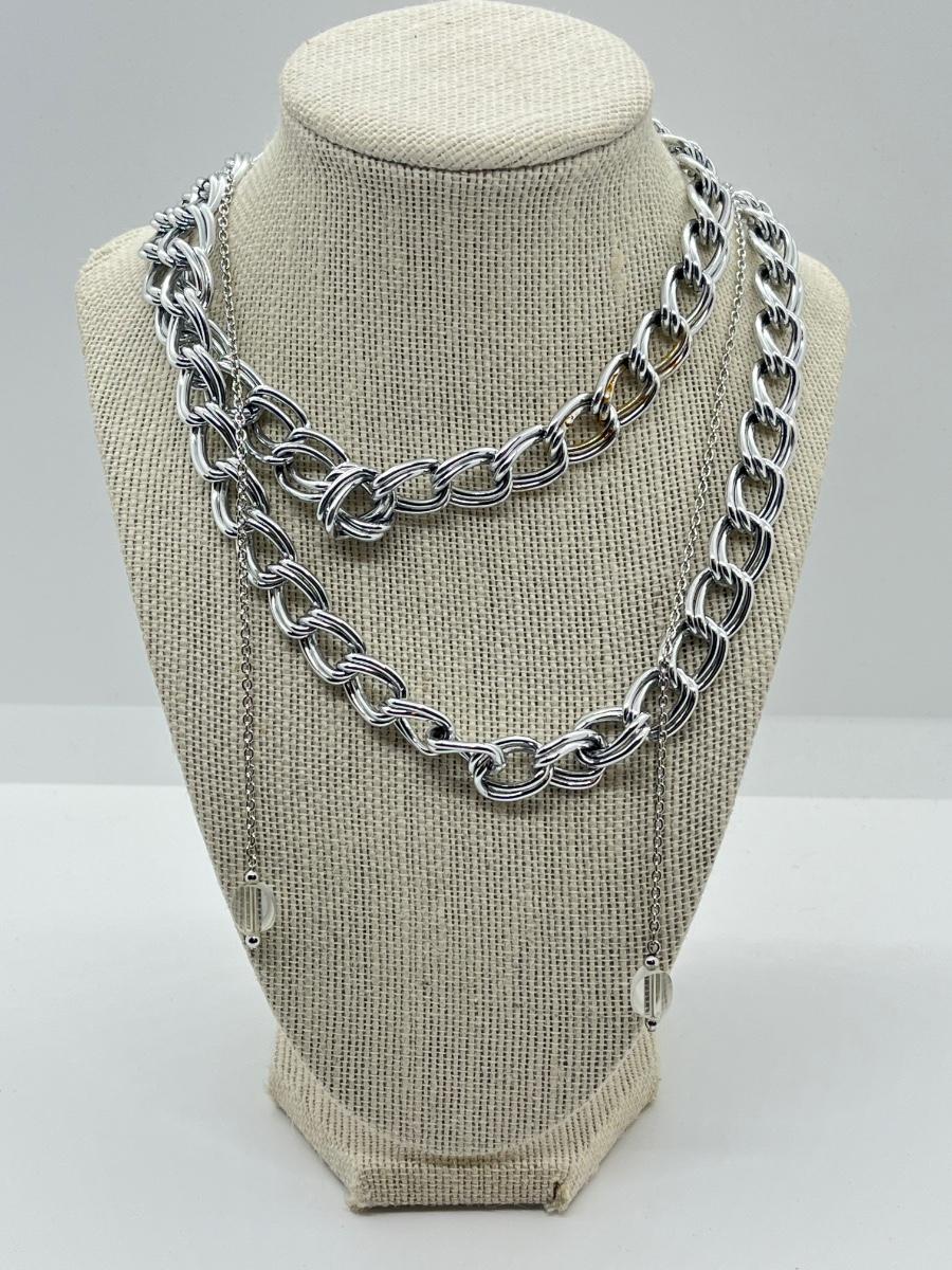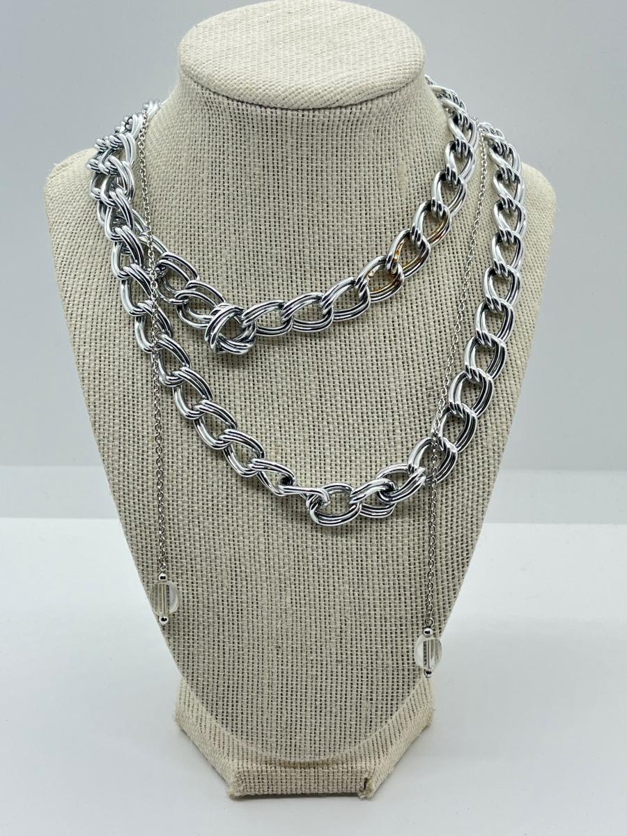 LOT 78: Big Bold Lightweight Silvertone 35" Chain and Thin 27" Open-Ended Necklace
