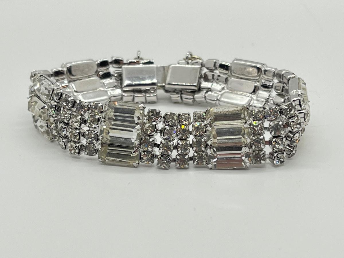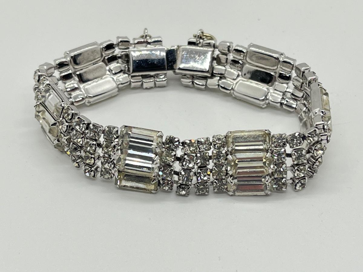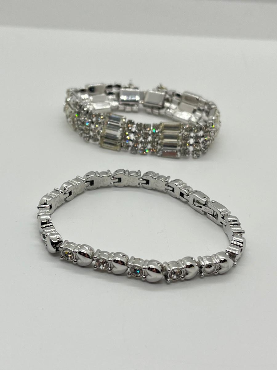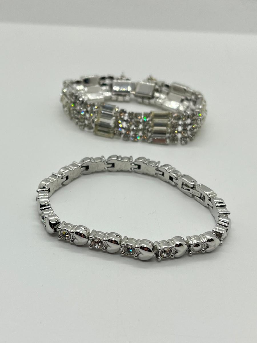 LOT 84: Two Silvertone Beautiful Vintage Rhinestone Bracelets, one signed