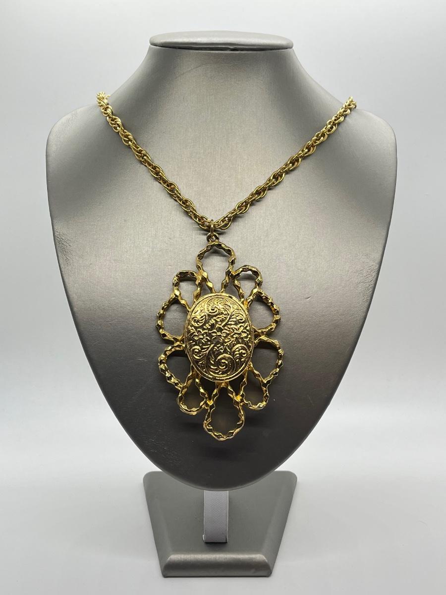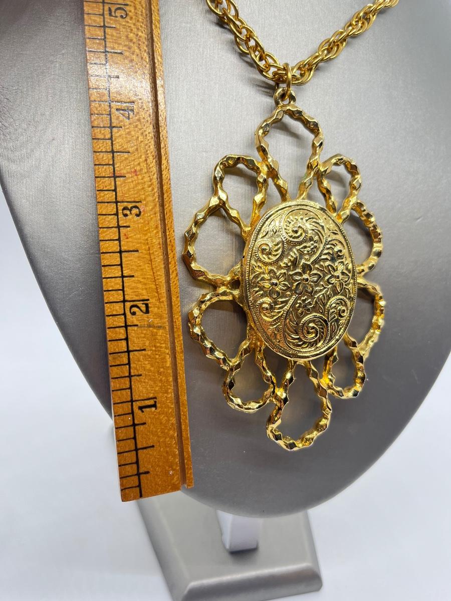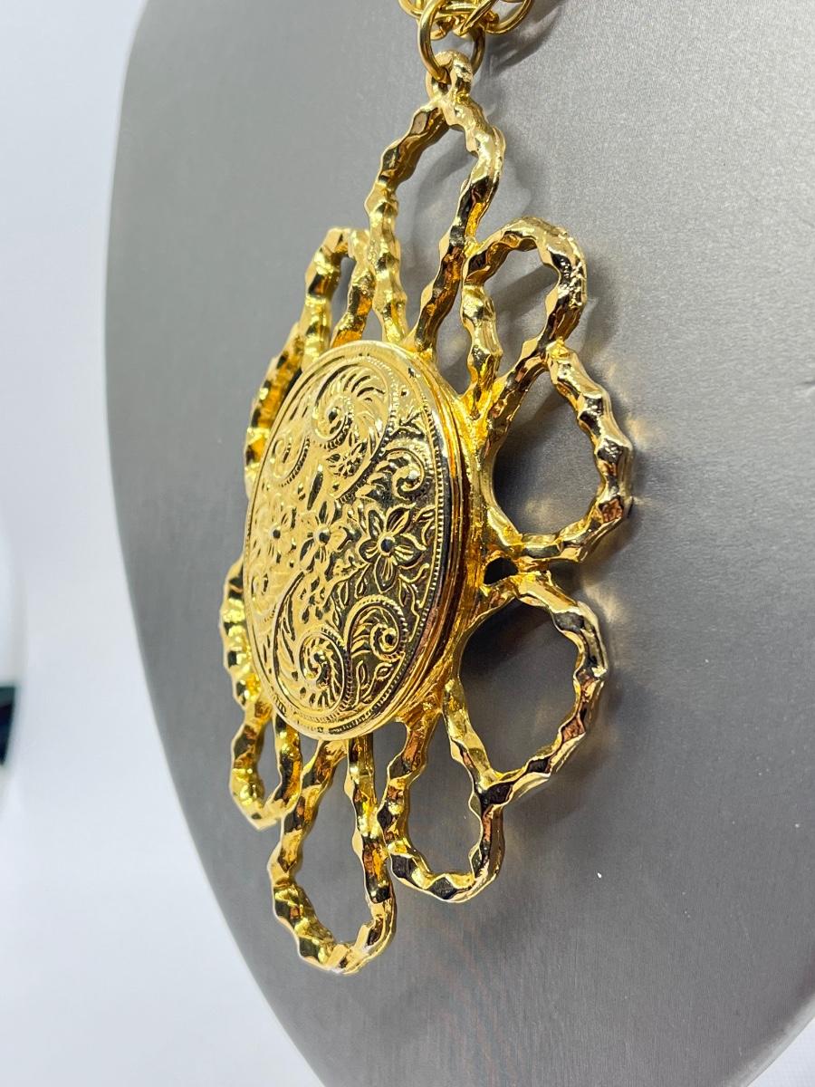 LOT 95: Large Goldtone Flower Locket on 24" Chain