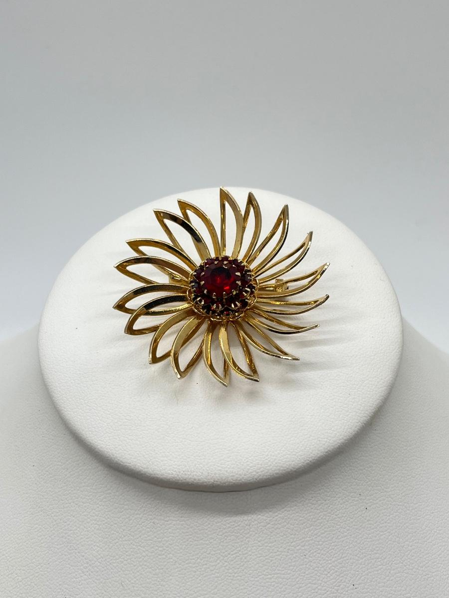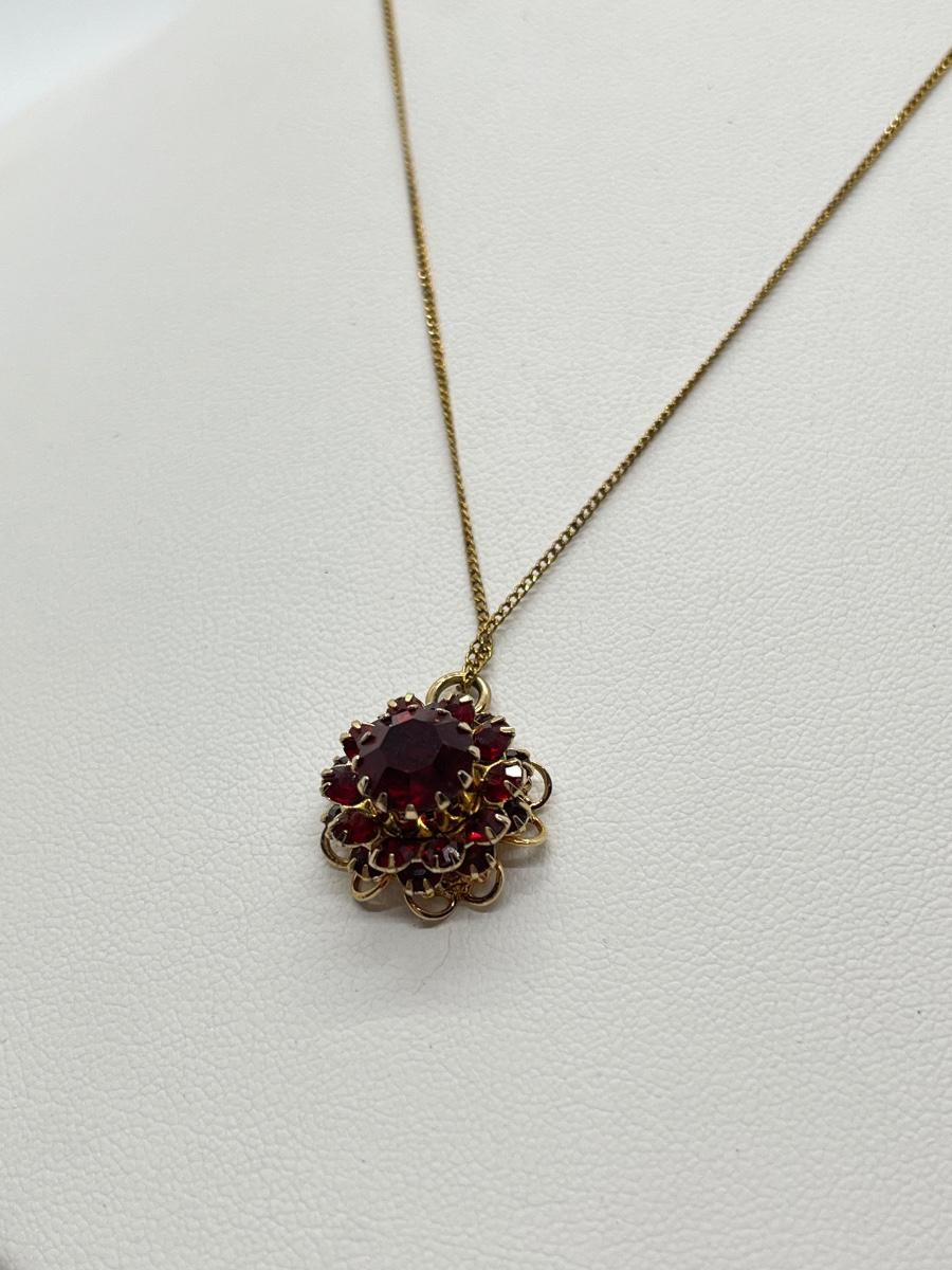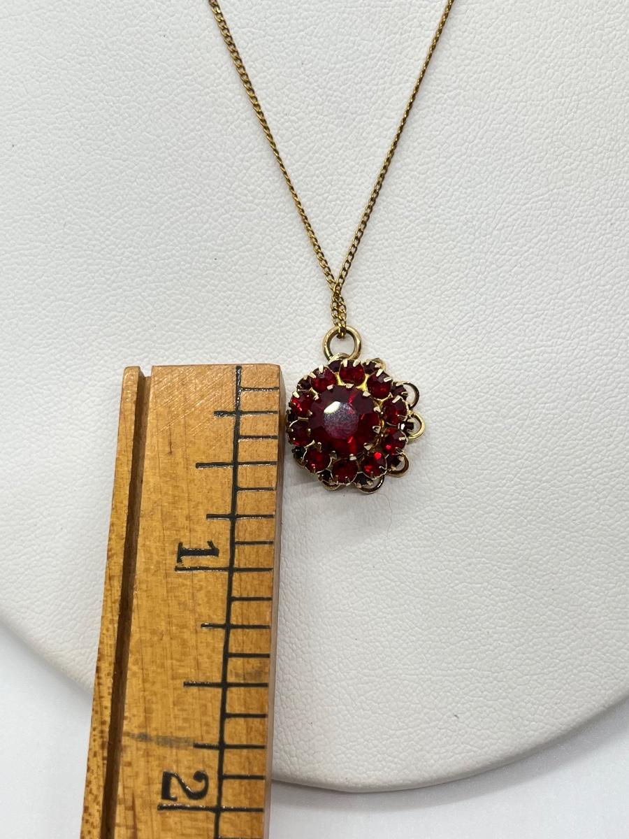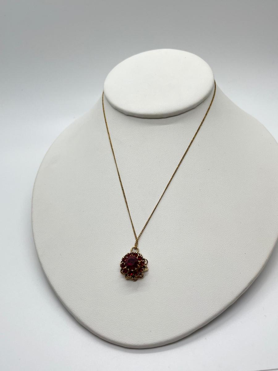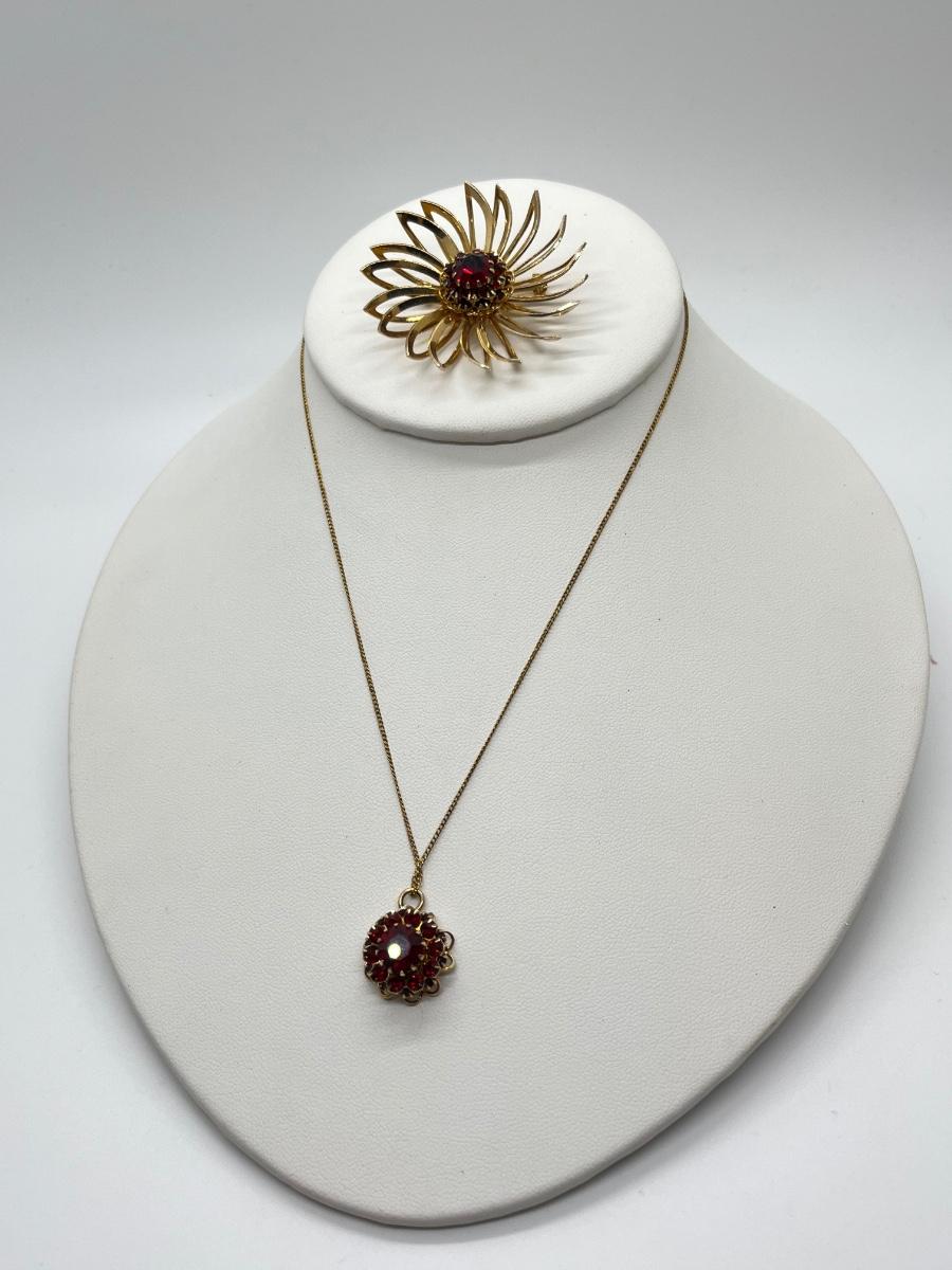 LOT 133: Fine Chain Red Floral Pendant + Sarah Coventry Floral Red Center Brooch