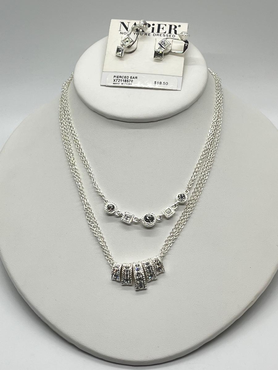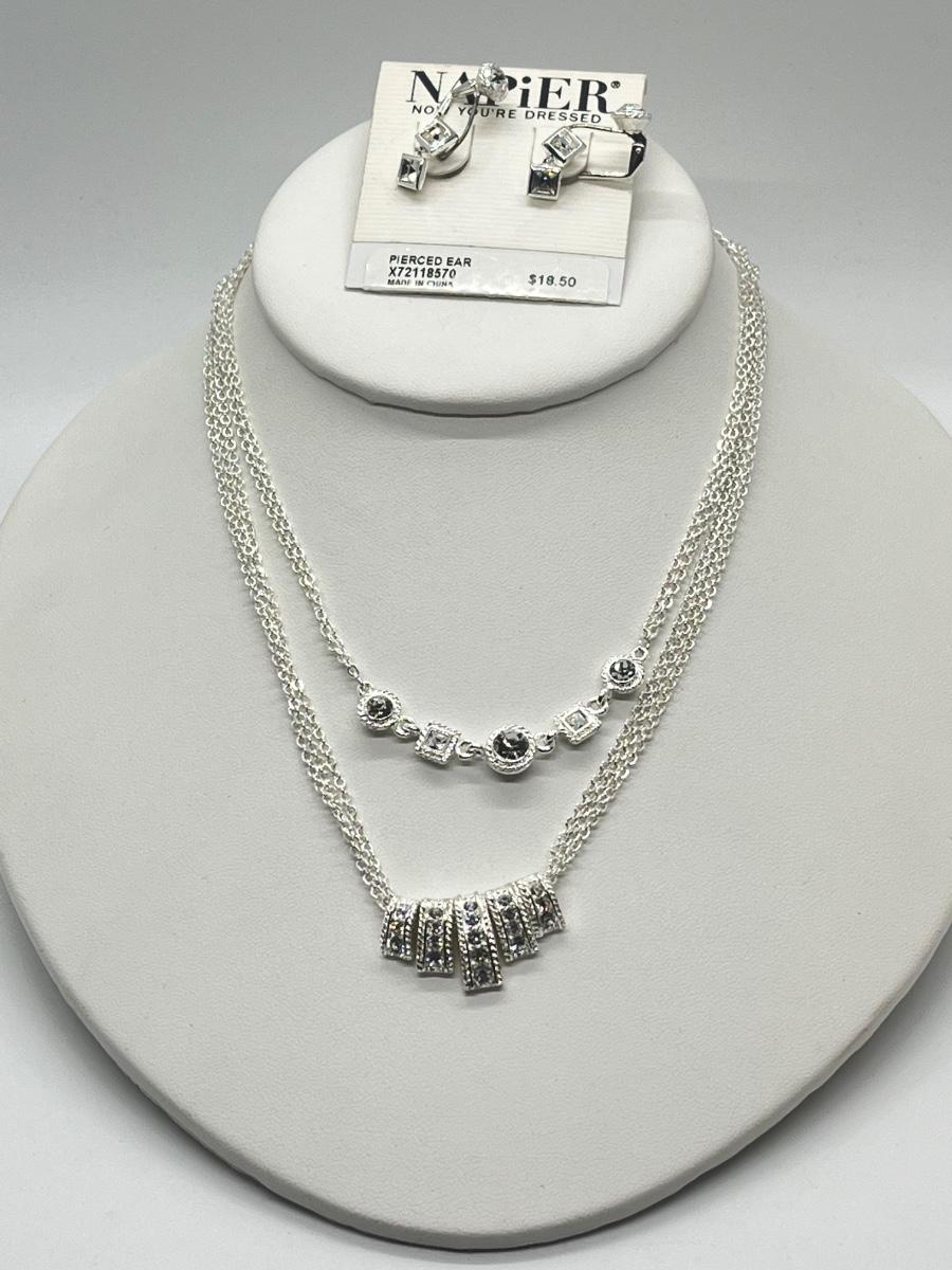 LOT 191: Two Napier Multi-Strand Crystal Necklaces & Pierced Earrings