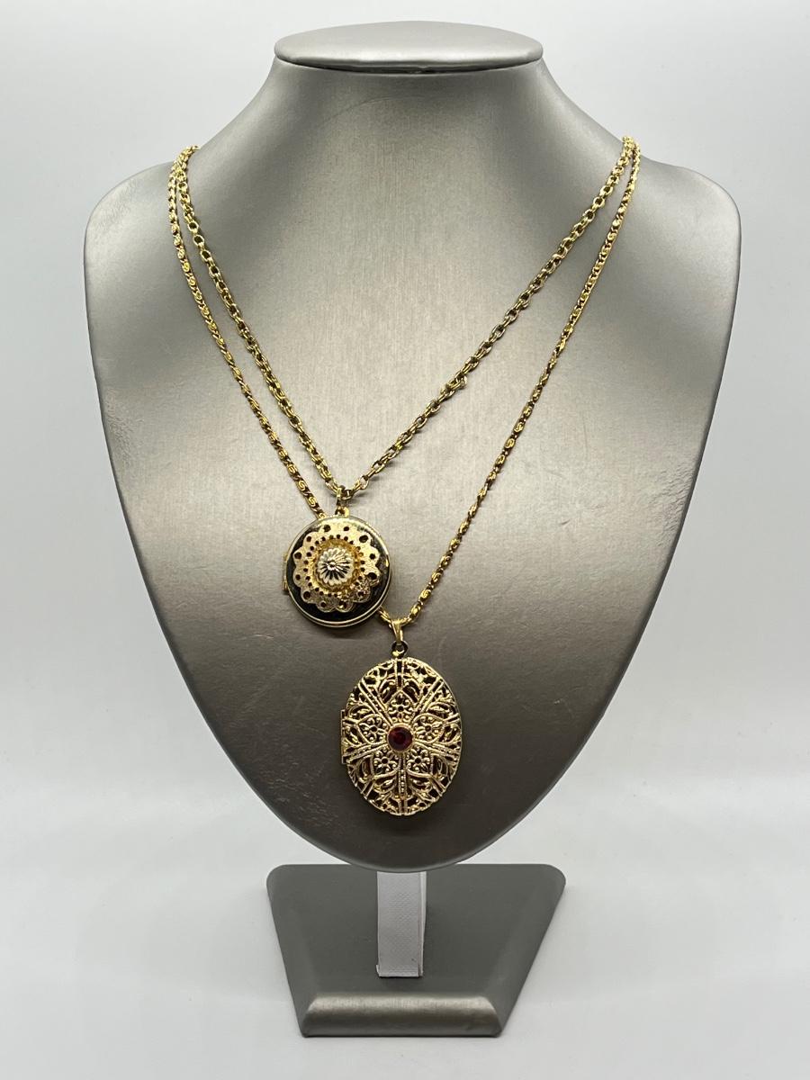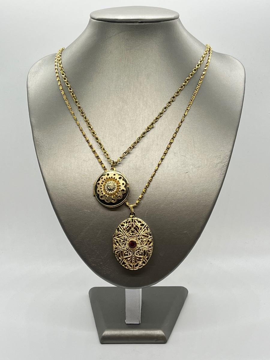 LOT 199: Two Locket Pendants on 26" and 24" Necklaces