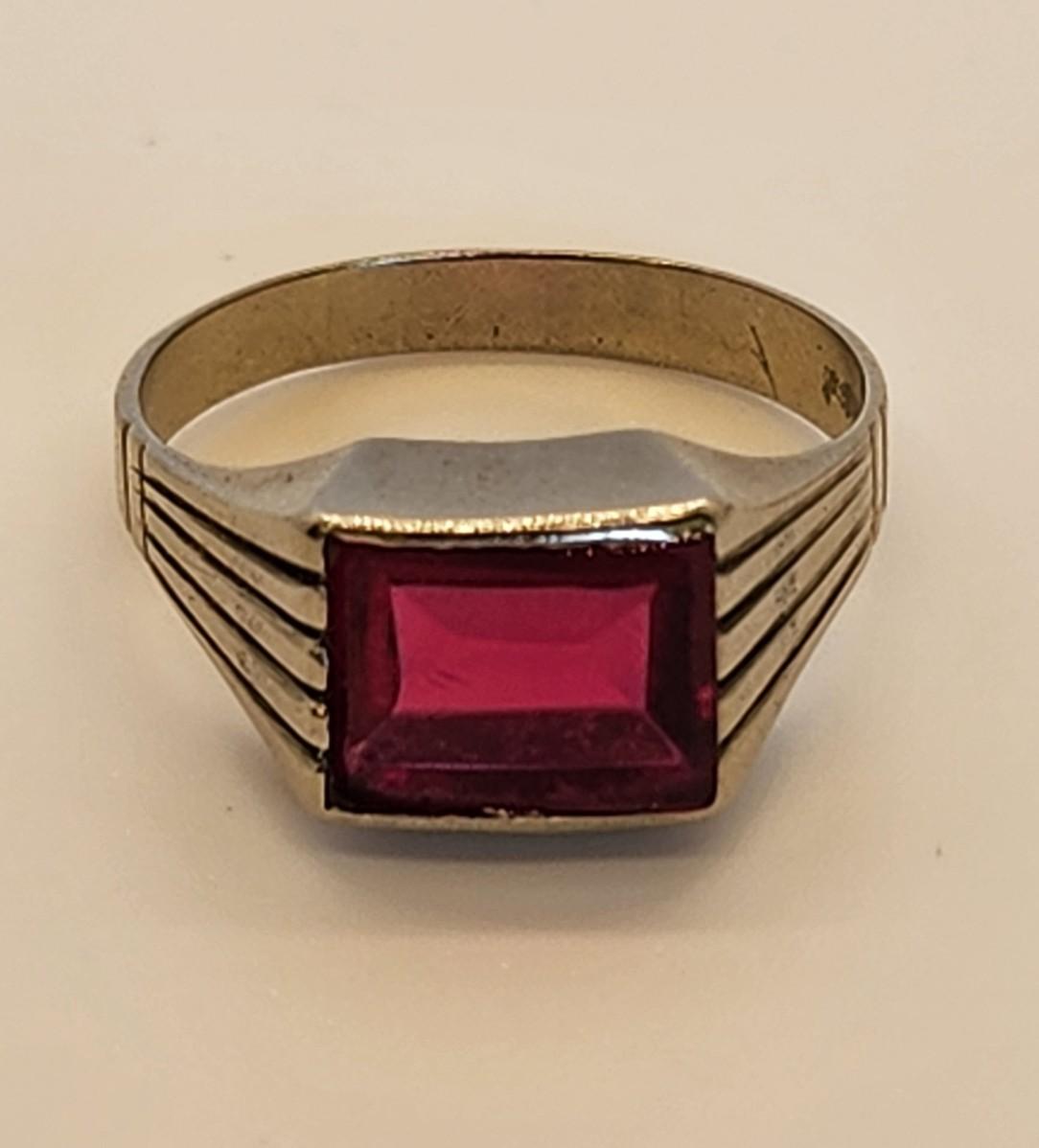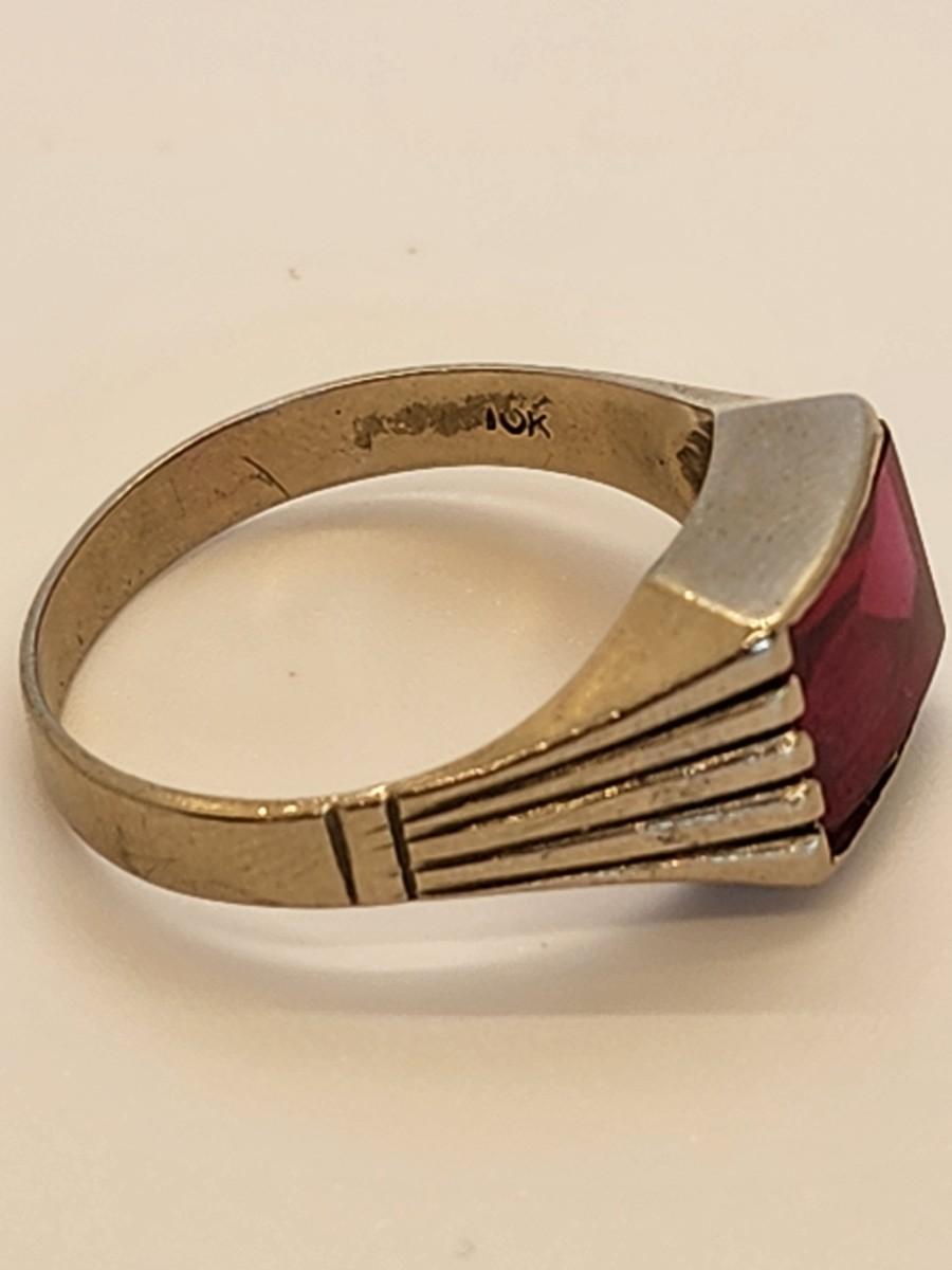 LOT 4: 10k Gold Ruby Glass Ring - Size 10 4.4 gtw