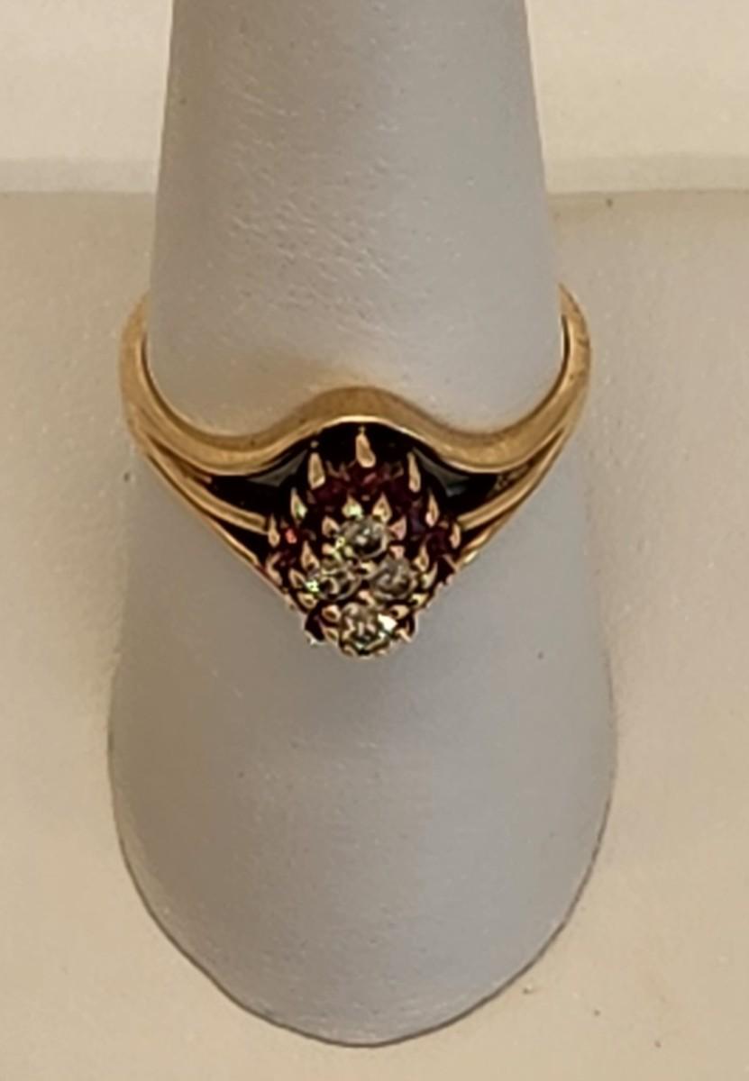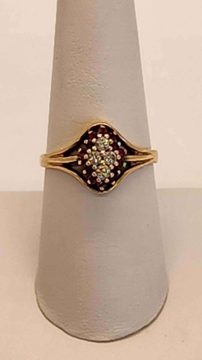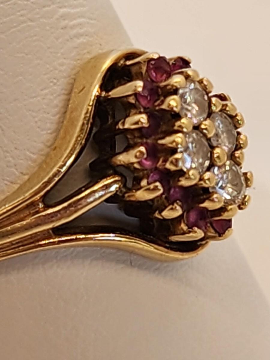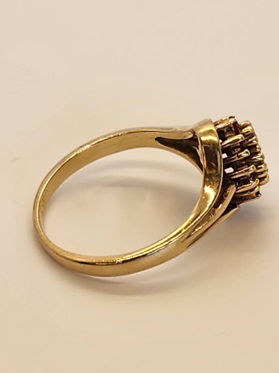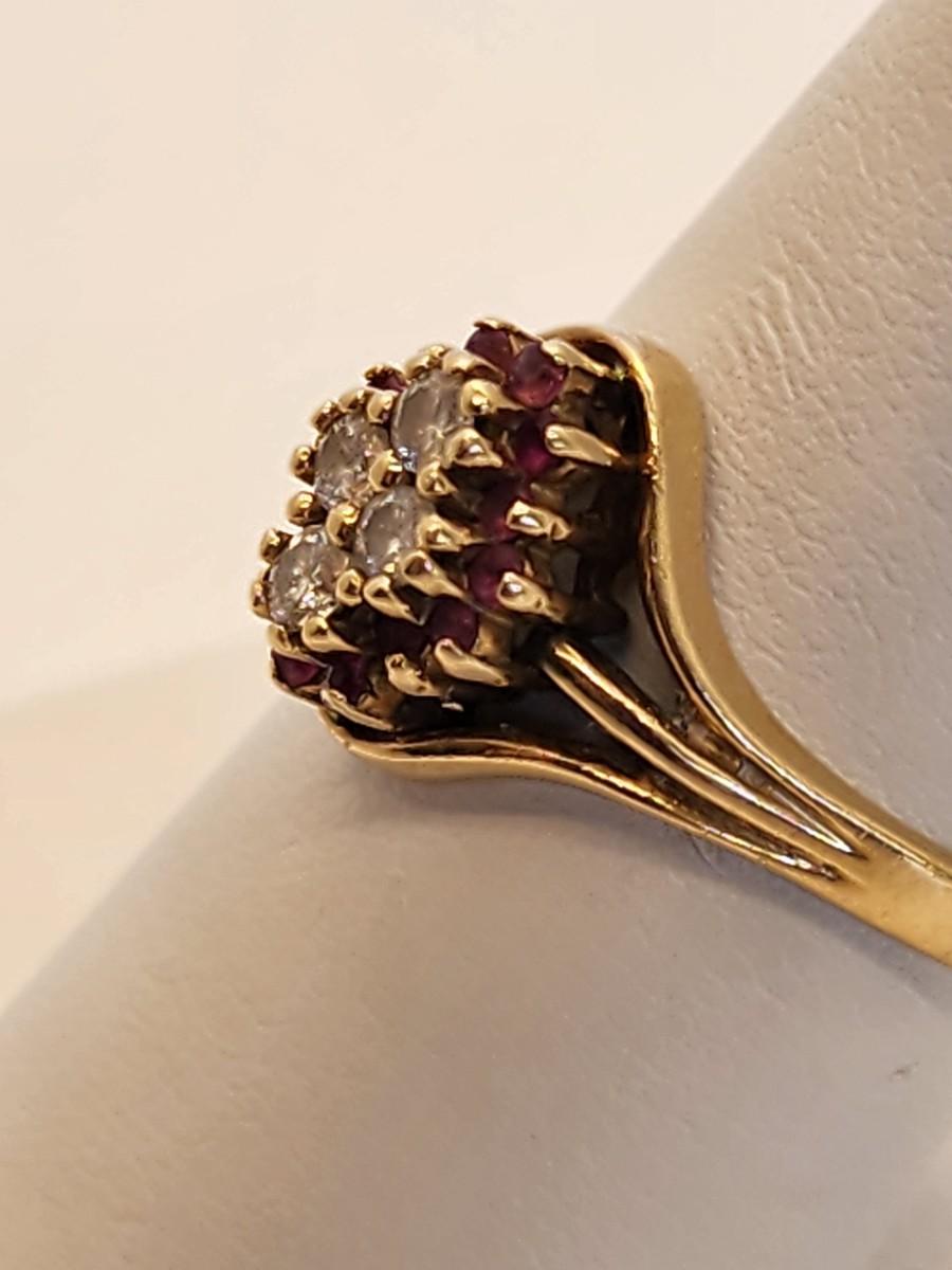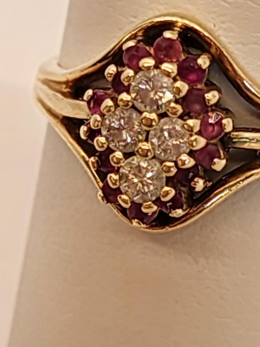 LOT 5: 14k Gold Ruby and Diamond Cluster ring - Size 8 - 3.6 gtw