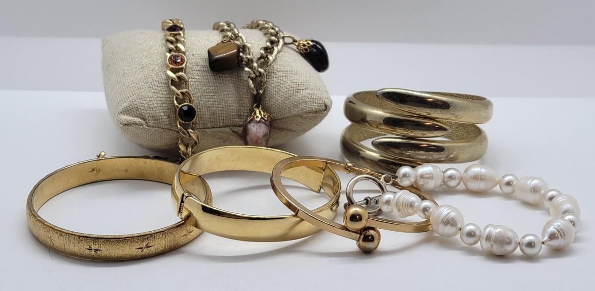 LOT 13: Gold Tone Bracelet / Bangles: Caroline, Monet, & More!