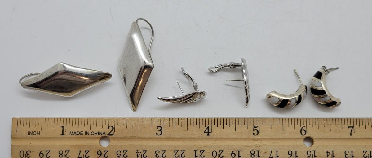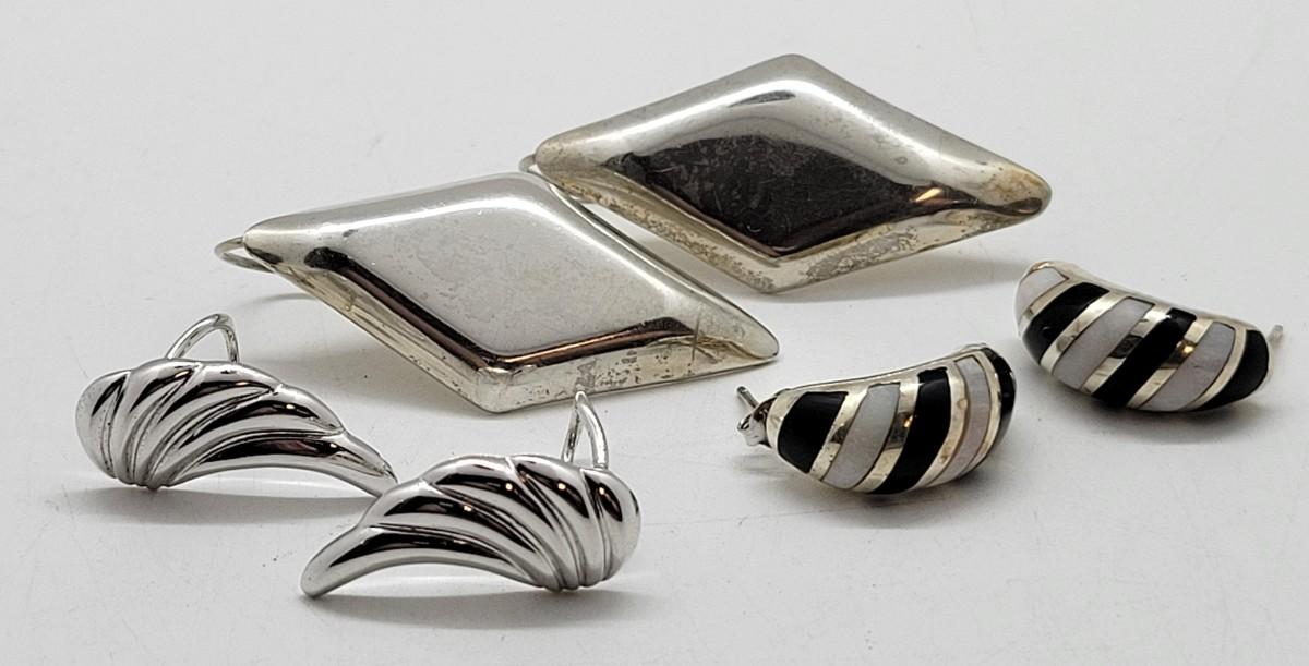 LOT 16: 3 Pairs of Vintage Pierced Sterling Earrings